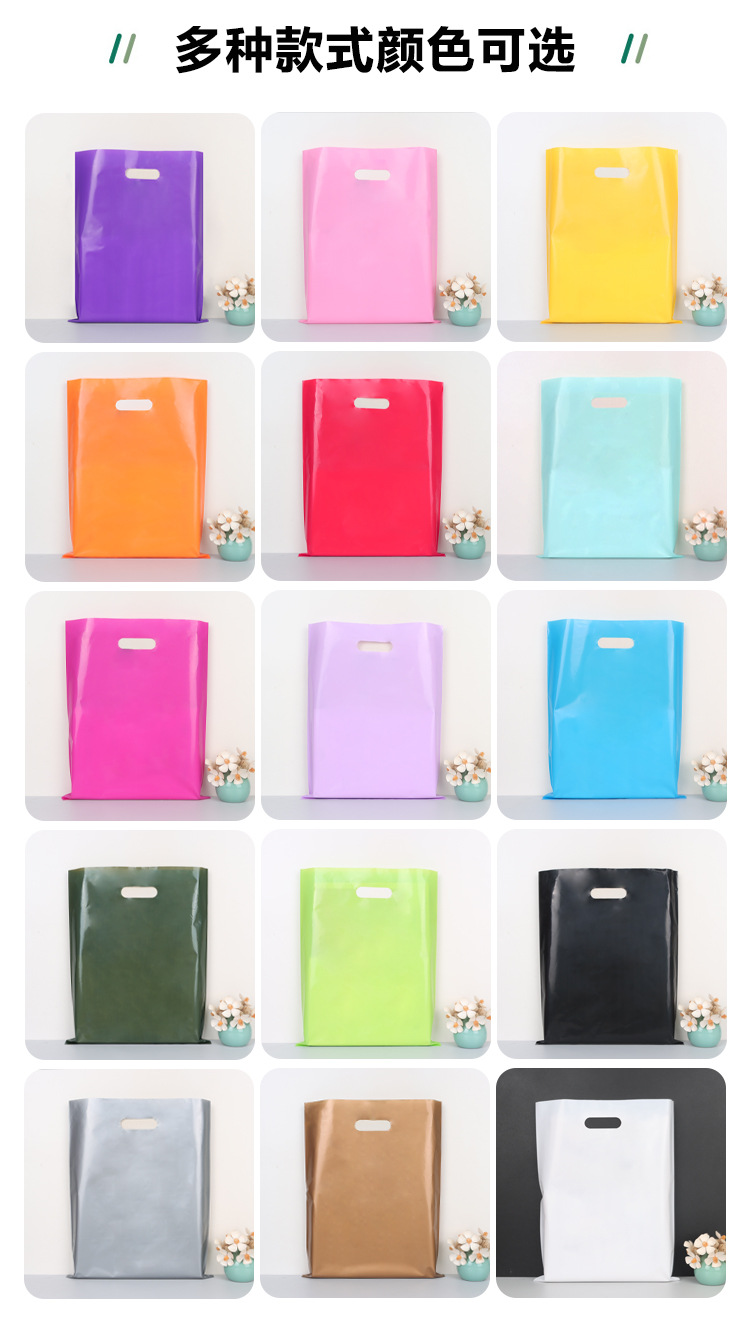 두꺼운 PE 컬러 빈 비닐봉투 선물 가방 액세서리 의류 가방 네 손가락 가방 포장 핸드백 비닐봉투스토어 가기