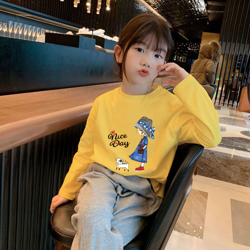 H2051 # 어린이 소년과 소녀 캐주얼 티셔츠 100% 면 긴 소매 티셔츠 어린이 새 가을 자켓베이스 셔츠