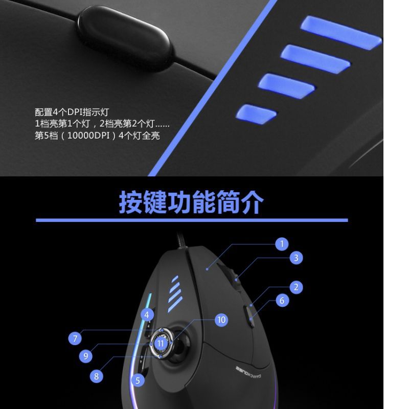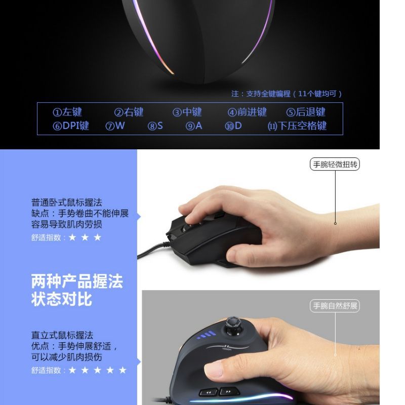 인체 공학적 로커 수직 게임 마우스 특수 유선 그립 맞춤형 매크로 프로그래밍 후작