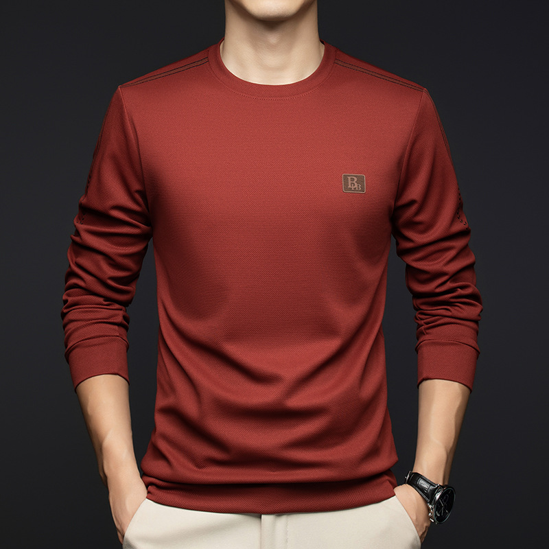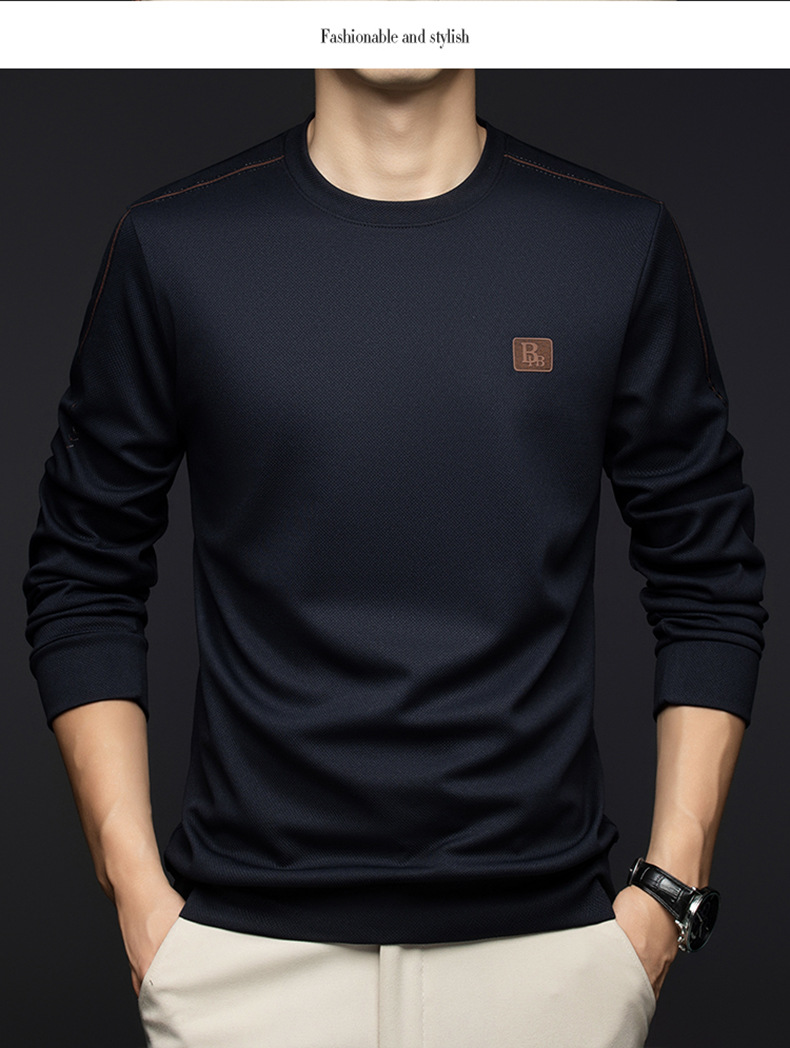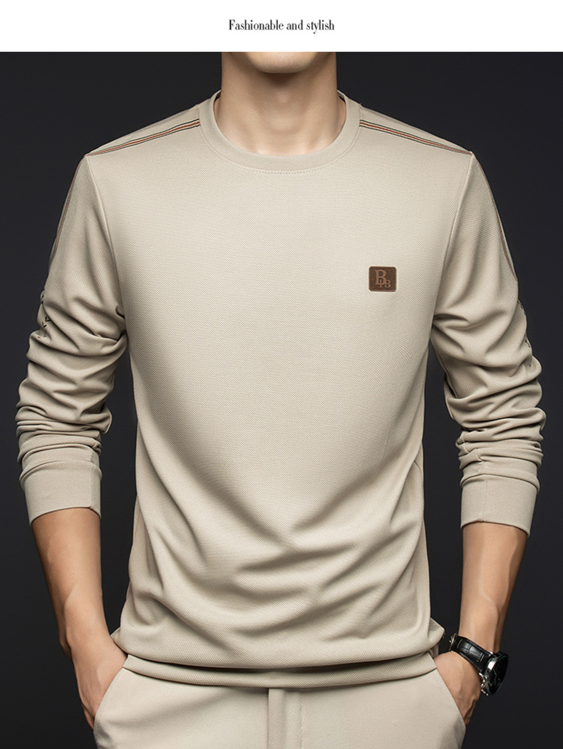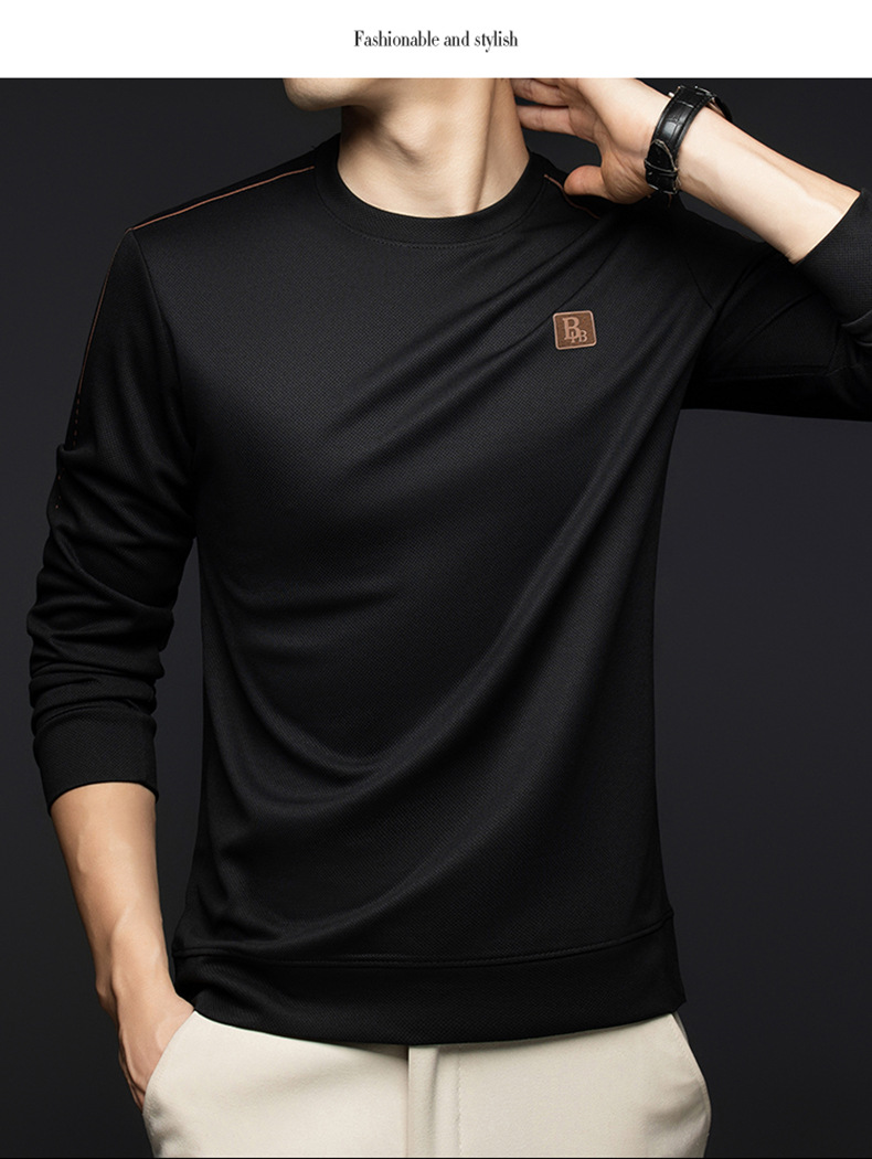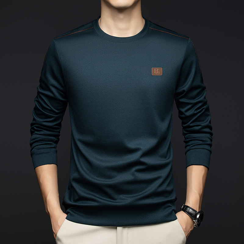 와플 남성 긴팔 티셔츠 봄과 가을 새 인쇄 라운드 넥 캐주얼 올 매치 스웨터 남성용 심플베이스 셔츠