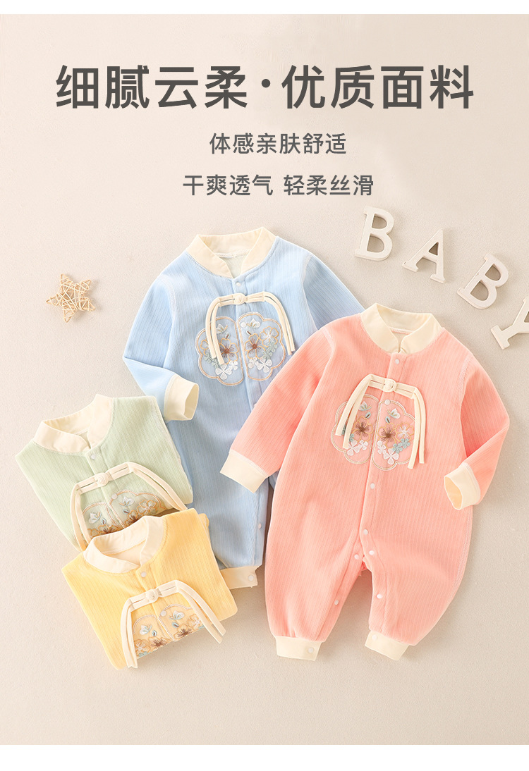 아기 가을과 겨울 점프 수트 중국 스타일 기모 두꺼운 따뜻한 외출 아기 겨울 하 옷 신생아 겨울 옷