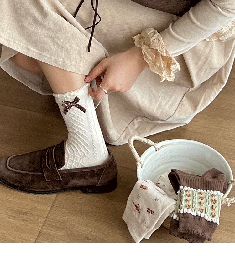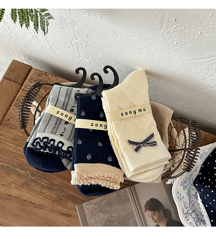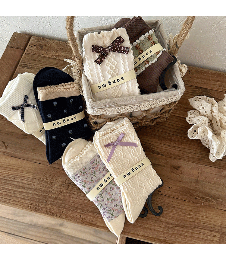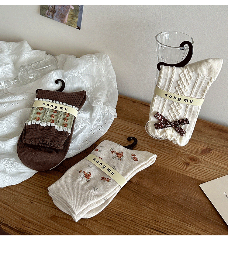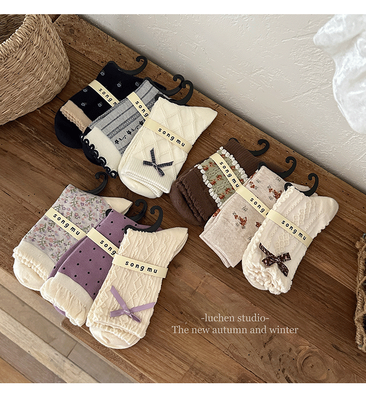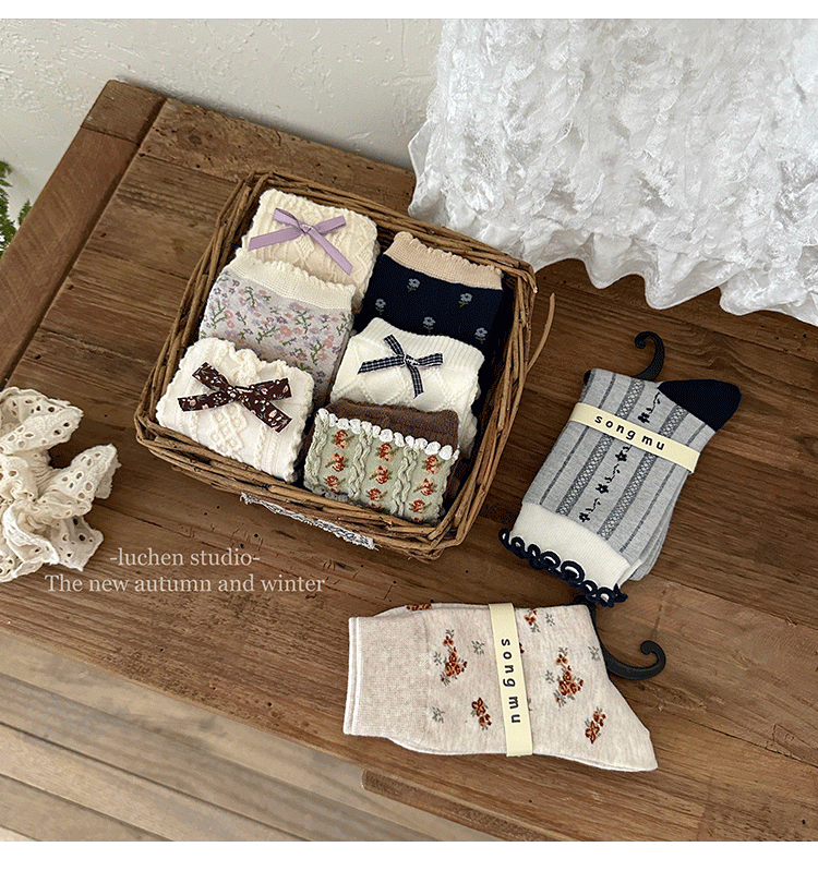 songmu 디자이너 "여성용 나비 양말, 봄, 가을 틈새 오리지널 코튼 한국식 양말스토어 가기