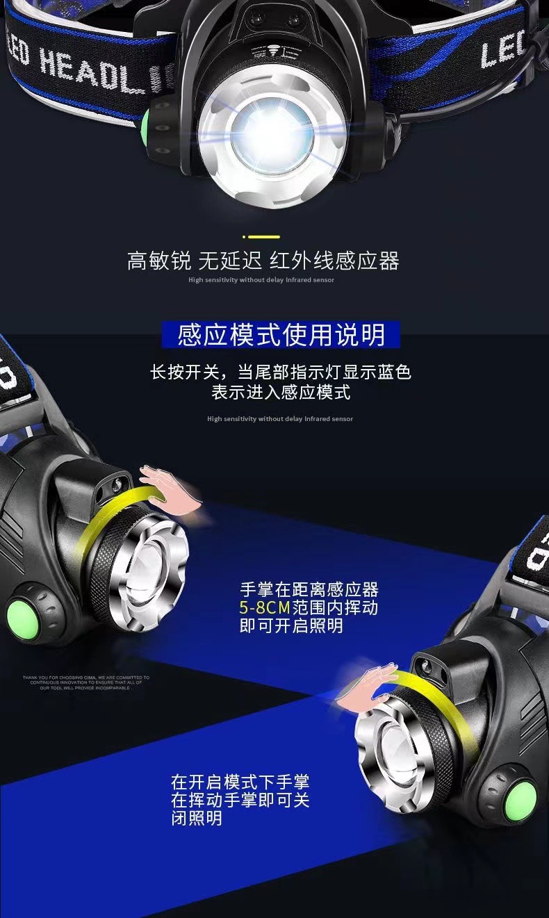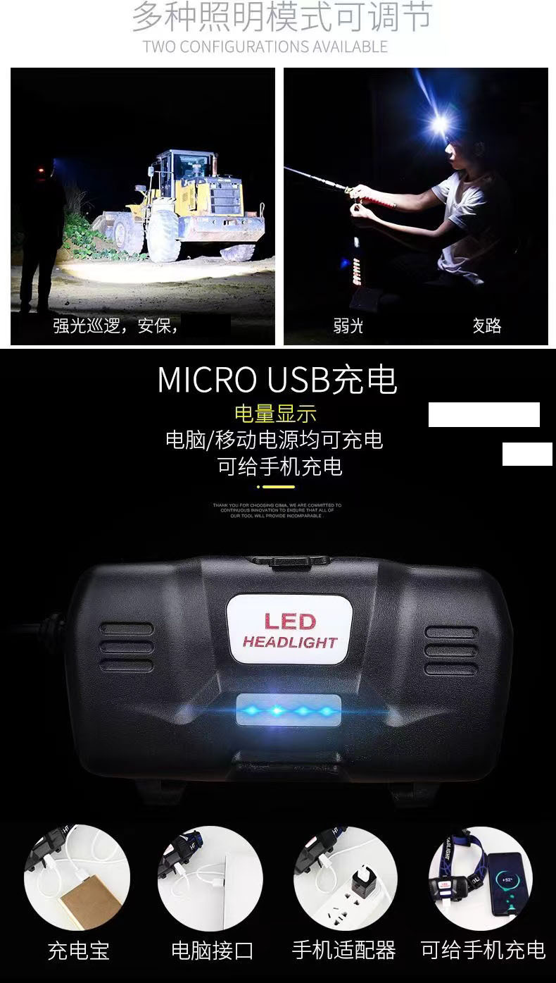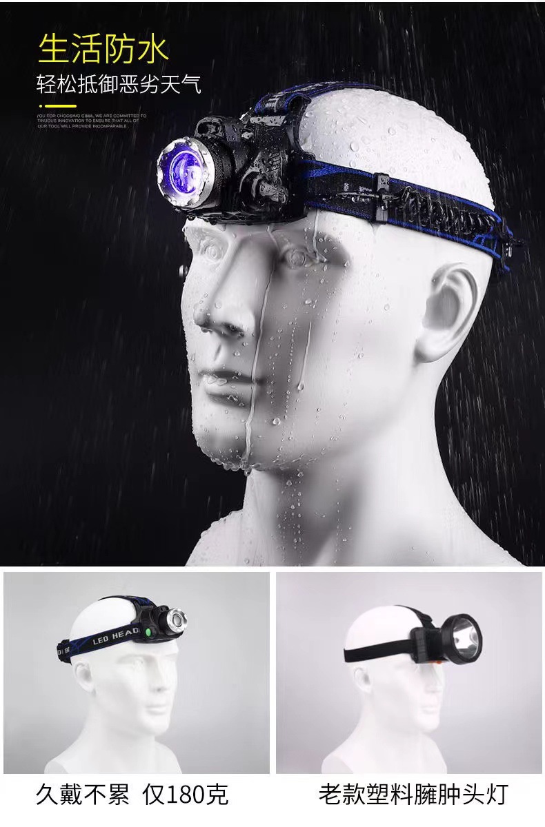 낚시 헤드 램프 충전 높은 전원 야외 LED 유도 USB 헤드 웨어 광부의 램프 캠핑 노란색 보라색 블루 레드 라이트