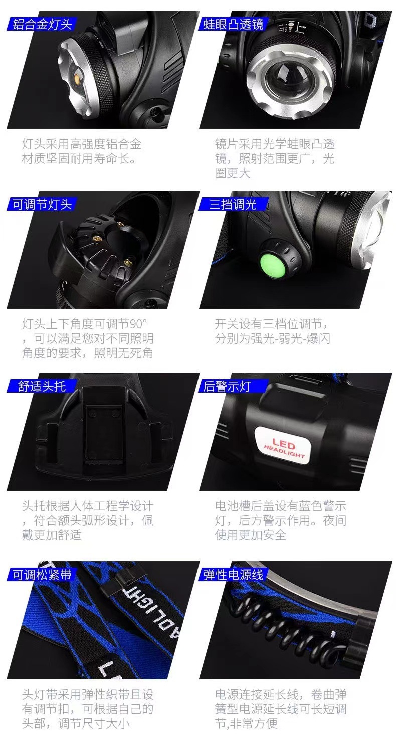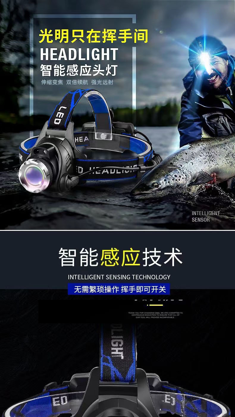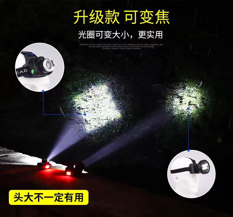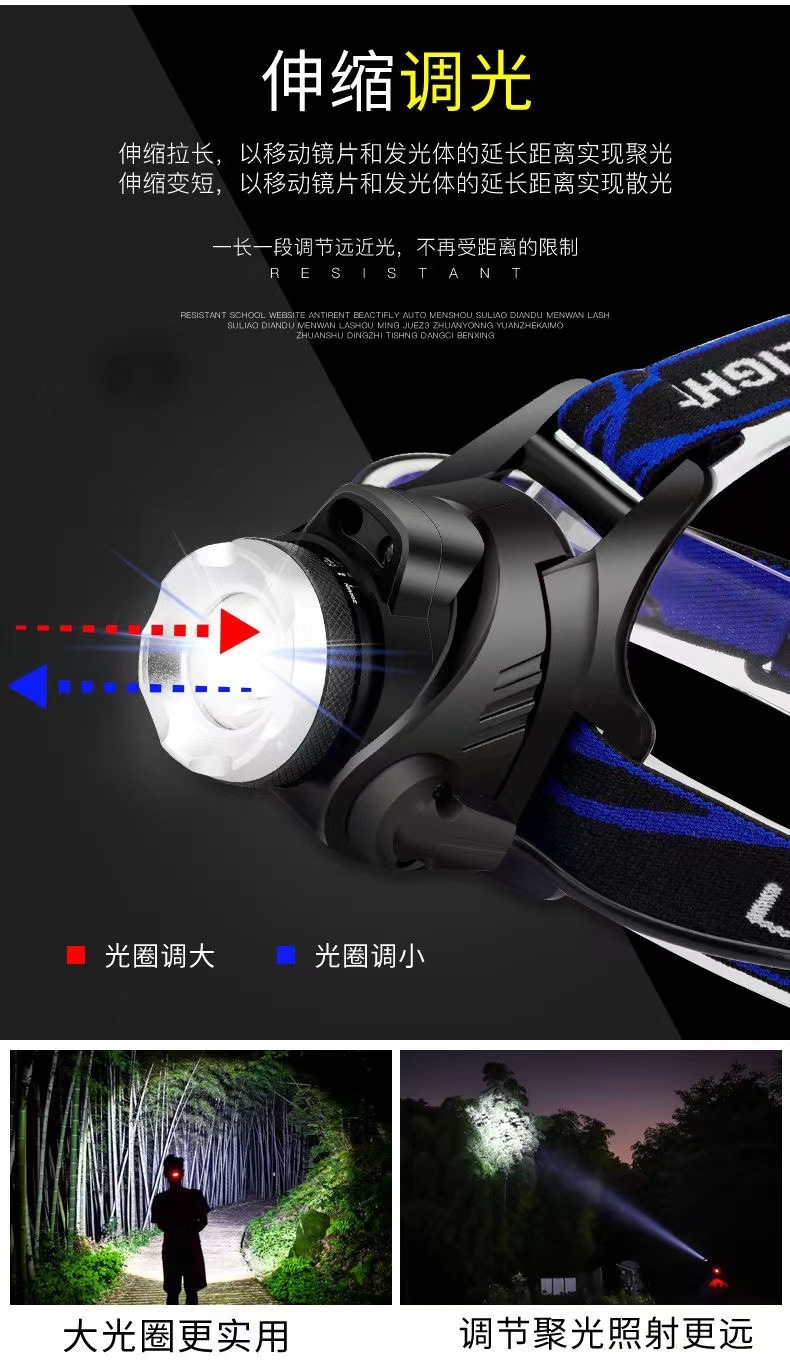 낚시 헤드 램프 충전 높은 전원 야외 LED 유도 USB 헤드 웨어 광부의 램프 캠핑 노란색 보라색 블루 레드 라이트