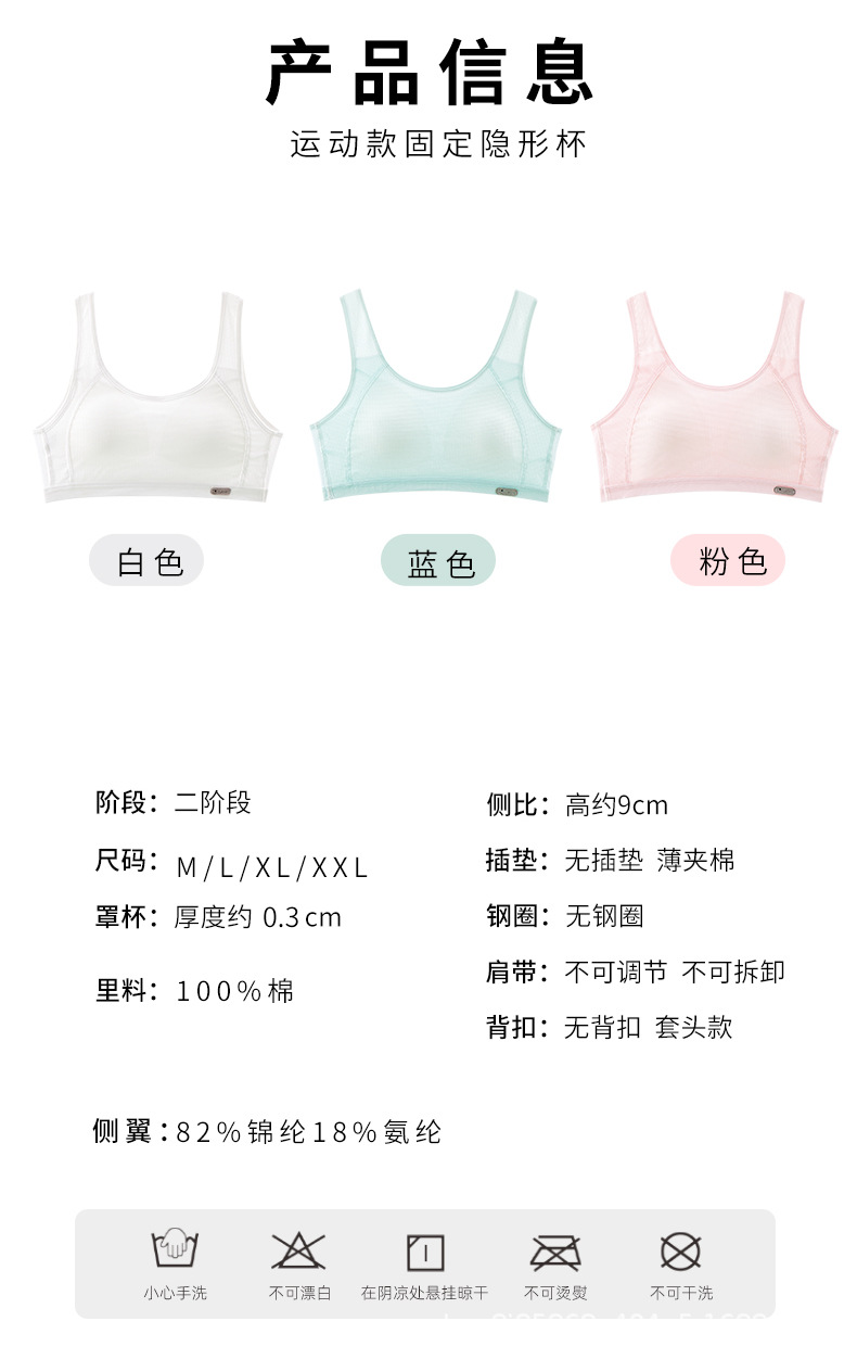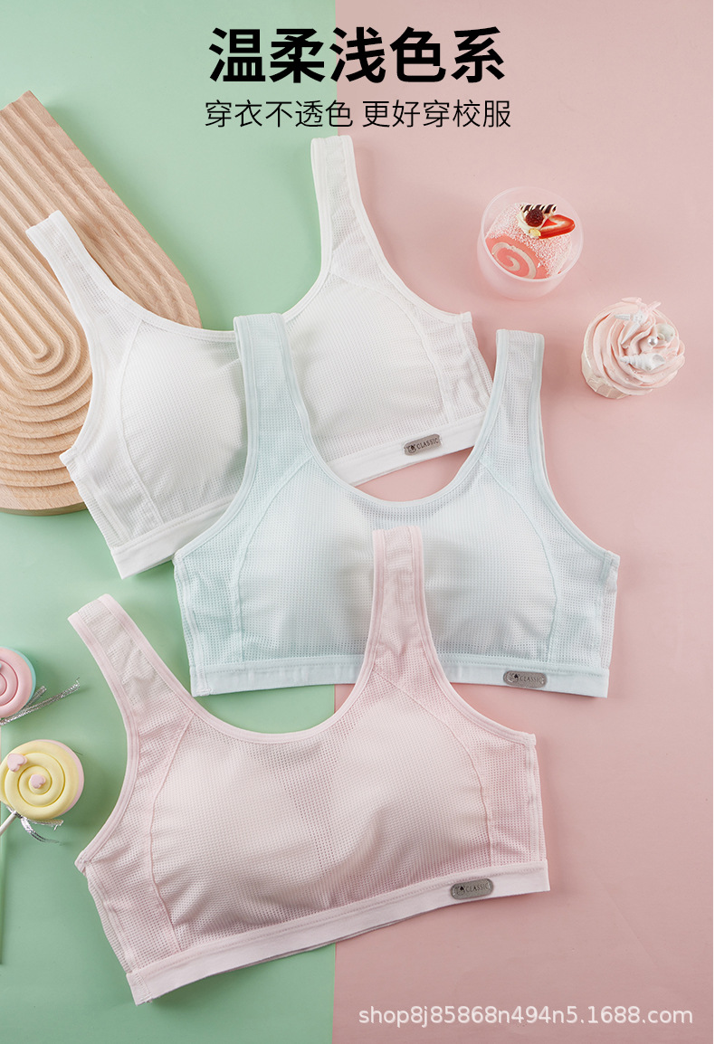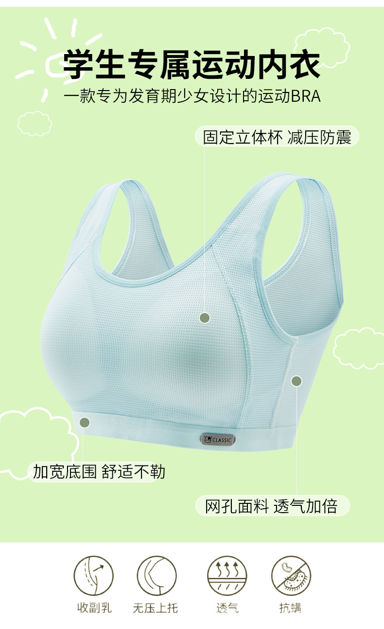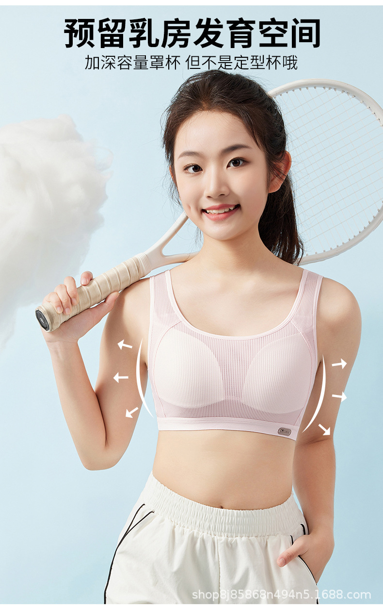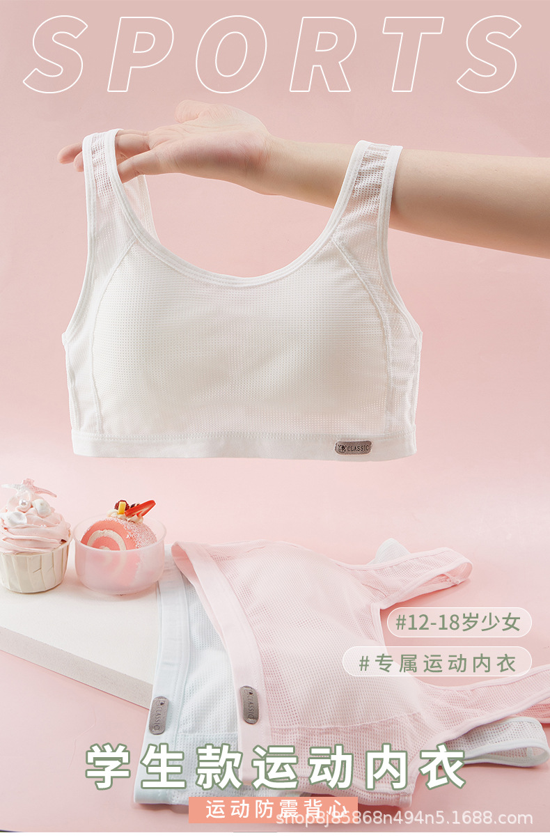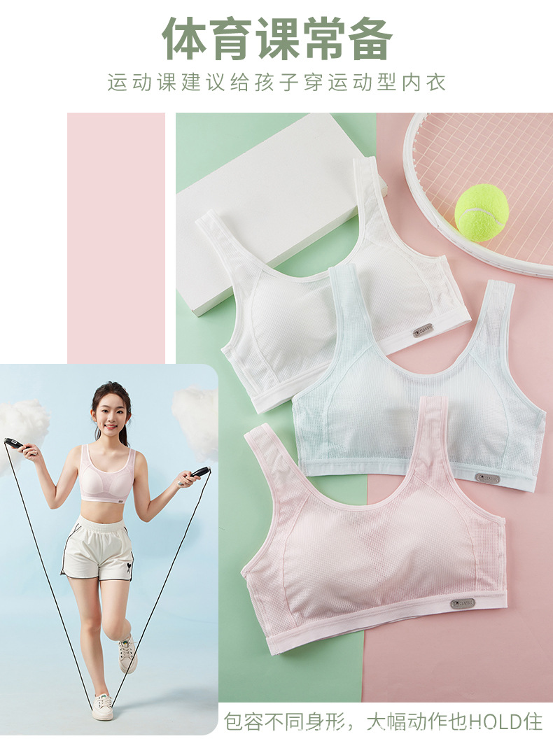여아 속옷 2단계 및 3단계 중학생 플러스 사이즈 스포츠 충격 방지 조끼 사춘기 소녀 발달 브래지어