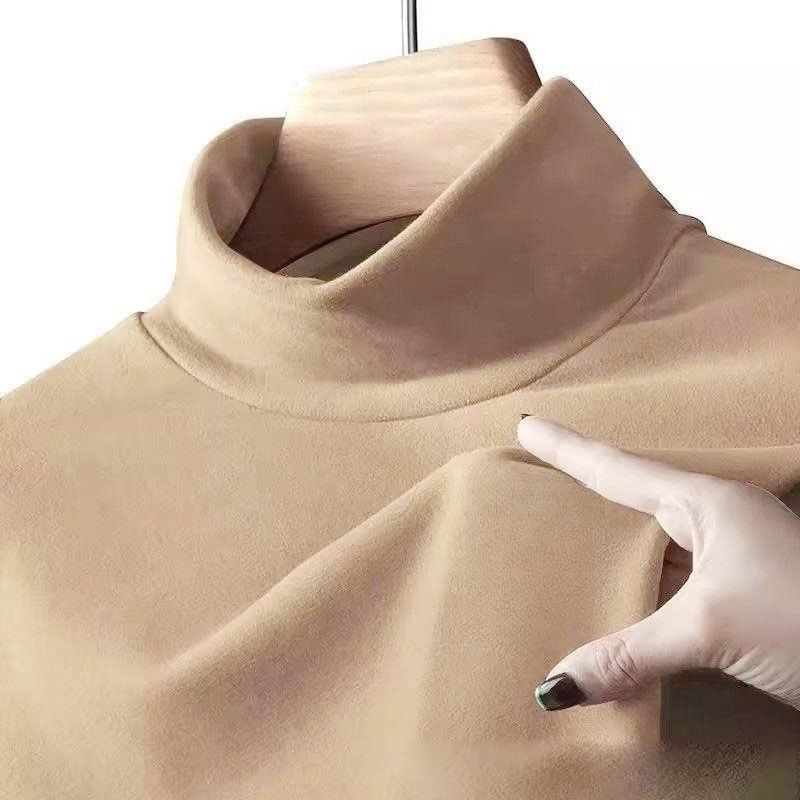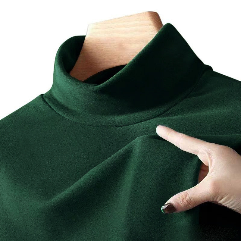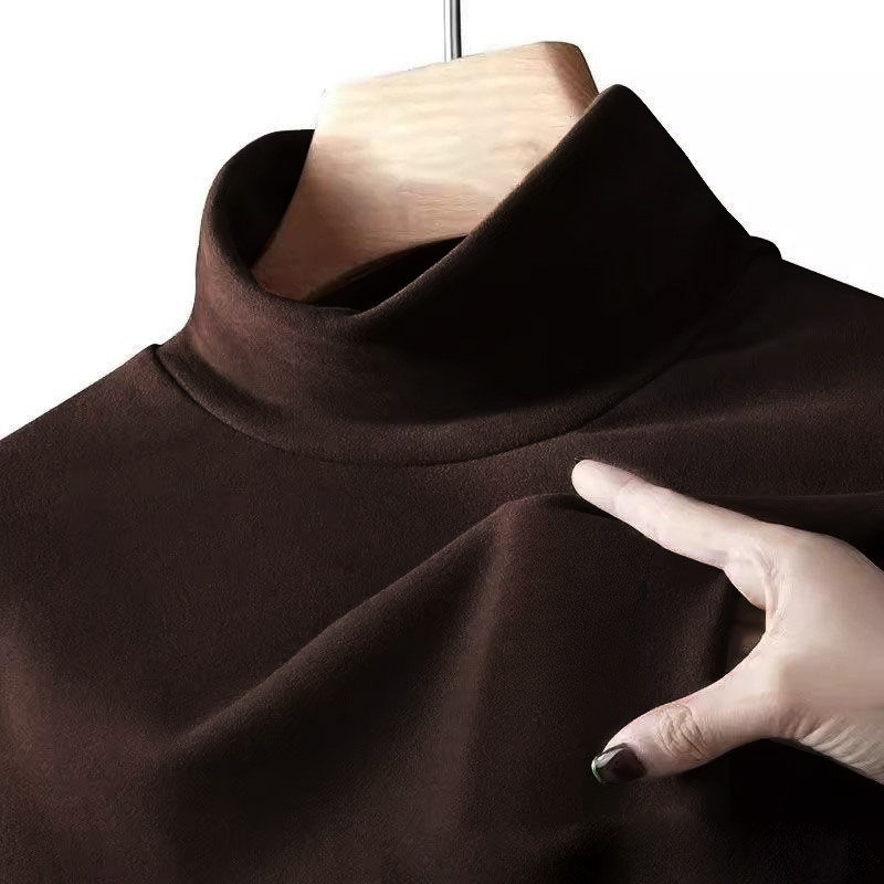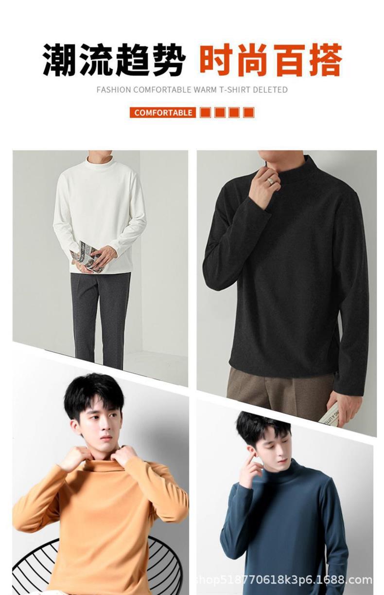 양면 벨벳 남성용 반쪽 칼라베이스 셔츠 가을과 겨울 기모 긴 소매 티셔츠 중간 칼라 내부 티셔츠