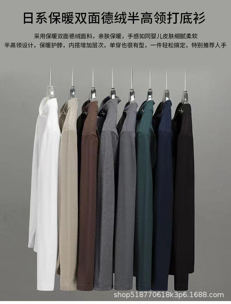 양면 벨벳 남성용 반쪽 칼라베이스 셔츠 가을과 겨울 기모 긴 소매 티셔츠 중간 칼라 내부 티셔츠스토어 가기