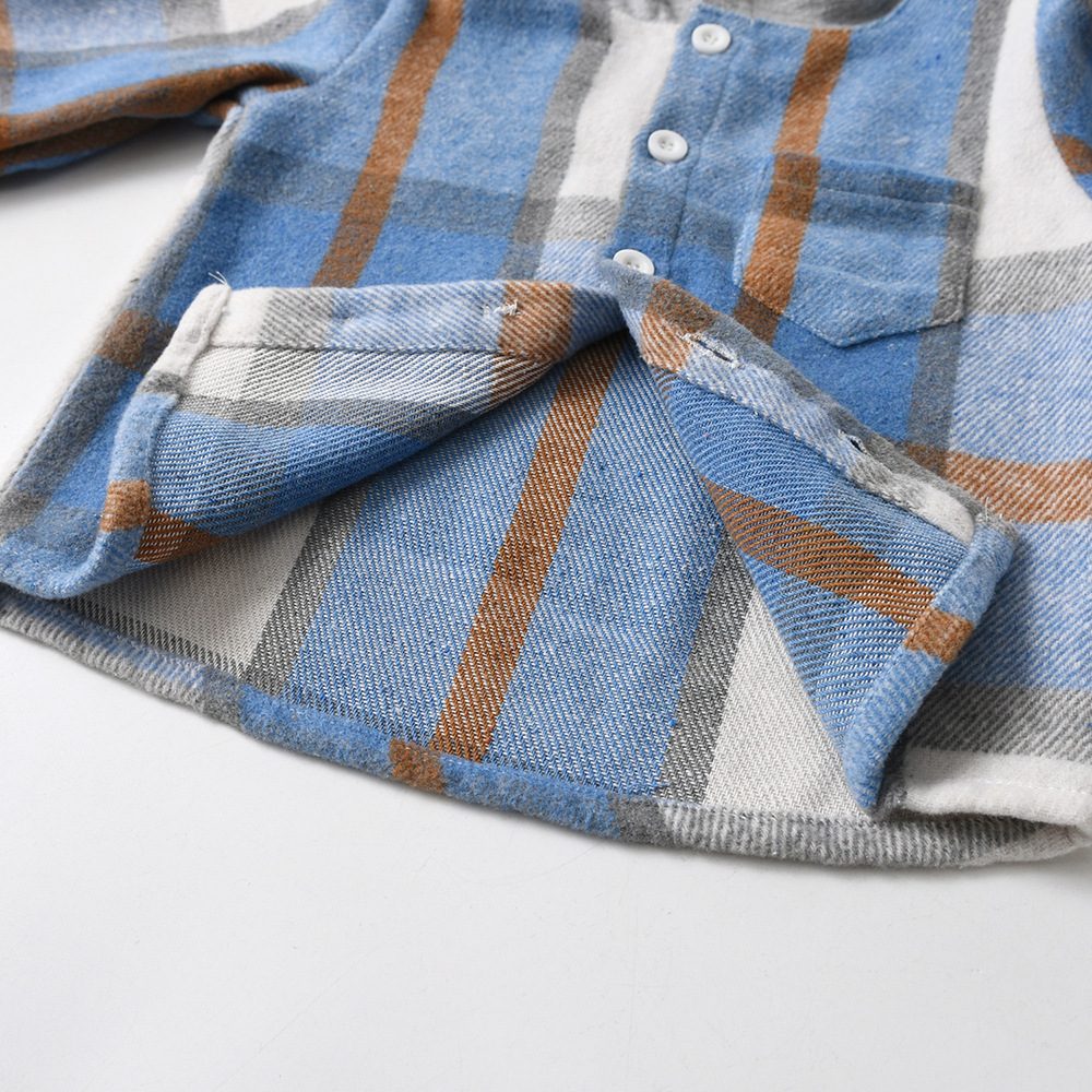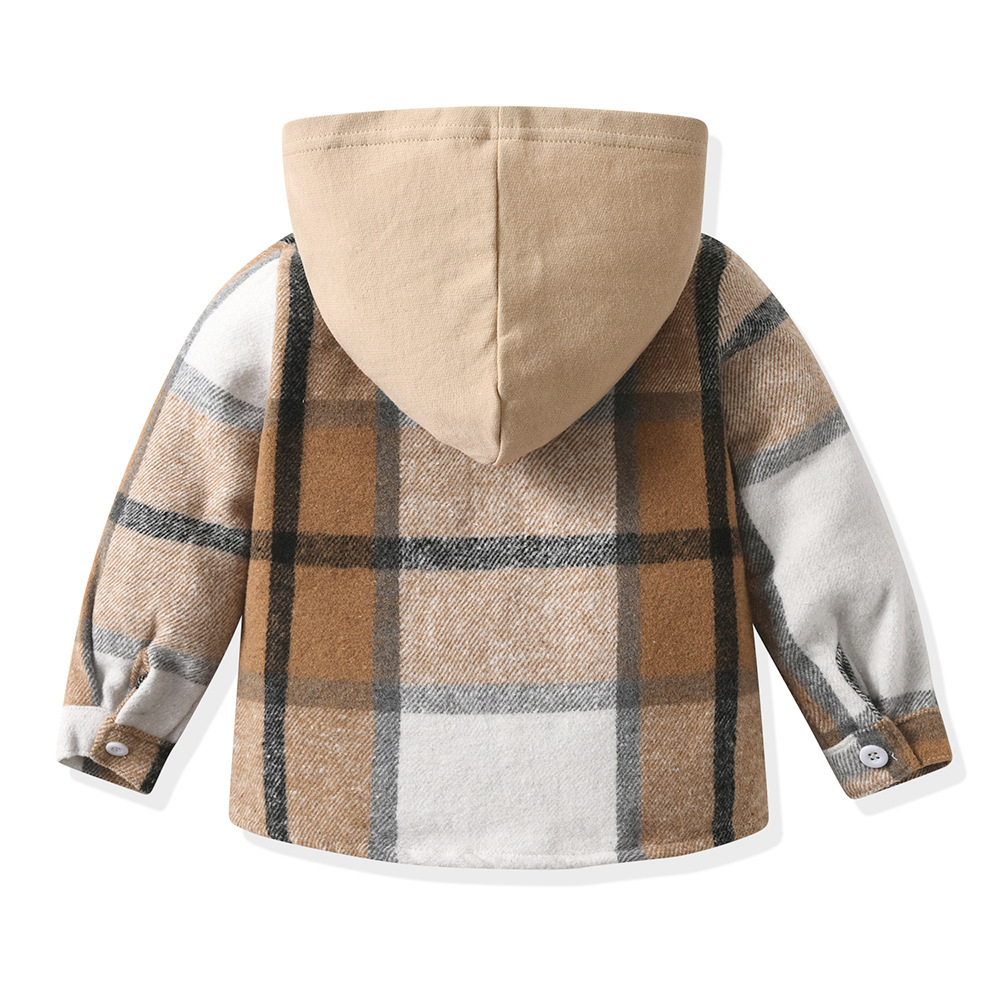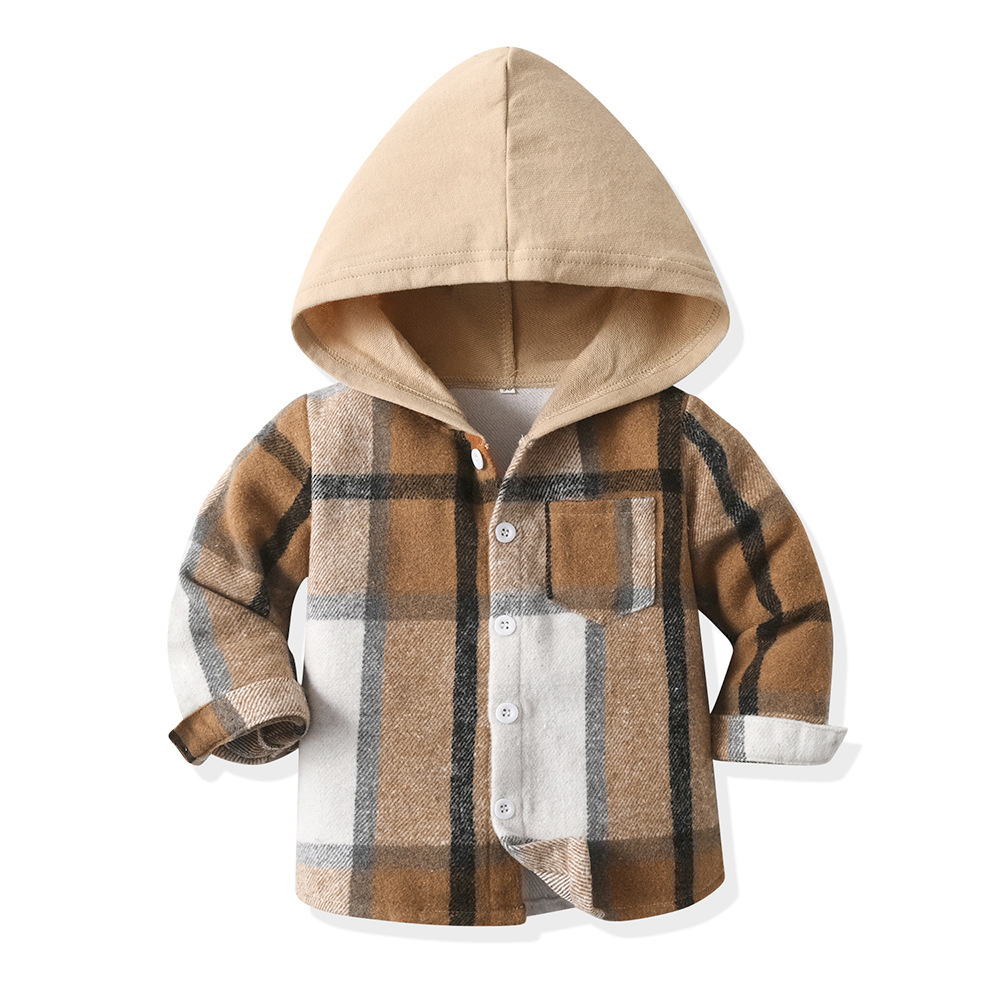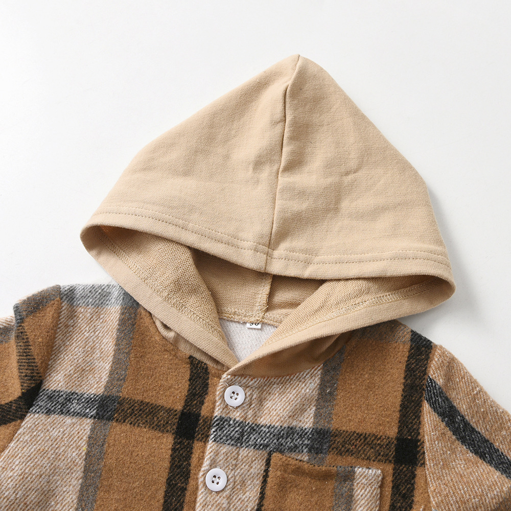 새로운 국경 간 아동복 유럽과 미국 어린이 격자 무늬 셔츠 긴 소매 후드 코튼 소년의 캐주얼 세트 소년 옷
