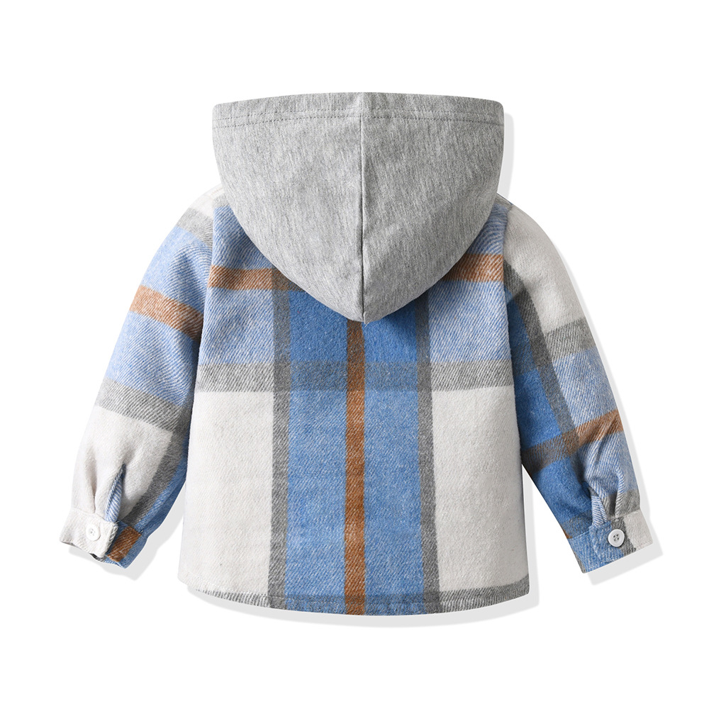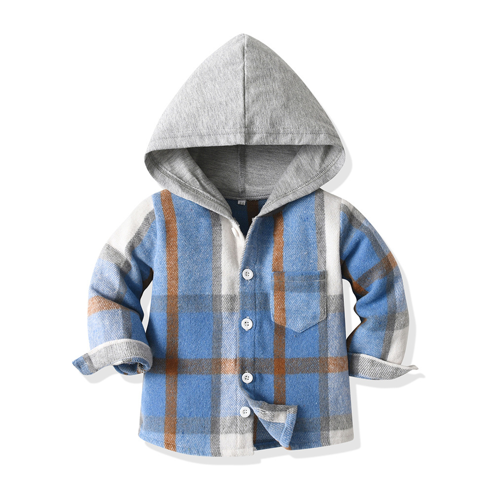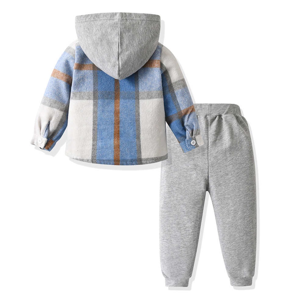 새로운 국경 간 아동복 유럽과 미국 어린이 격자 무늬 셔츠 긴 소매 후드 코튼 소년의 캐주얼 세트 소년 옷스토어 가기