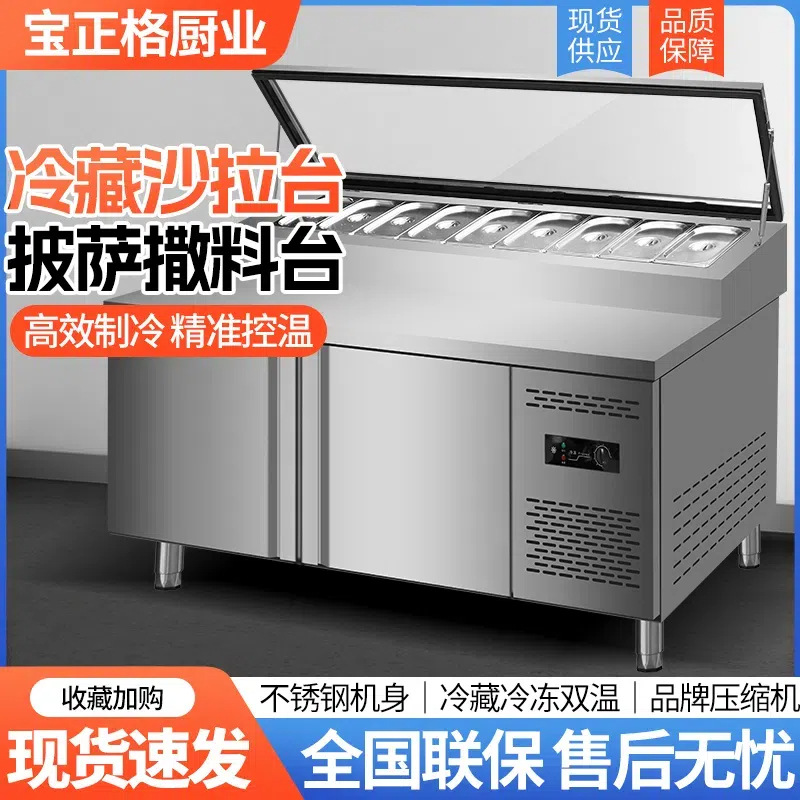 상업용 피자 조미료 테이블, 냉장 작업대, 슬롯형 샐러드 테이블, 디스플레이 냉장고, 스시 판매대, 신선도 유지 냉동고