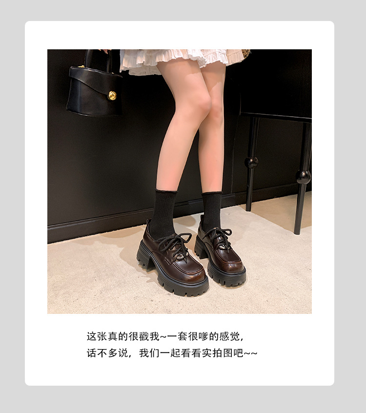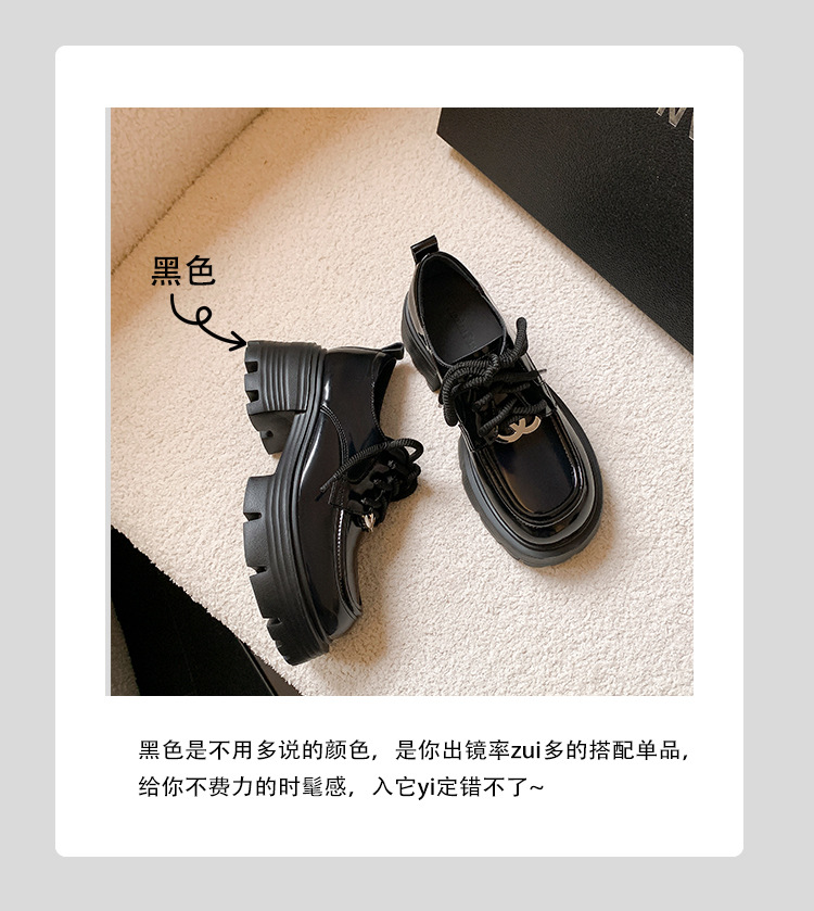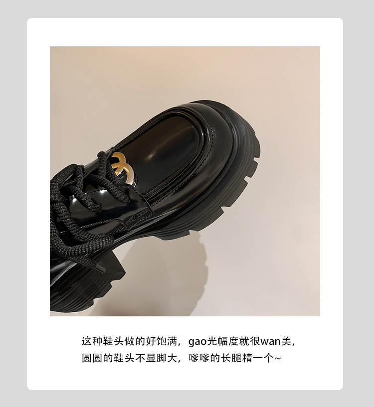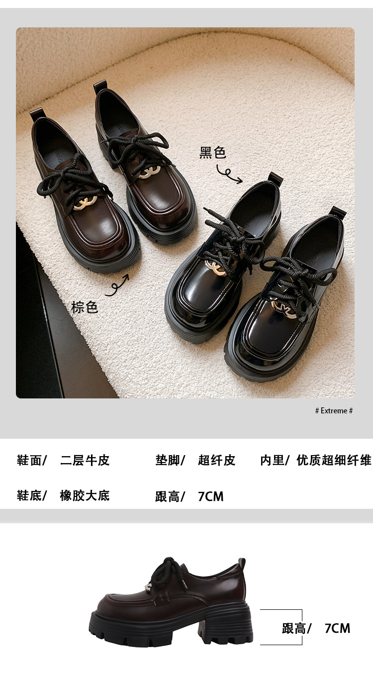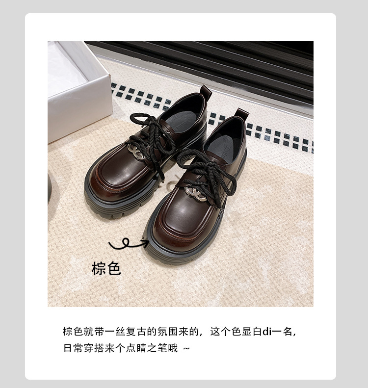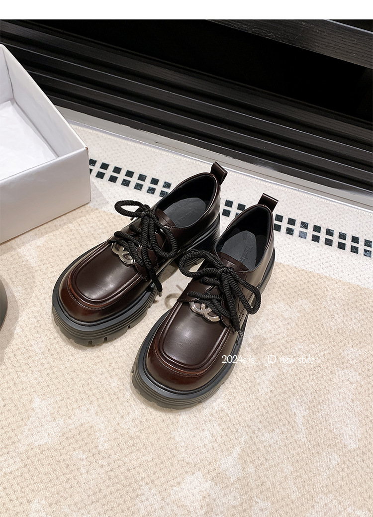 가을 2024 새로운 올 매치 정품 가죽 두꺼운 밑창 로퍼 여성 두꺼운 굽 세련된 라운드 토 레이스 업 영국 스타일의 작은 가죽 신발스토어 가기