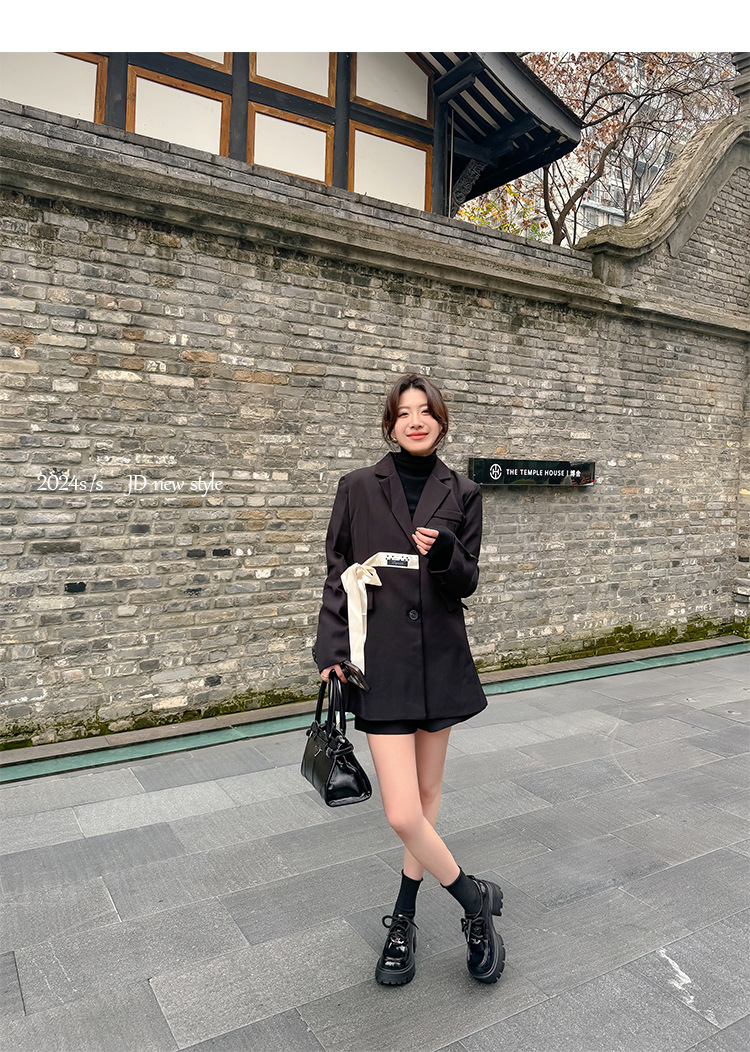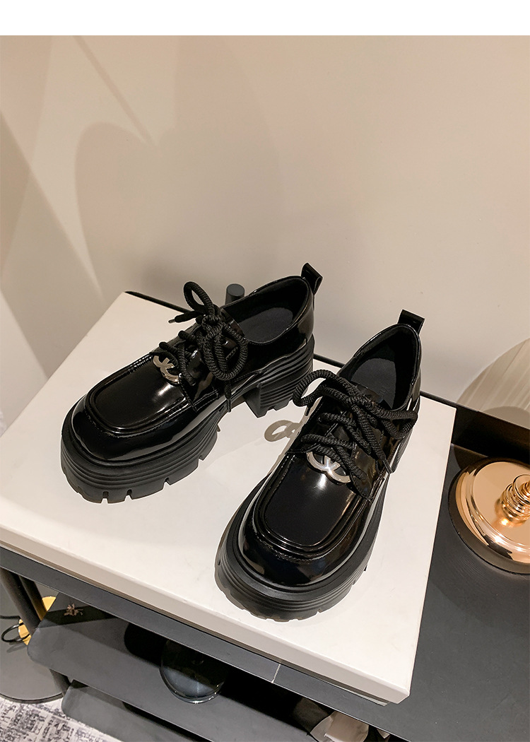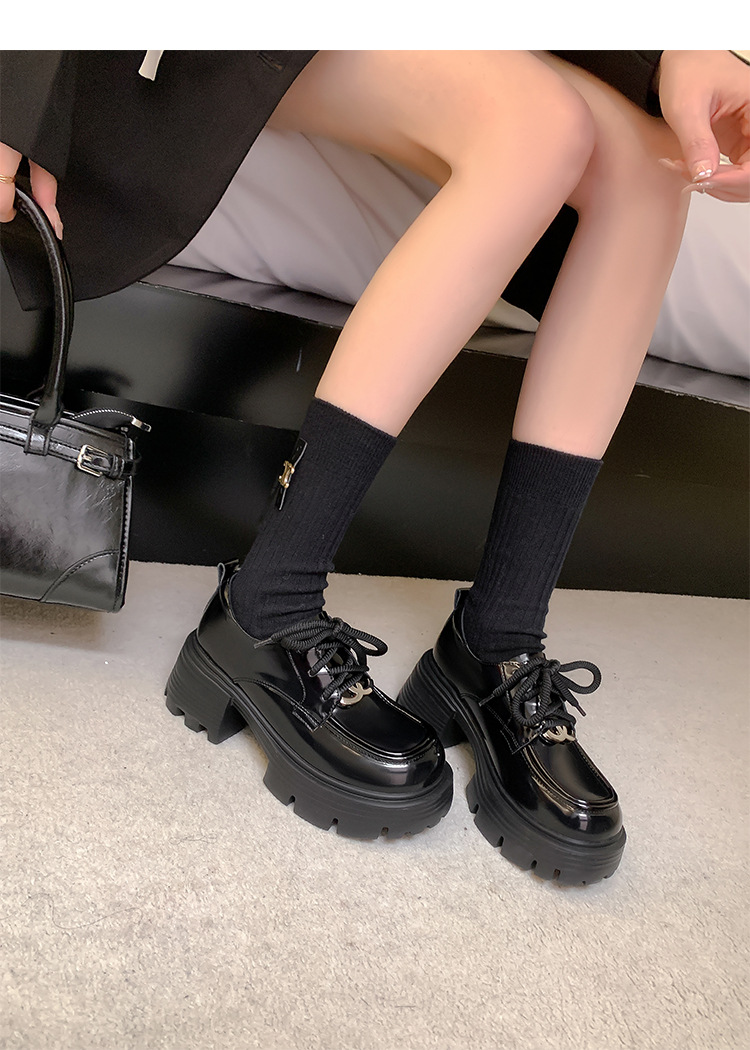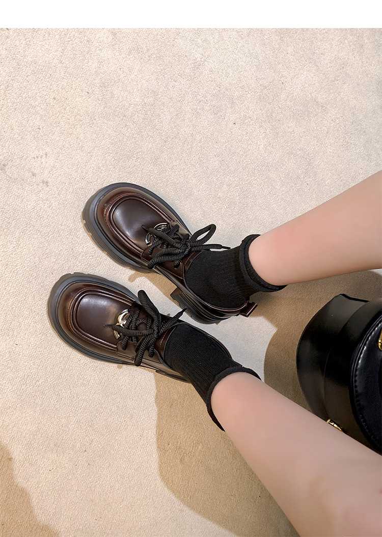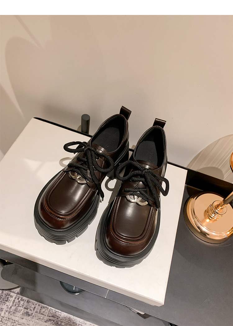 가을 2024 새로운 올 매치 정품 가죽 두꺼운 밑창 로퍼 여성 두꺼운 굽 세련된 라운드 토 레이스 업 영국 스타일의 작은 가죽 신발스토어 가기