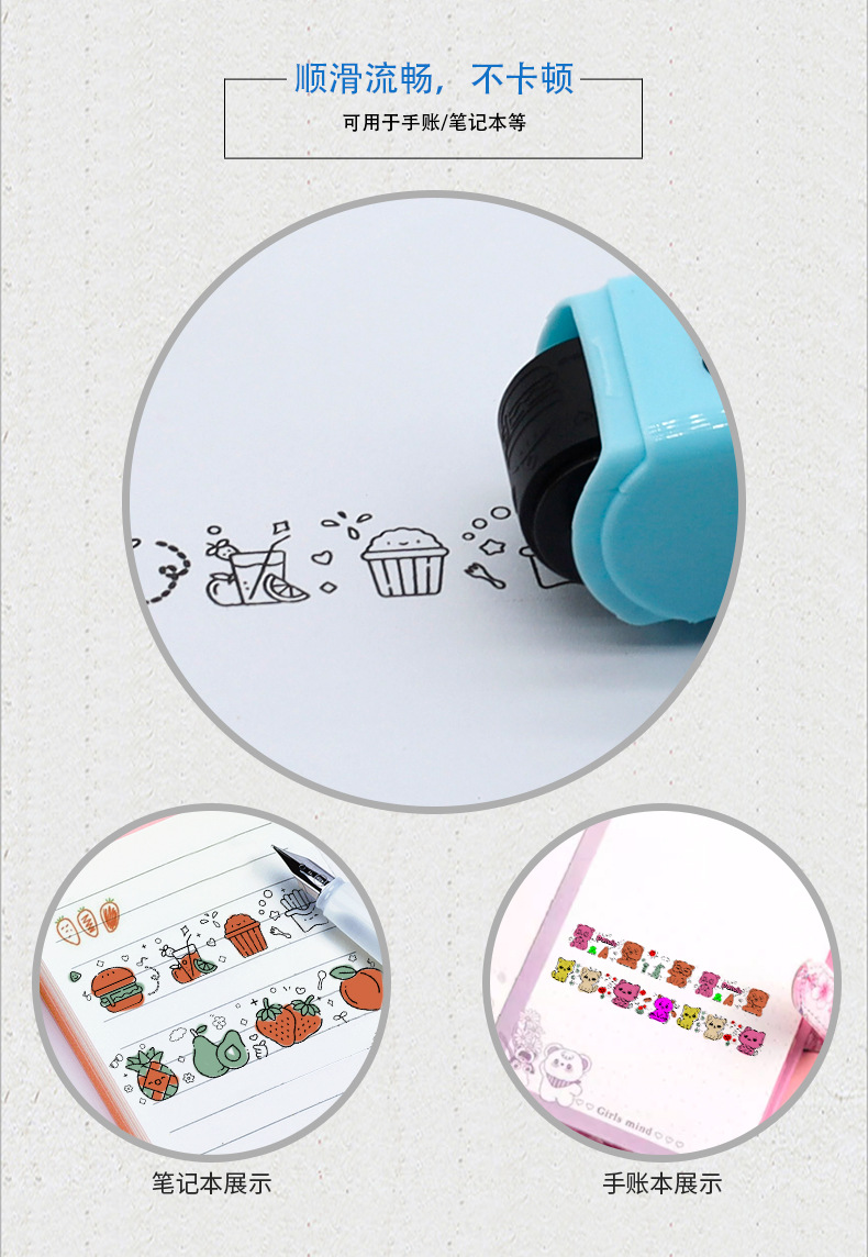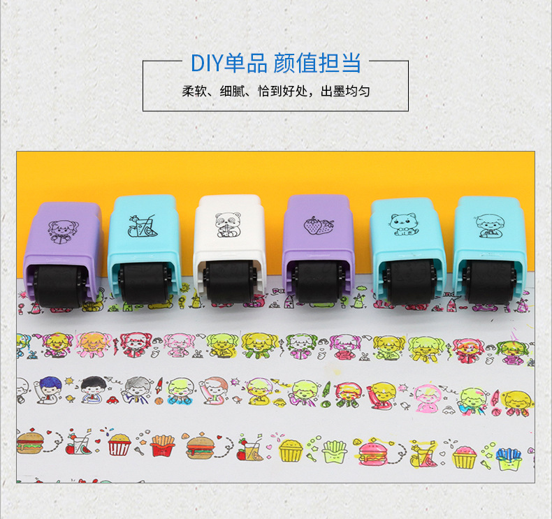 개인화 된 창조적 인 만화 롤러 손 계정 스탬프 사용 가능한 펜 채우기 DIY 낙서 동물 과일 손 계정 일본스토어 가기