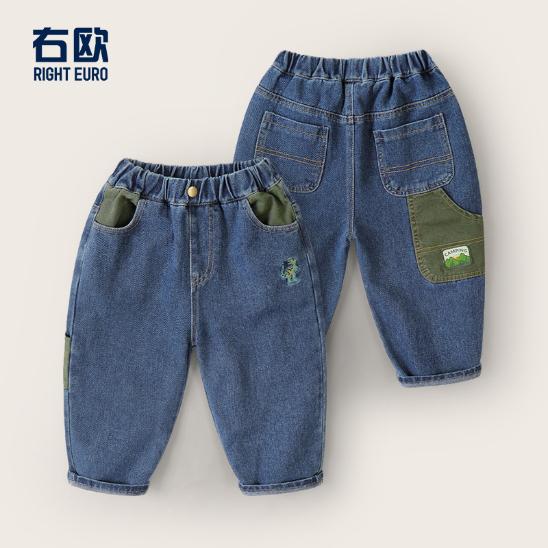 오른쪽 유럽 소년 가을 데님 바지 봄, 가을 2025 새로운 아동 의류 아동용 아기 바지 가을 트렌드스토어 가기