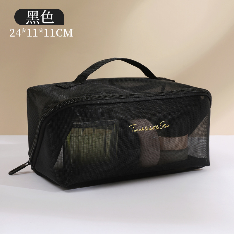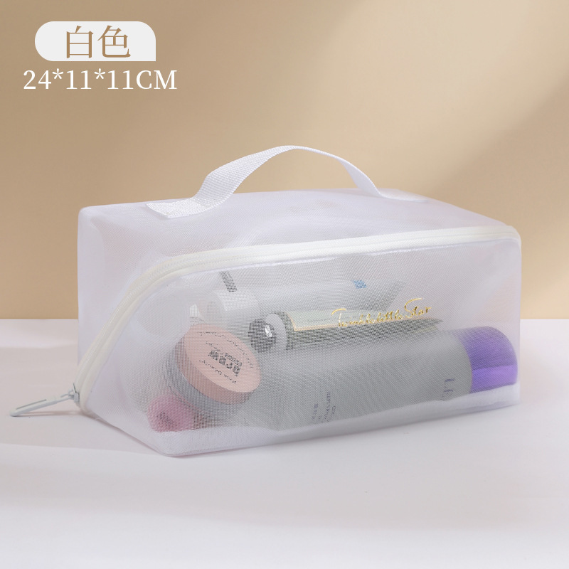 고정 가능한 로고 대용량 메쉬 화장품 가방 투명 간단한 세척 가방 화장품 보관 가방 여행 세탁 가방