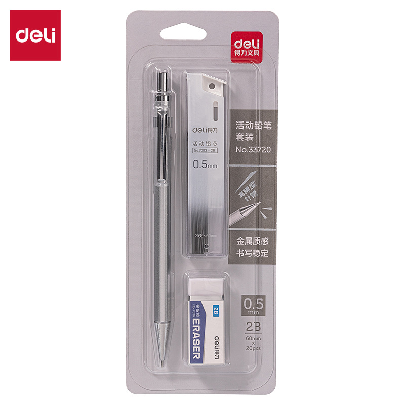 델리 33720 금속 기계 연필 3 피스 세트 2B 낮은 무게 중심은 핵심 문구 학생 시험 드로잉 펜을 깨기 쉽지 않습니다.스토어 가기
