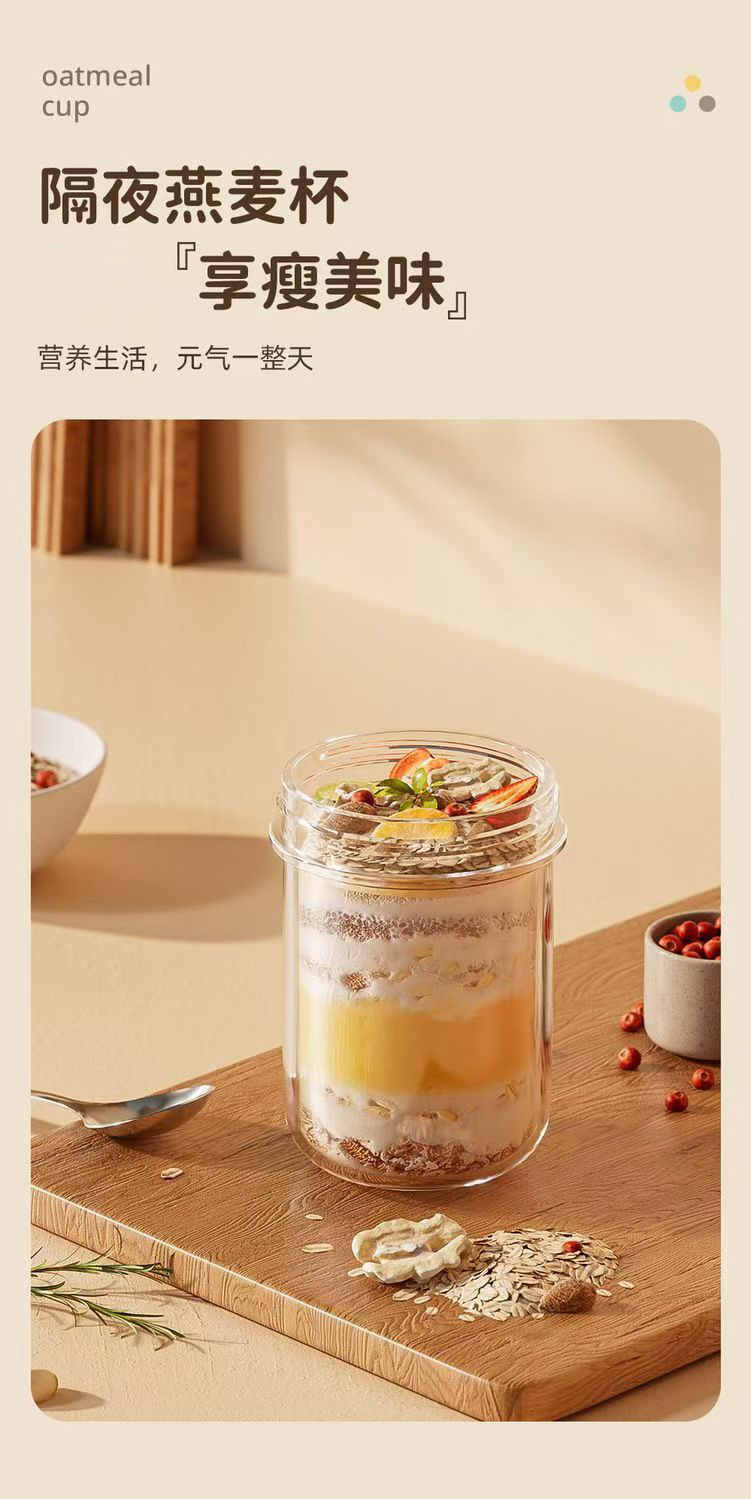 간단한 하룻밤 오트밀 컵 아침 식사 신 우유 컵 유리스토어 가기