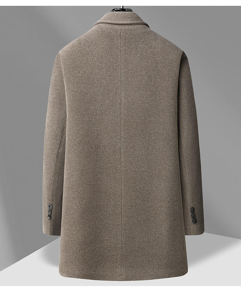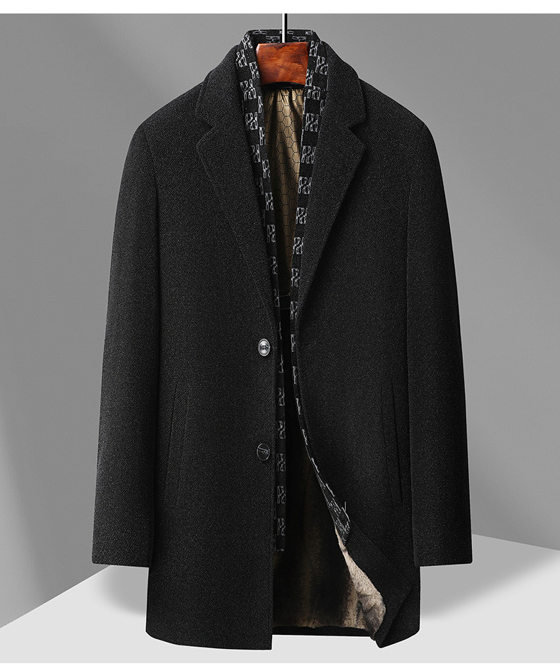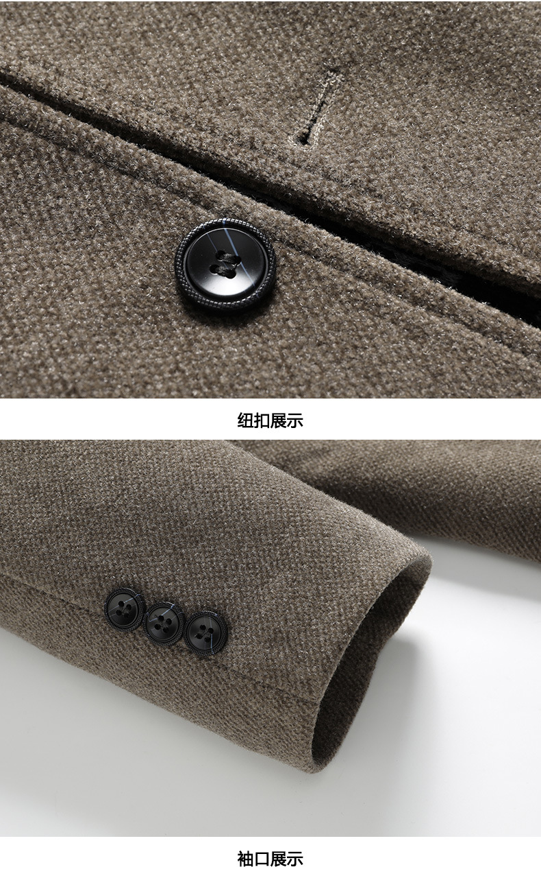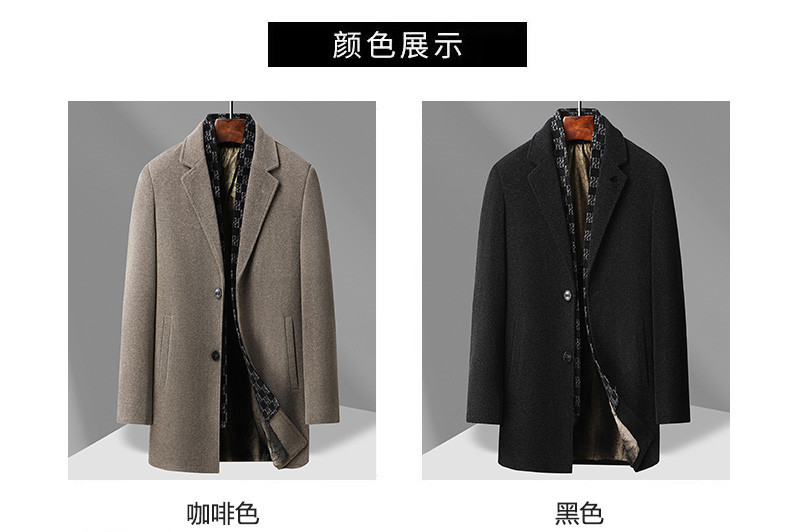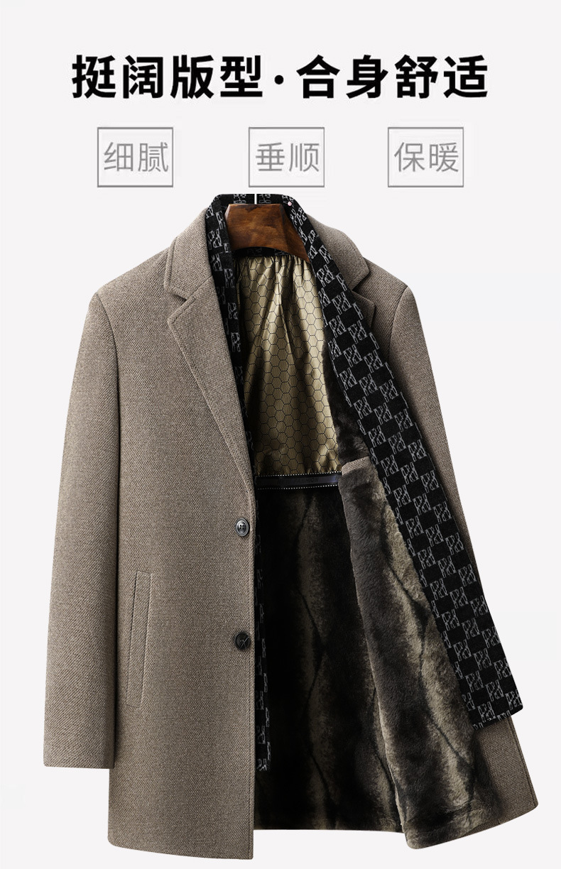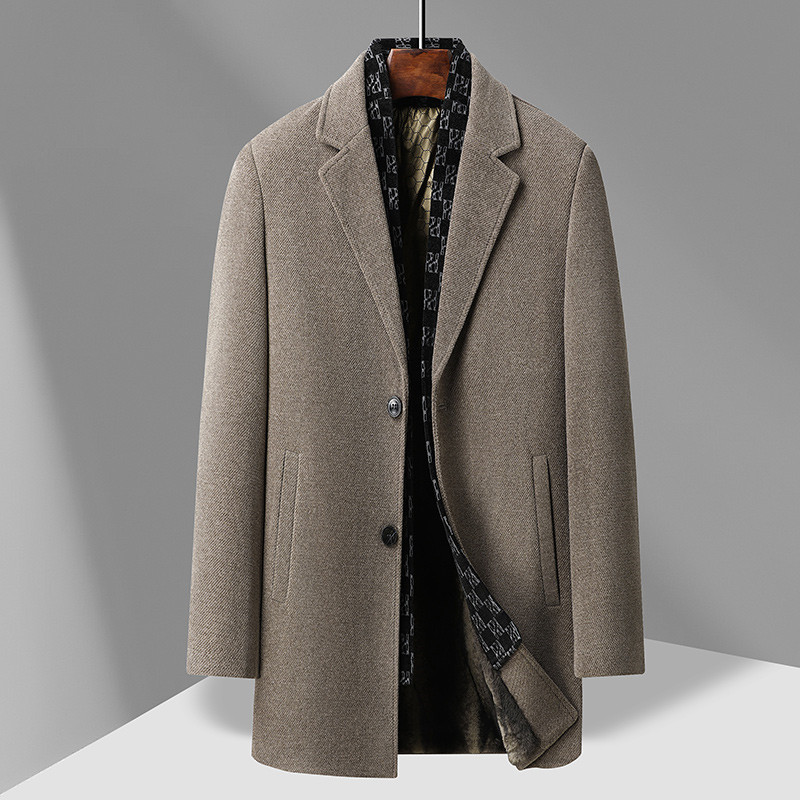국경 간 남성용 솔리드 컬러 모직 코트 비즈니스 슬림 핏 스카프 서양식 칼라 솔리드 컬러 기모 남성용 중간 길이의 코트스토어 가기