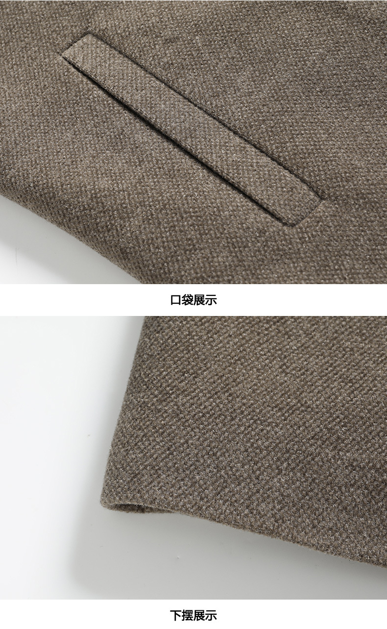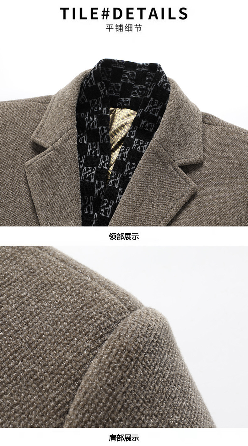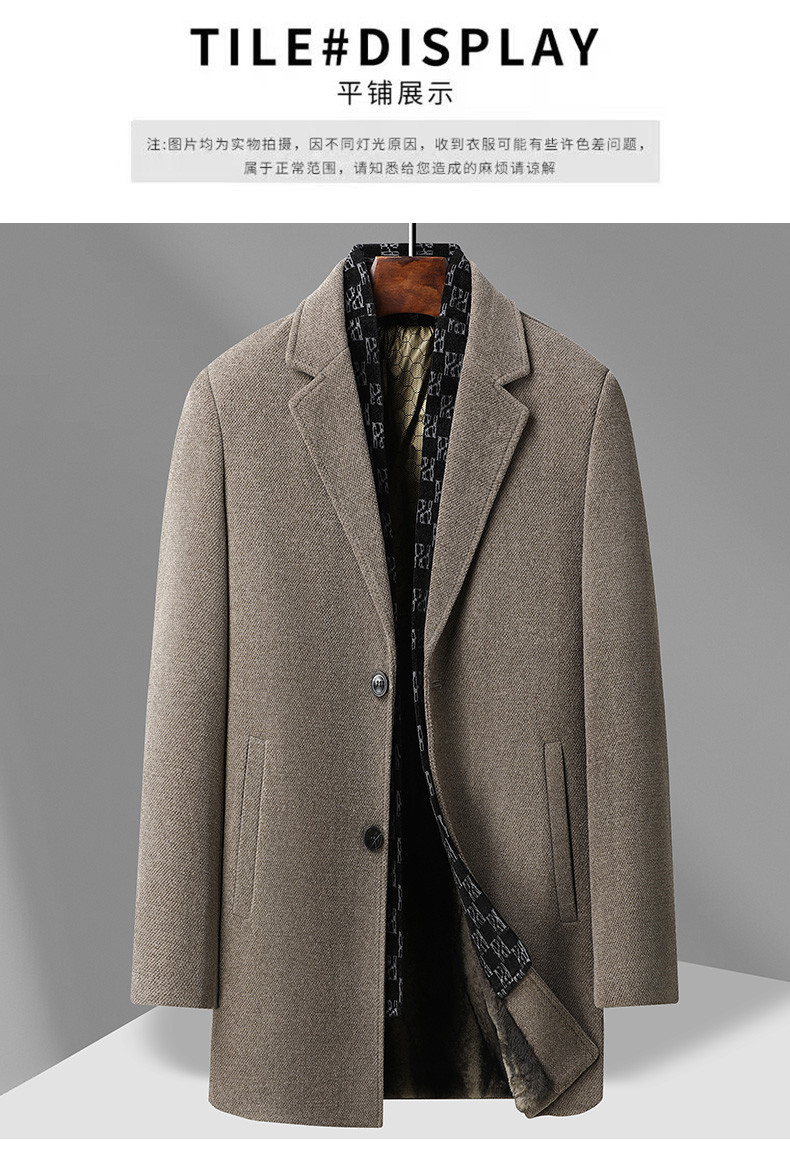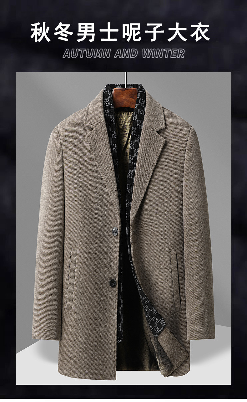 국경 간 남성용 솔리드 컬러 모직 코트 비즈니스 슬림 핏 스카프 서양식 칼라 솔리드 컬러 기모 남성용 중간 길이의 코트스토어 가기