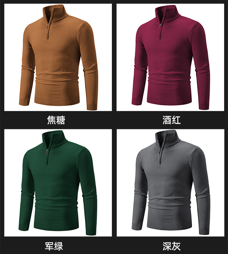 2025년 가을 겨울 신상 남성 스웨터, 남성용 단색 하프 터틀넥 이너웨어, 10가지 색상 니트웨어 도매스토어 가기