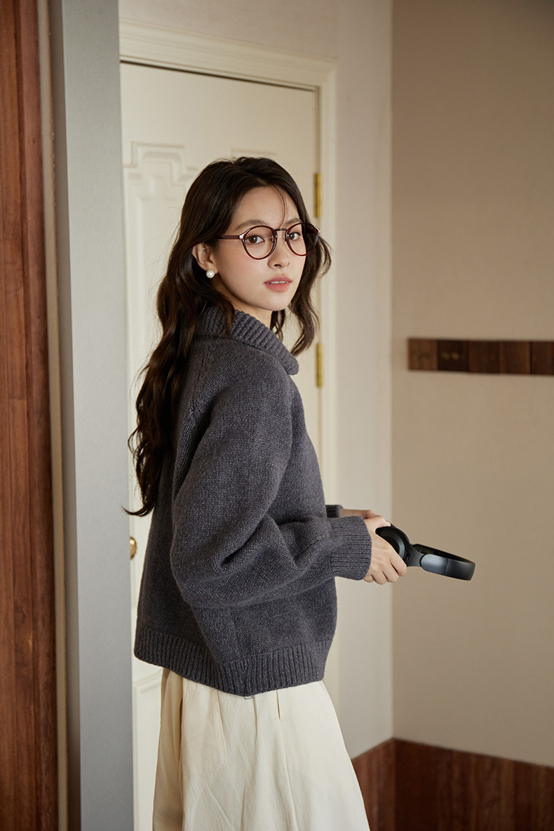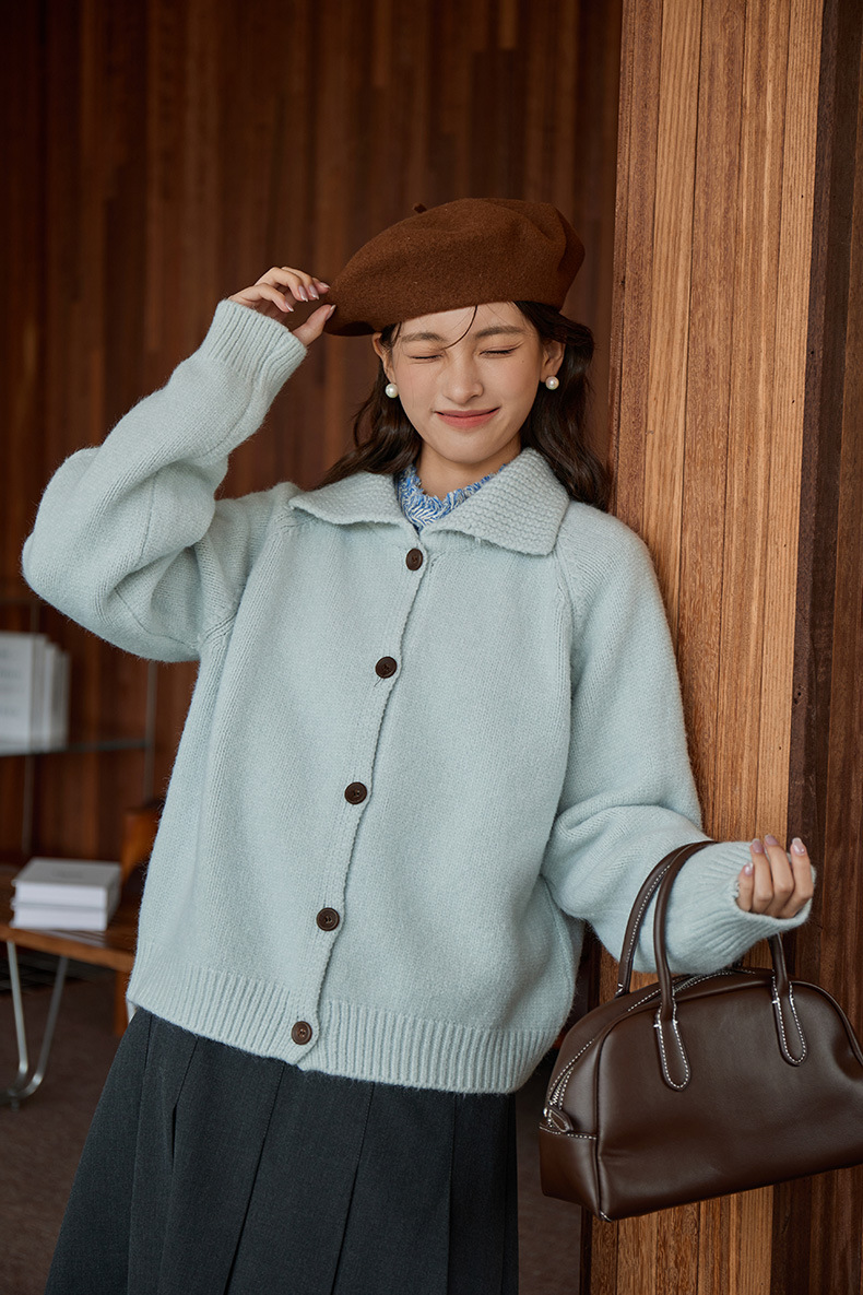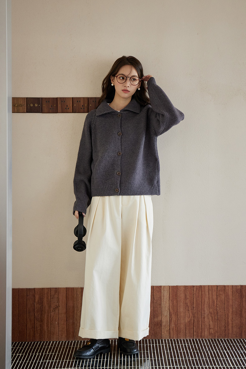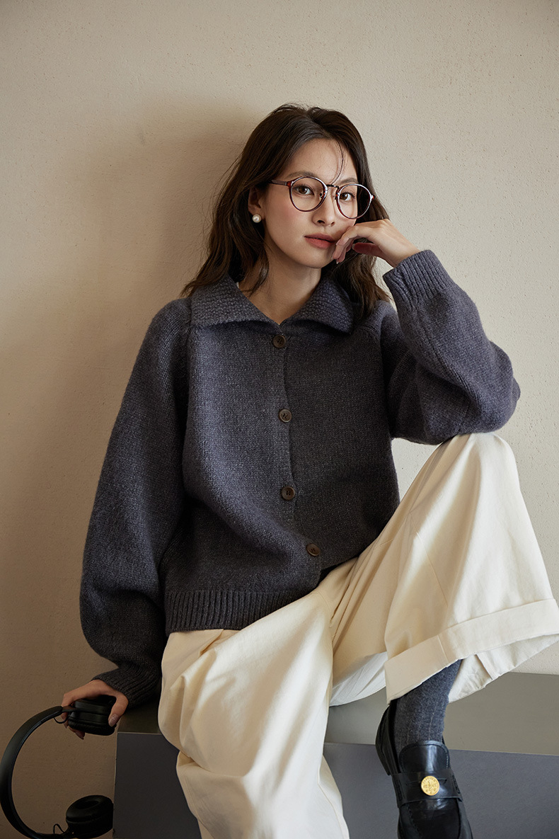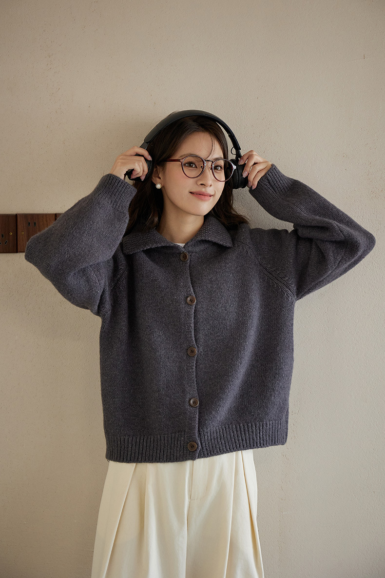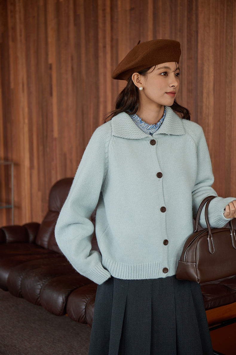 2024 가을과 겨울 새로운 일본 간단한 단색 옷깃 스웨터 코트 여성용 게으른 인형 칼라 니트 카디건 탑스토어 가기
