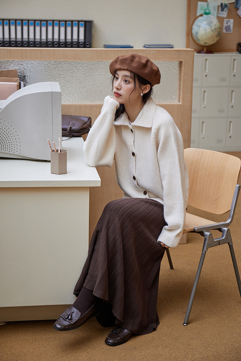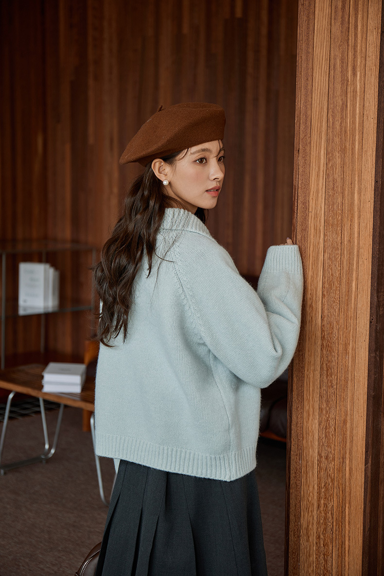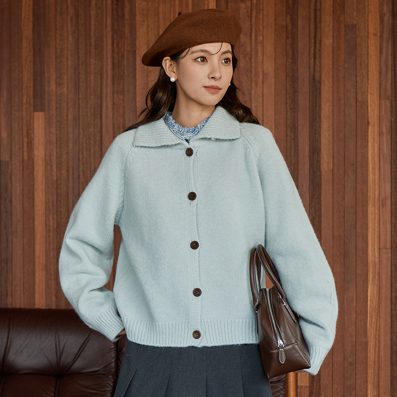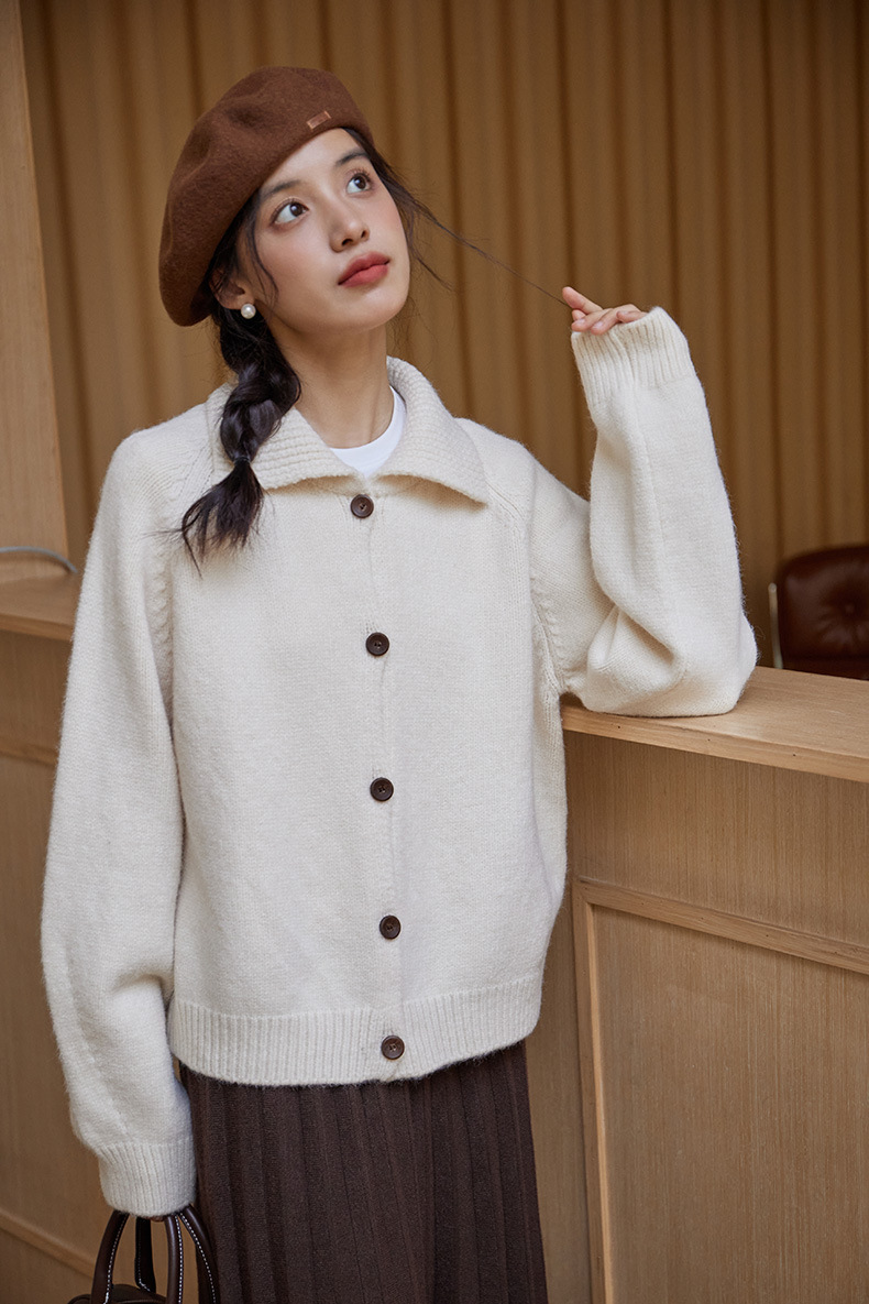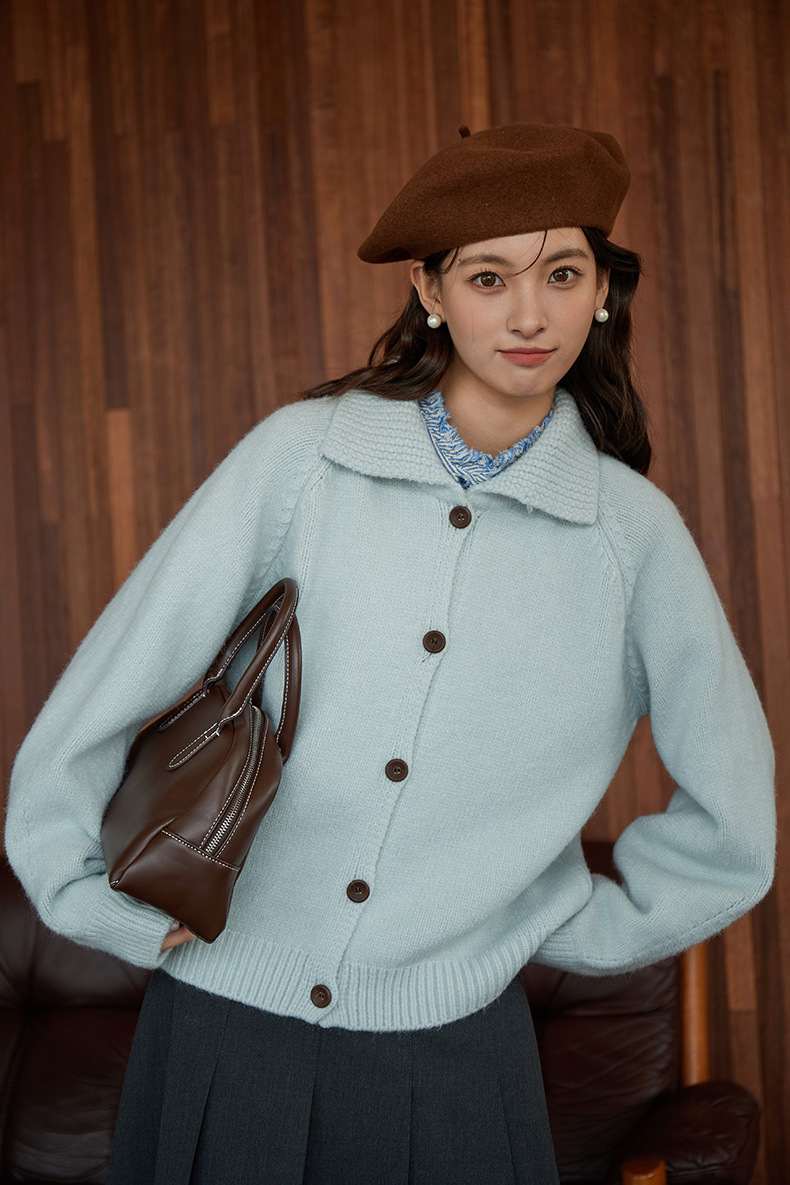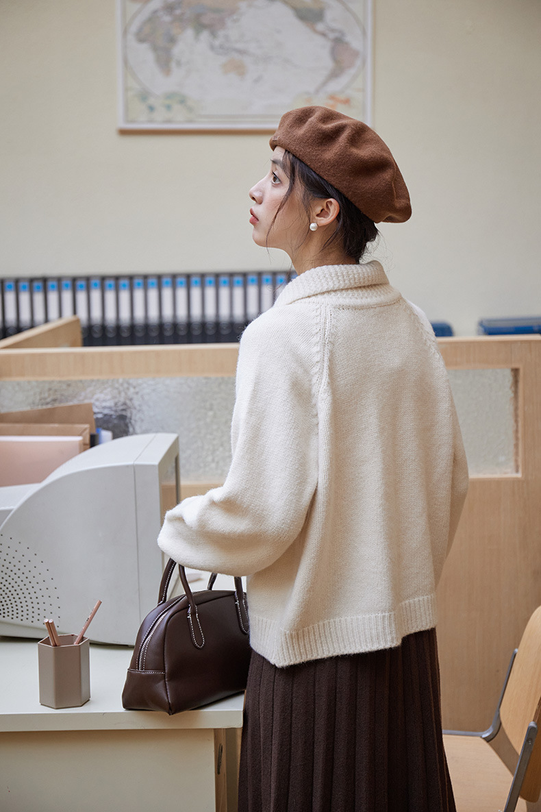 2024 가을과 겨울 새로운 일본 간단한 단색 옷깃 스웨터 코트 여성용 게으른 인형 칼라 니트 카디건 탑스토어 가기