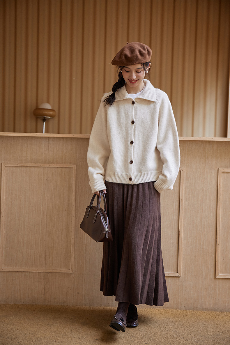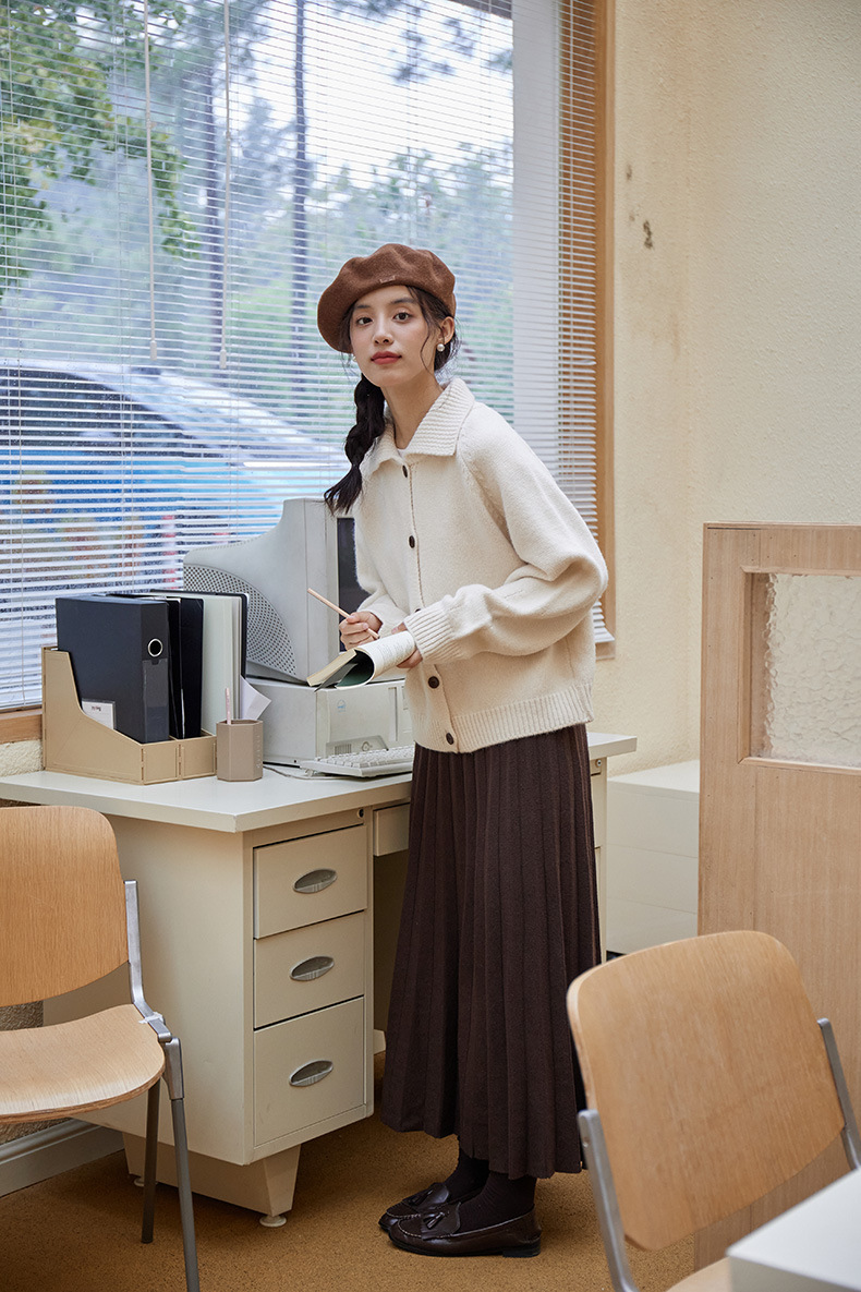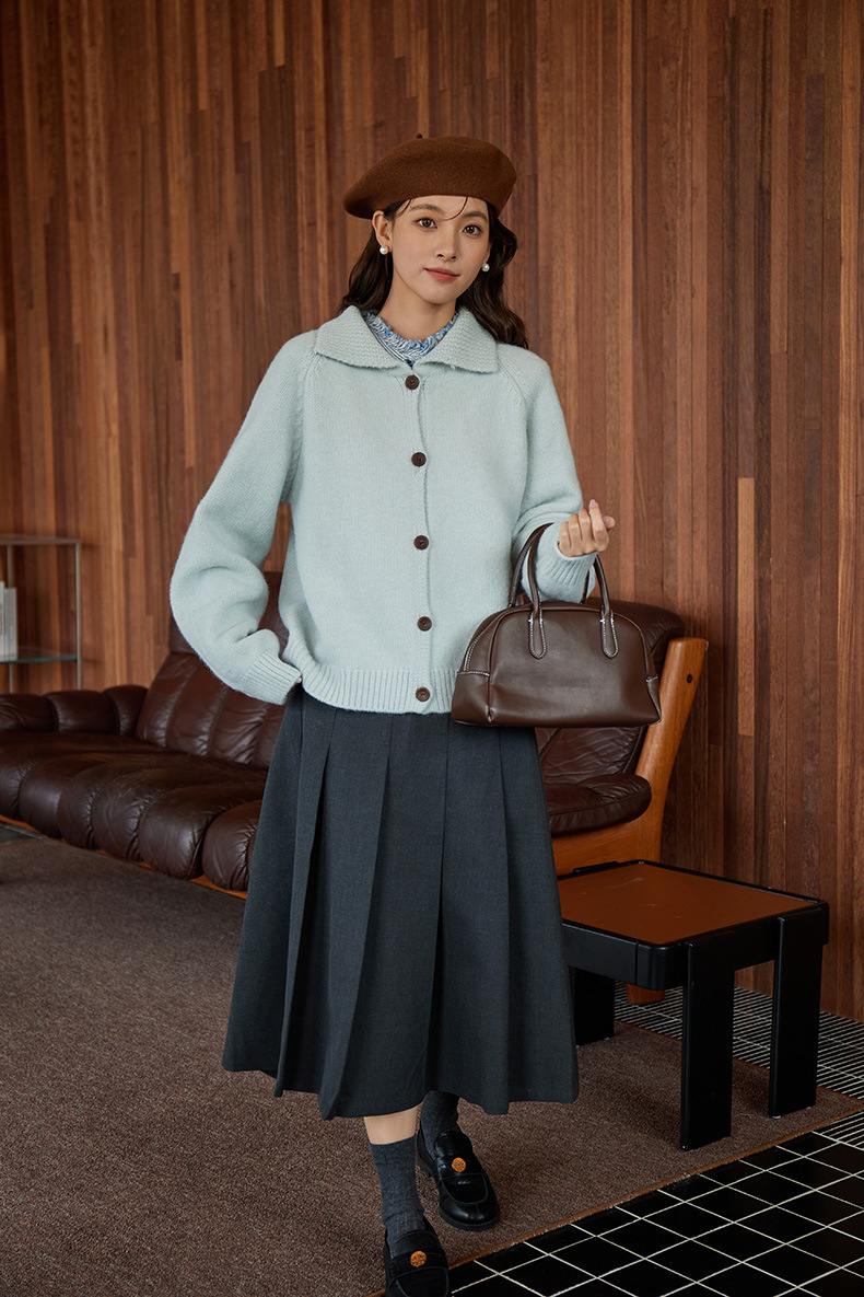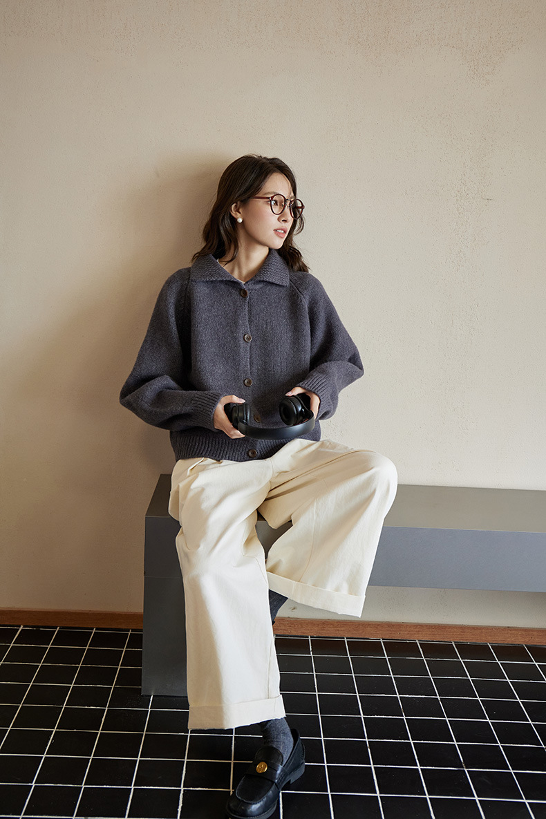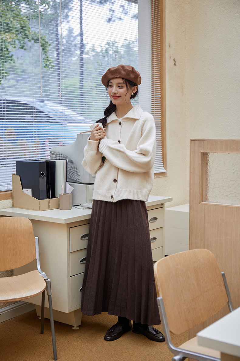 2024 가을과 겨울 새로운 일본 간단한 단색 옷깃 스웨터 코트 여성용 게으른 인형 칼라 니트 카디건 탑스토어 가기