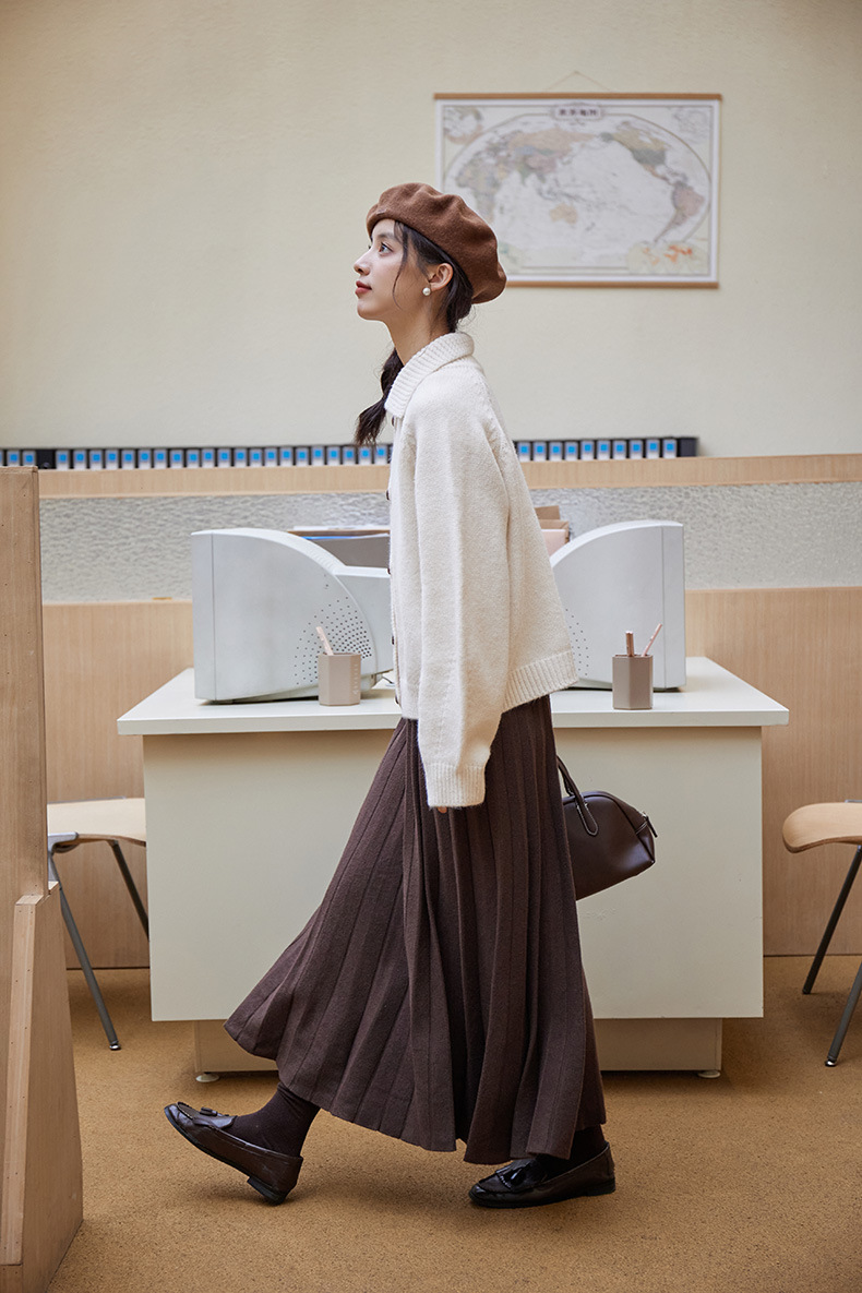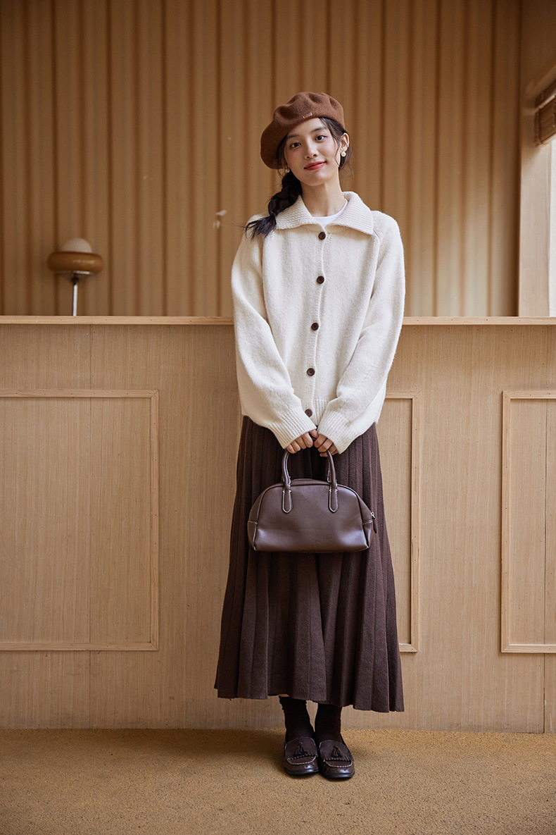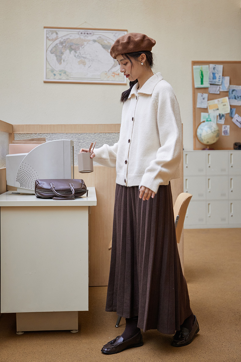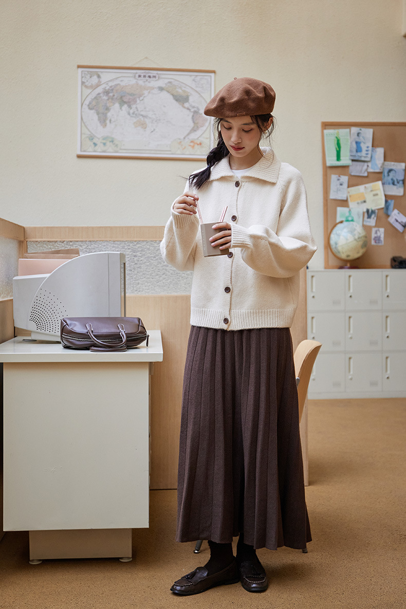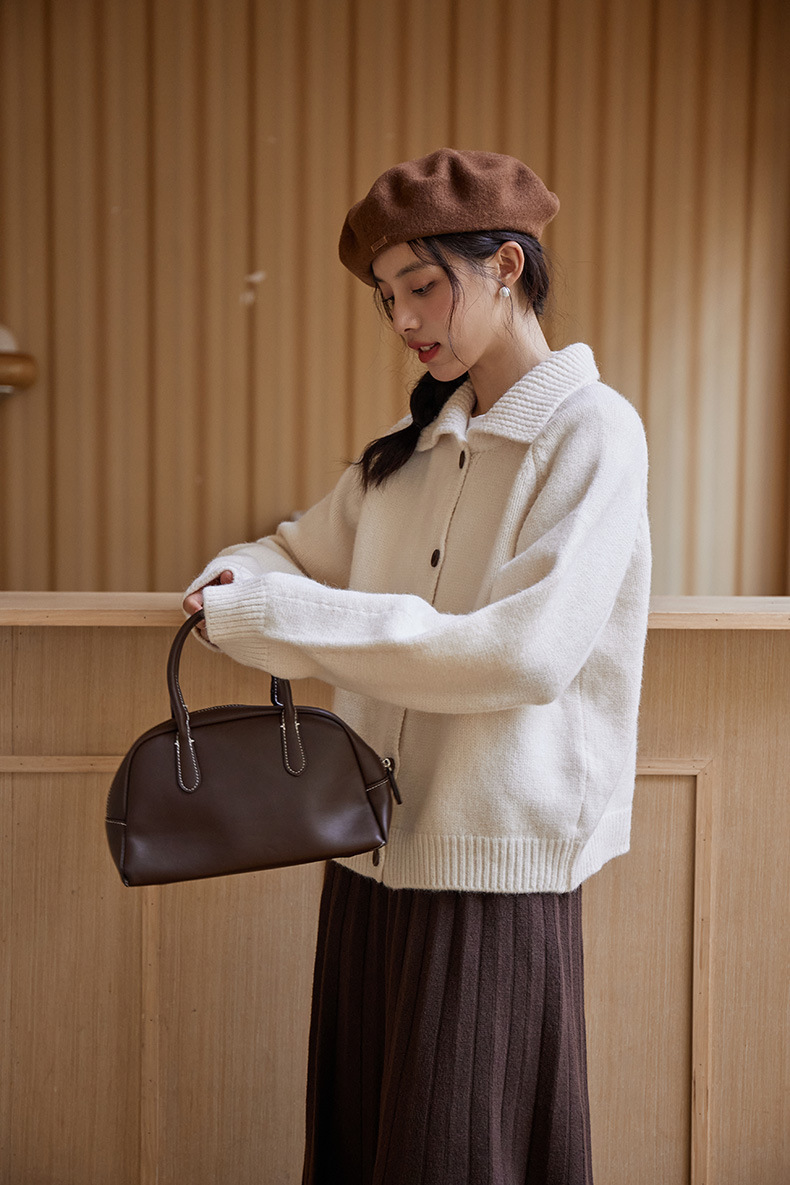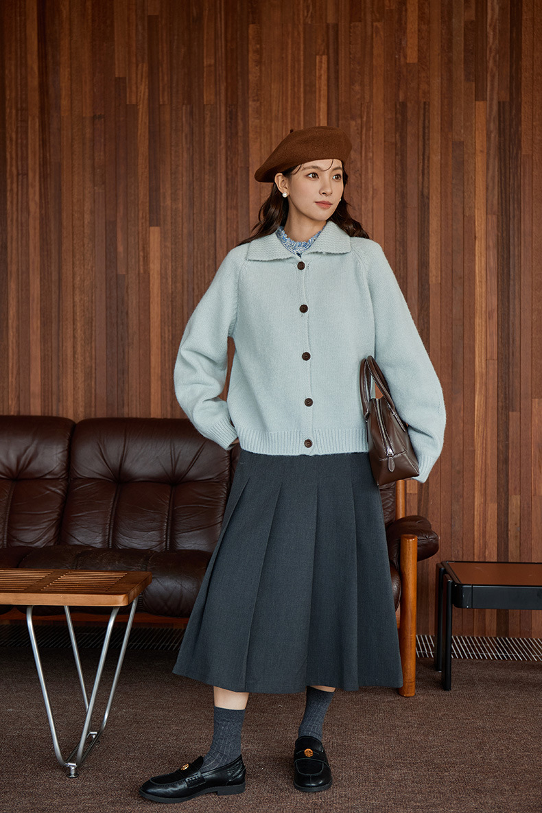 2024 가을과 겨울 새로운 일본 간단한 단색 옷깃 스웨터 코트 여성용 게으른 인형 칼라 니트 카디건 탑스토어 가기