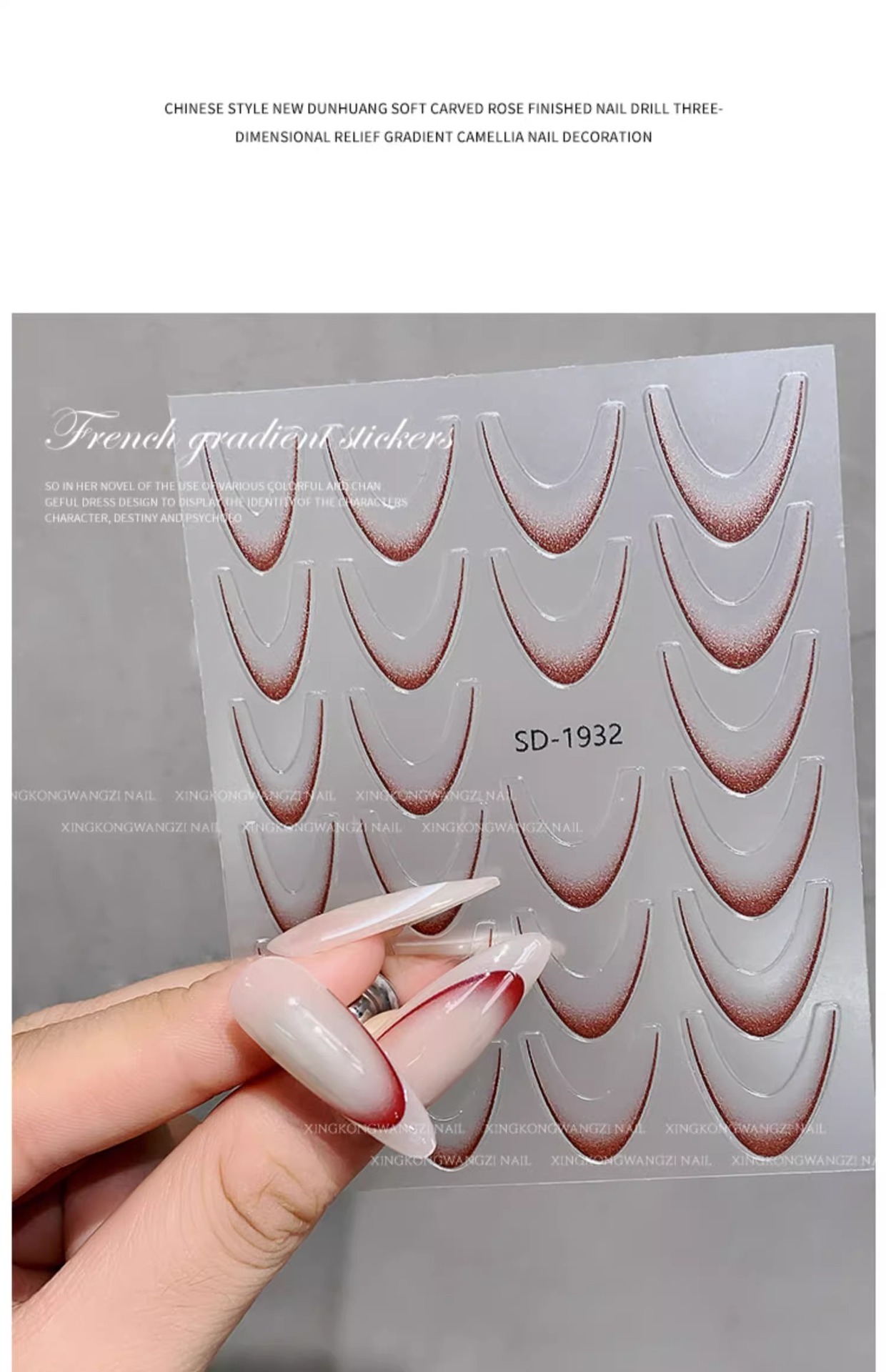 • SD-1932 레트로 레드 그라데이션 프렌치 스티커
