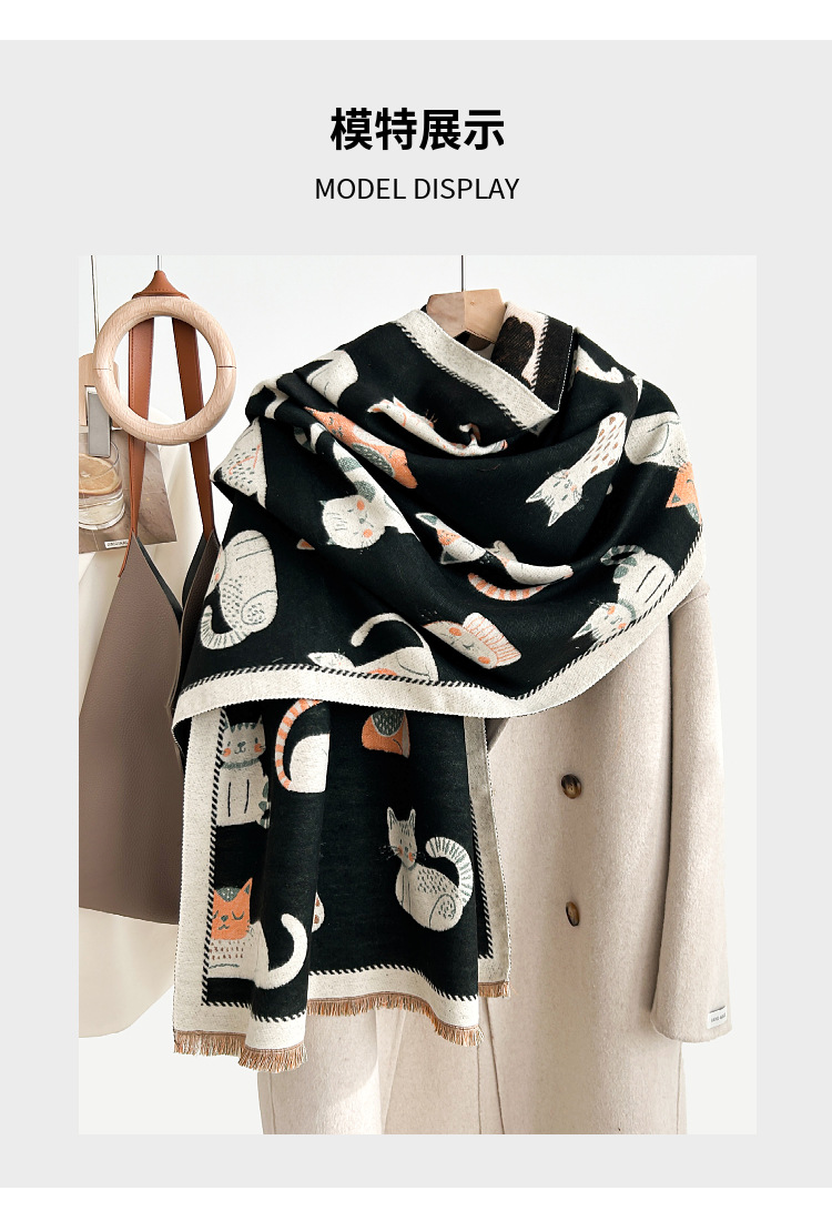 새로운 겨울 양면 캐시미어 스테레오 고양이 따뜻한 스카프 패션 올 매치 고급 스카프 목도리 대형 광장스토어 가기