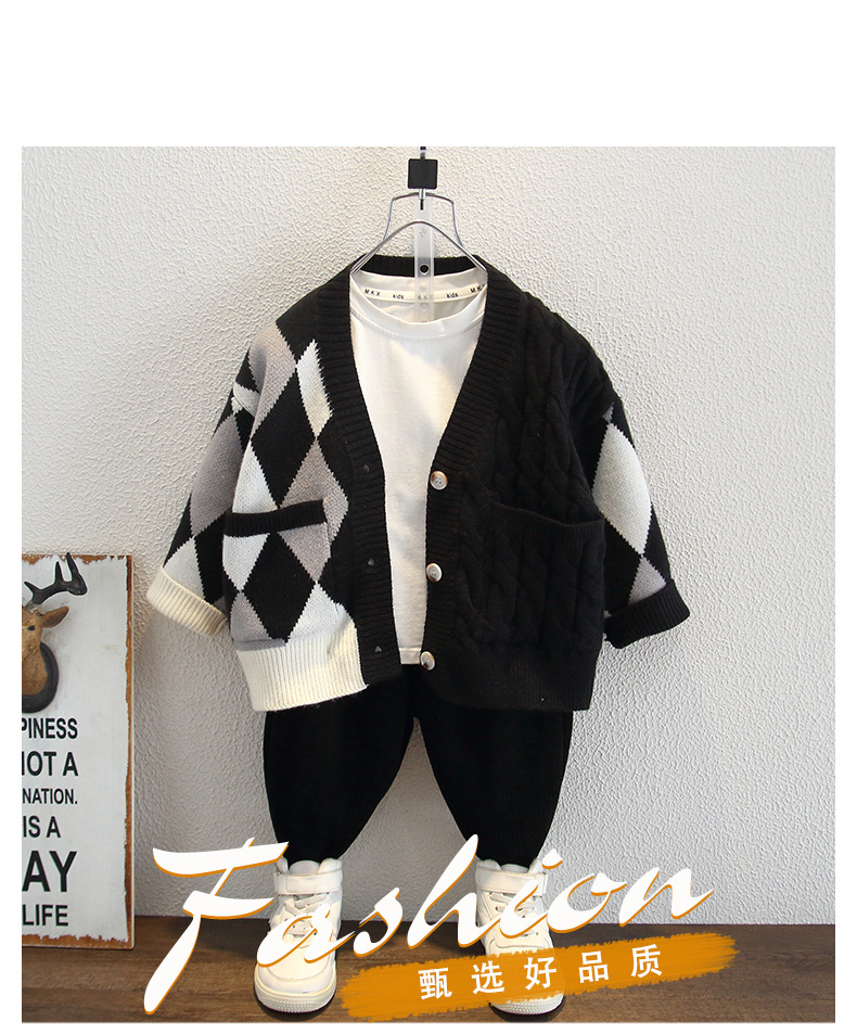 소년 스웨터 가을 어린이 한국 스타일 서양식 아기의 가을 코트 2024 새로운 잘 생긴 소년의 니트 카디건스토어 가기