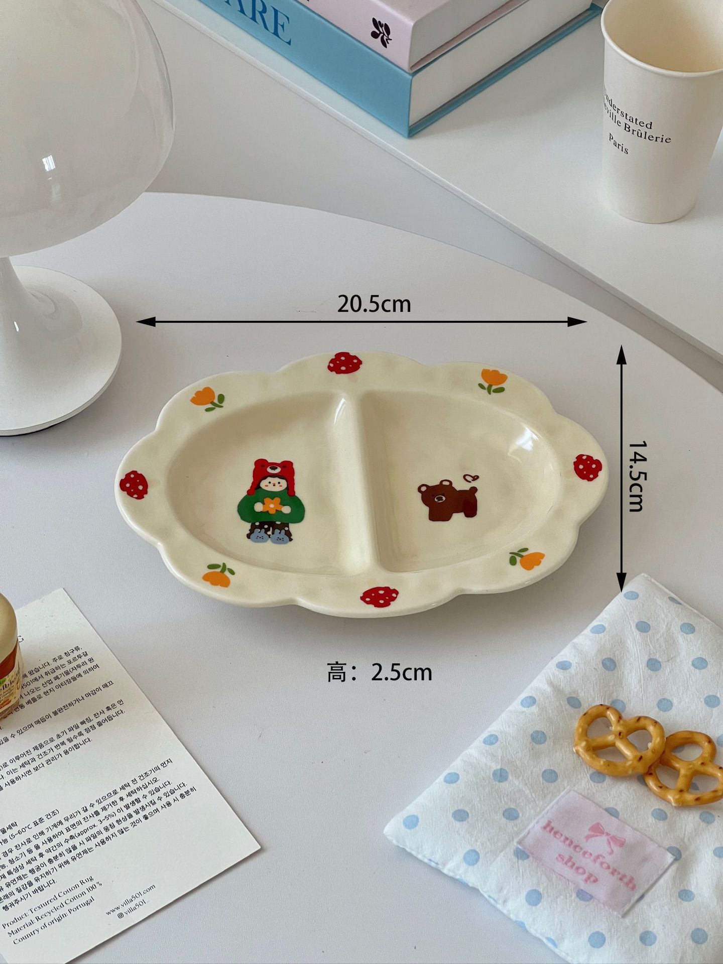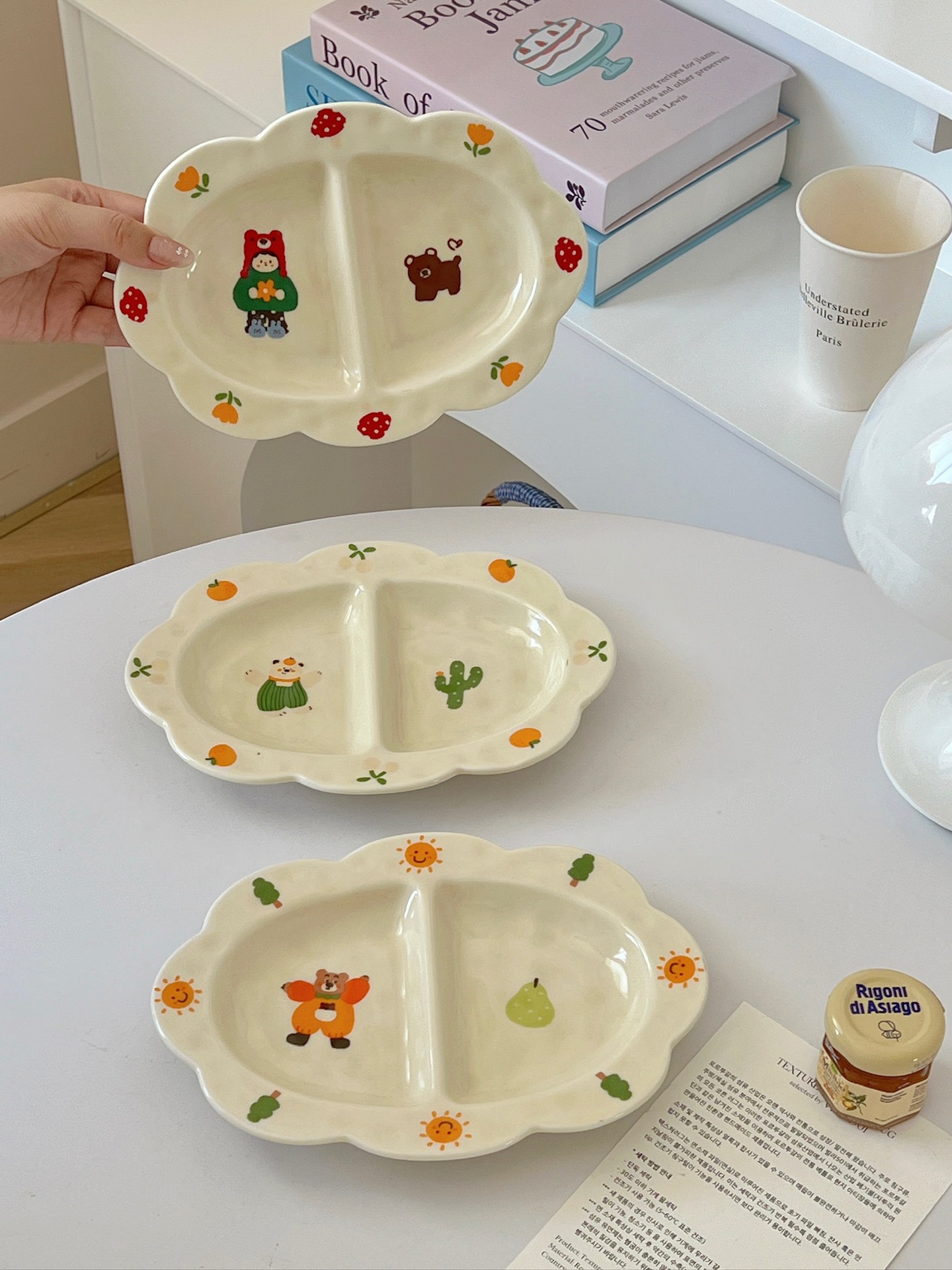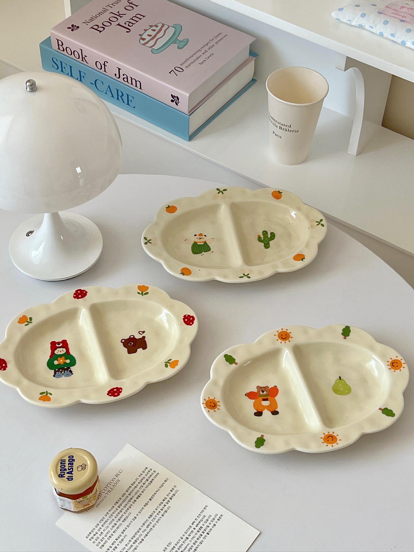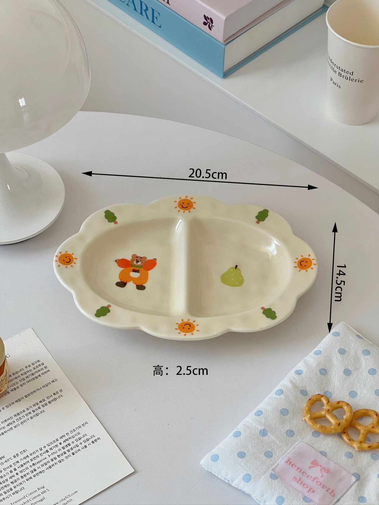 [Guohe Ceramics] 에 만화 귀여운 세라믹 아침 식사 접시 분할 접시 디저트 플레이트 가정용 식기