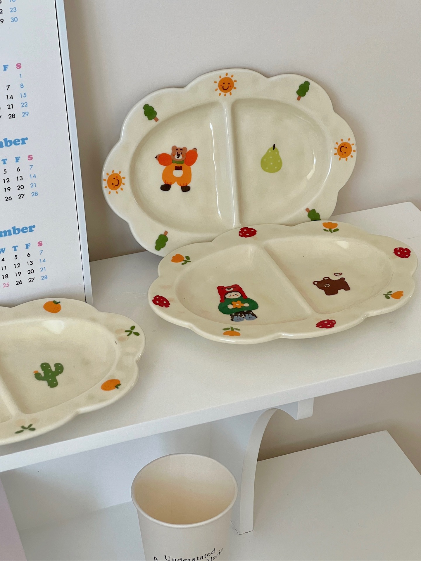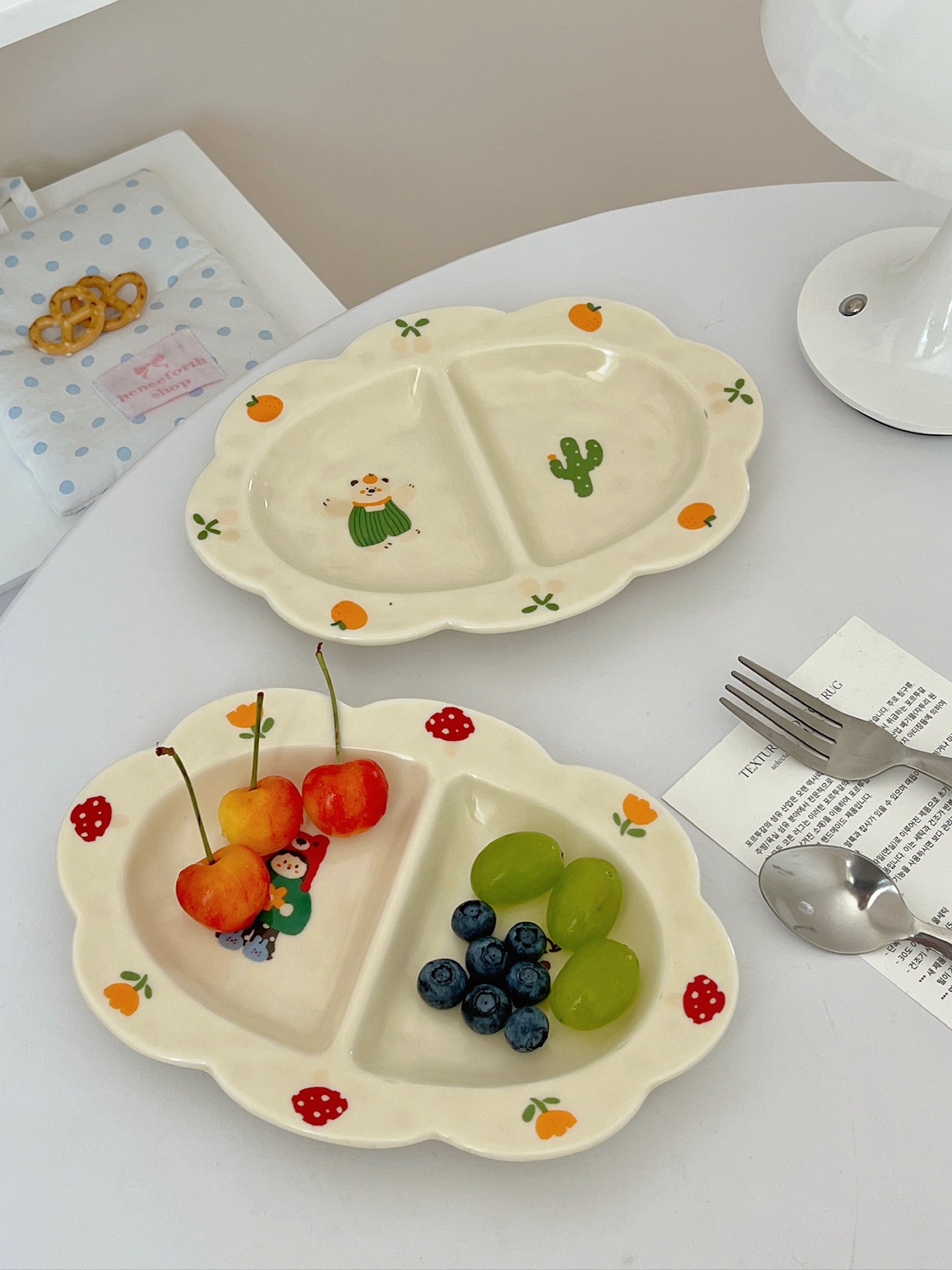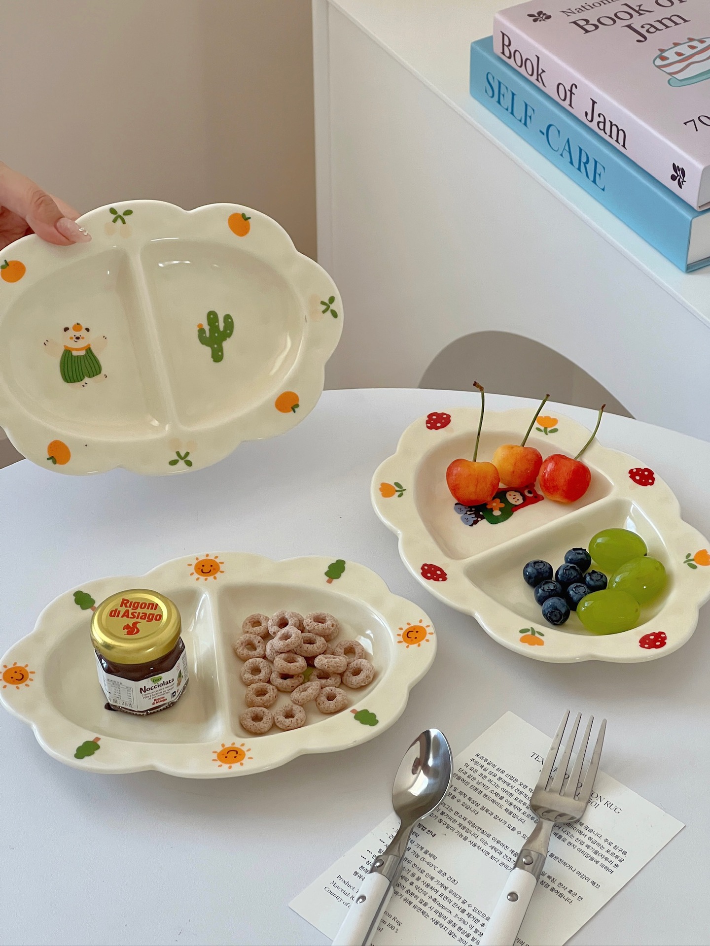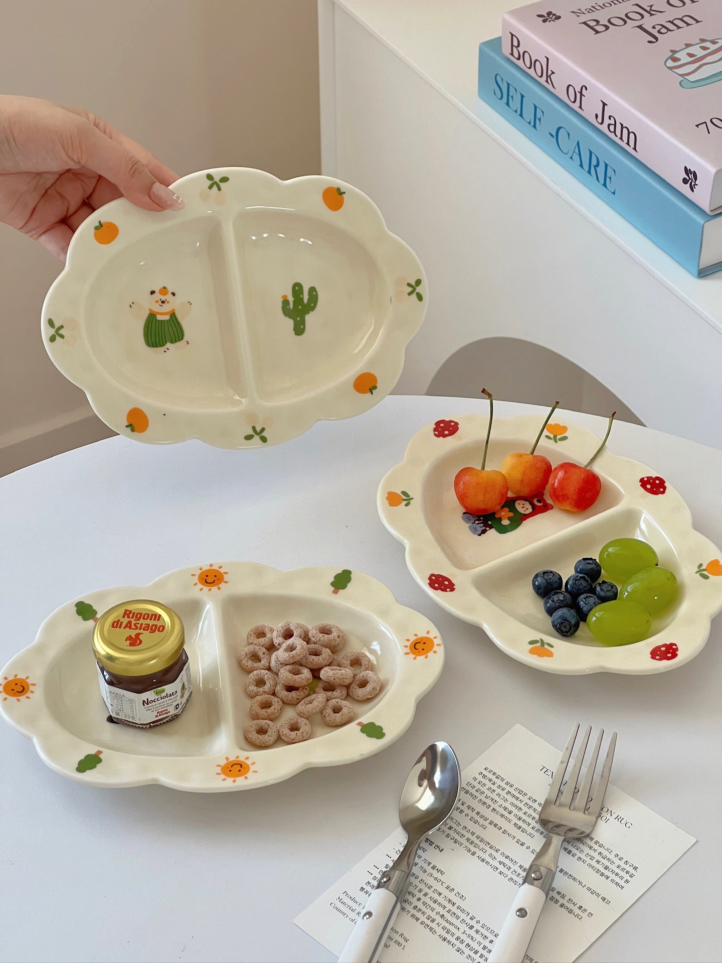 [Guohe Ceramics] 에 만화 귀여운 세라믹 아침 식사 접시 분할 접시 디저트 플레이트 가정용 식기
