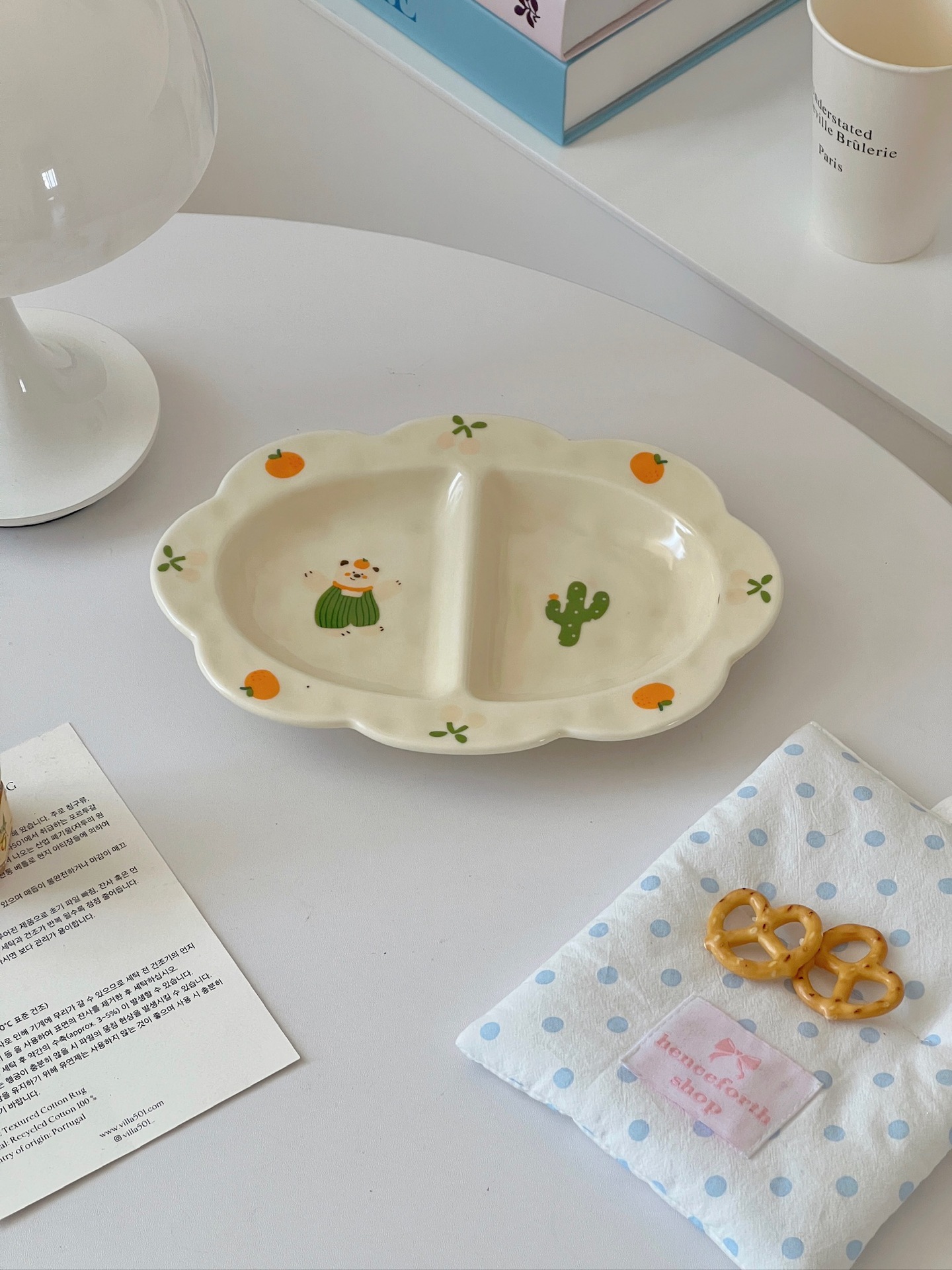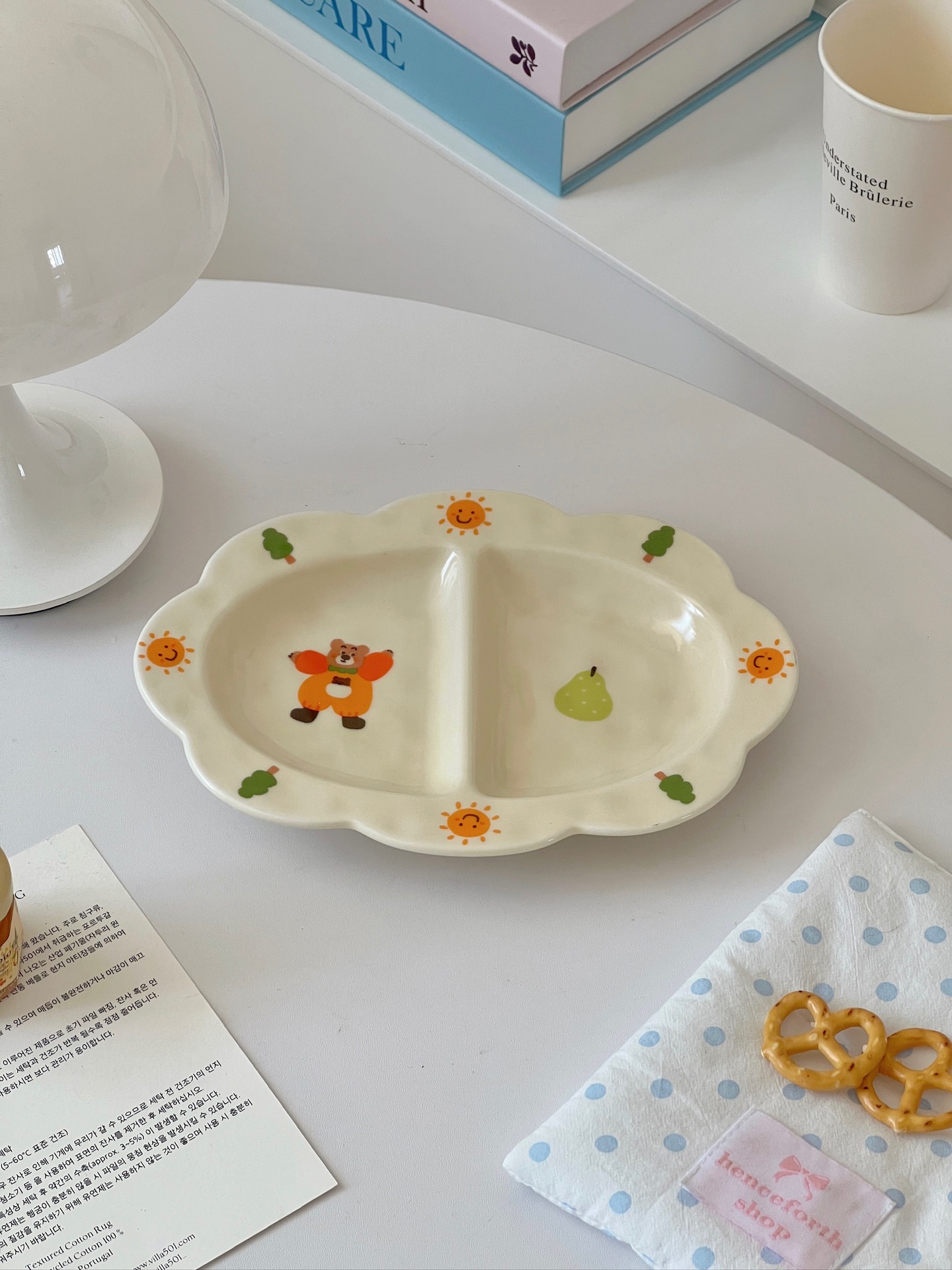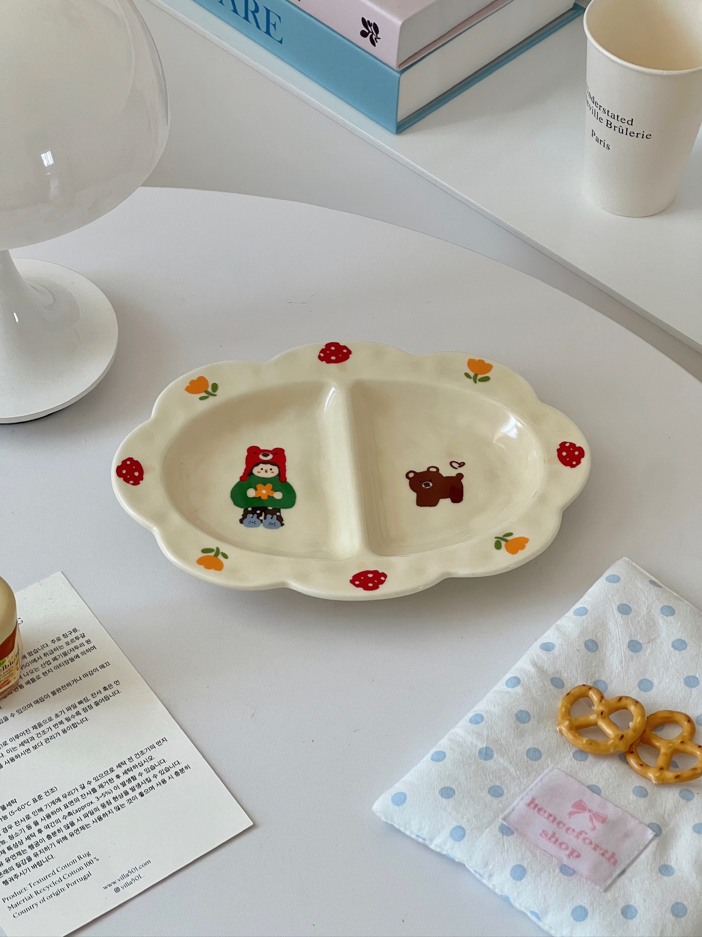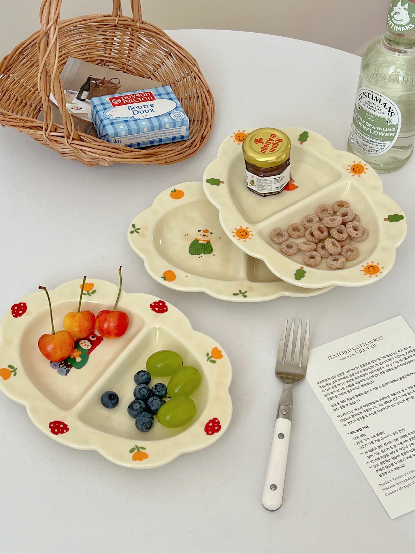 [Guohe Ceramics] 에 만화 귀여운 세라믹 아침 식사 접시 분할 접시 디저트 플레이트 가정용 식기