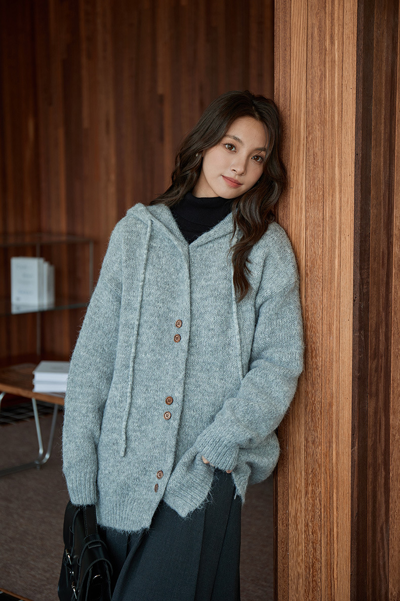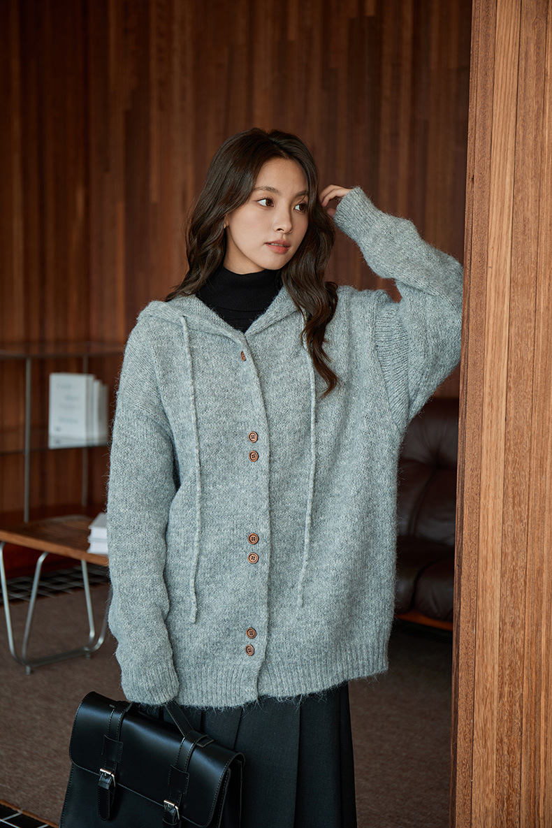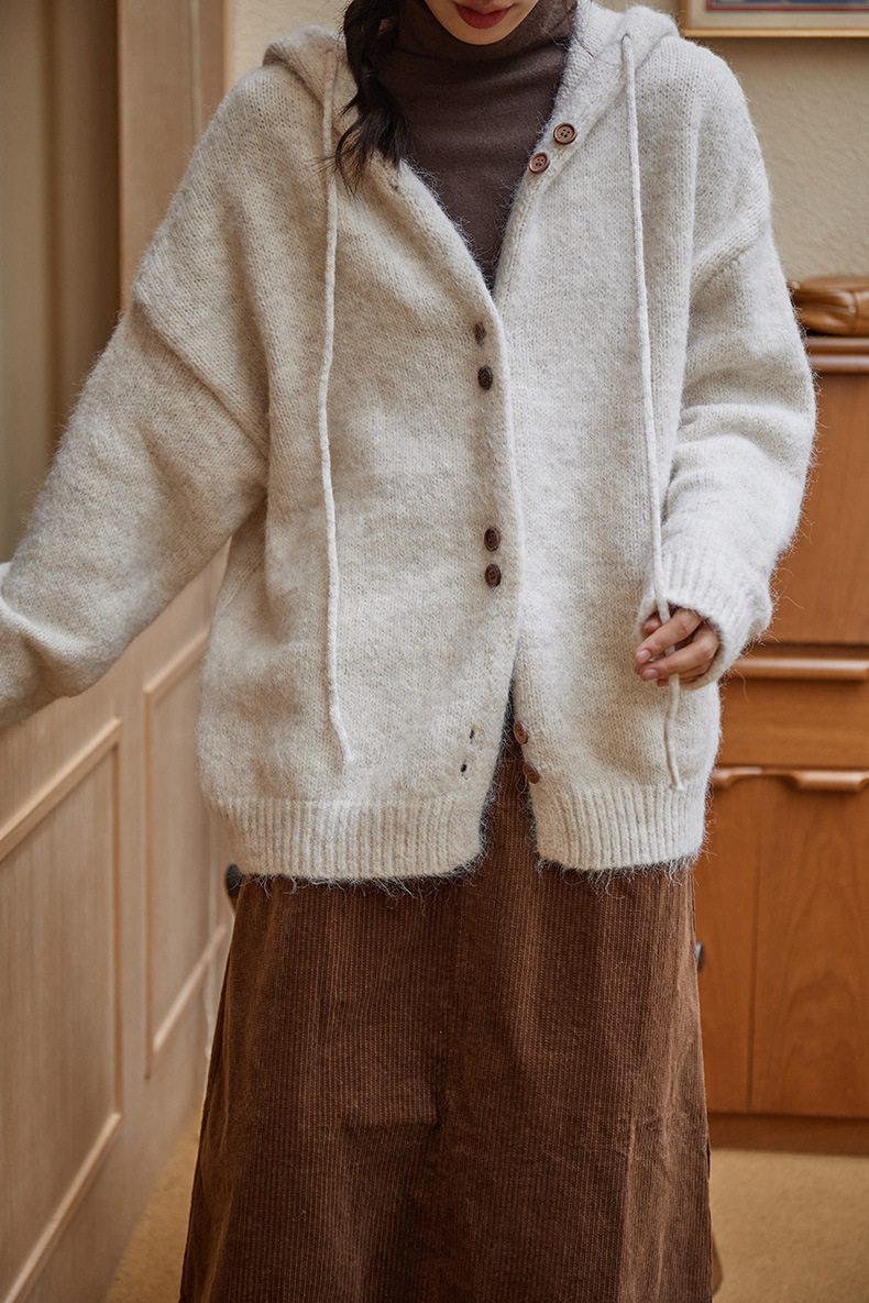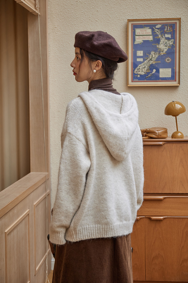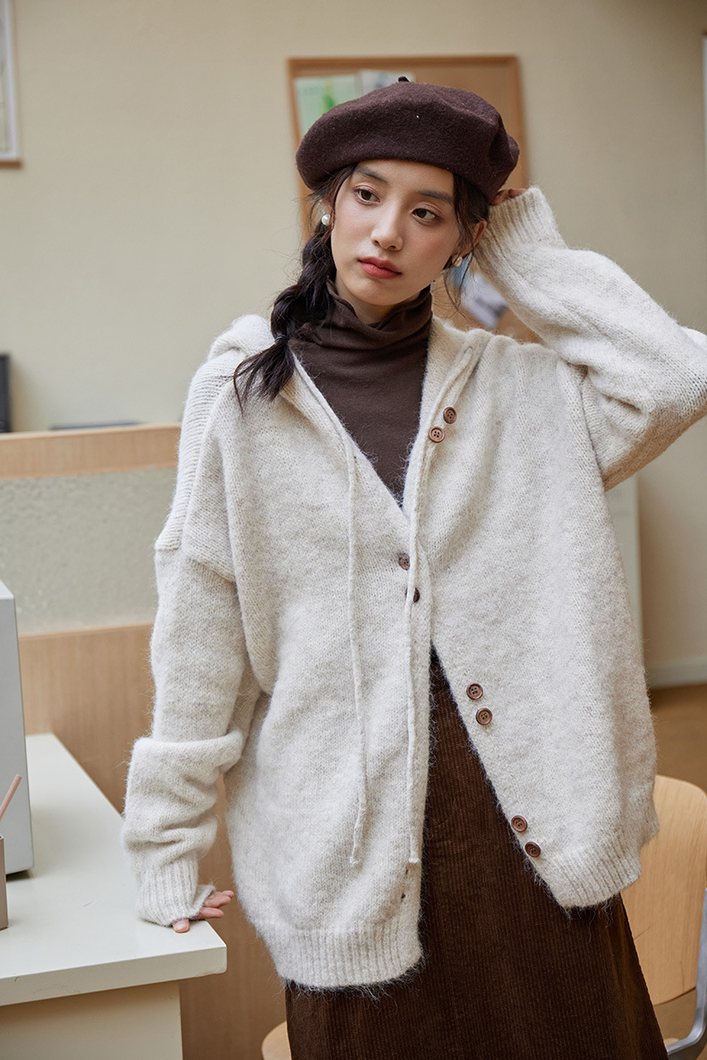 2024 가을과 겨울 새로운 한국 스타일 게으른 스타일 후드 드로우 스트링 카디건 스웨터 여성 일본 스타일 루즈 소프트 왁스 니트 재킷스토어 가기