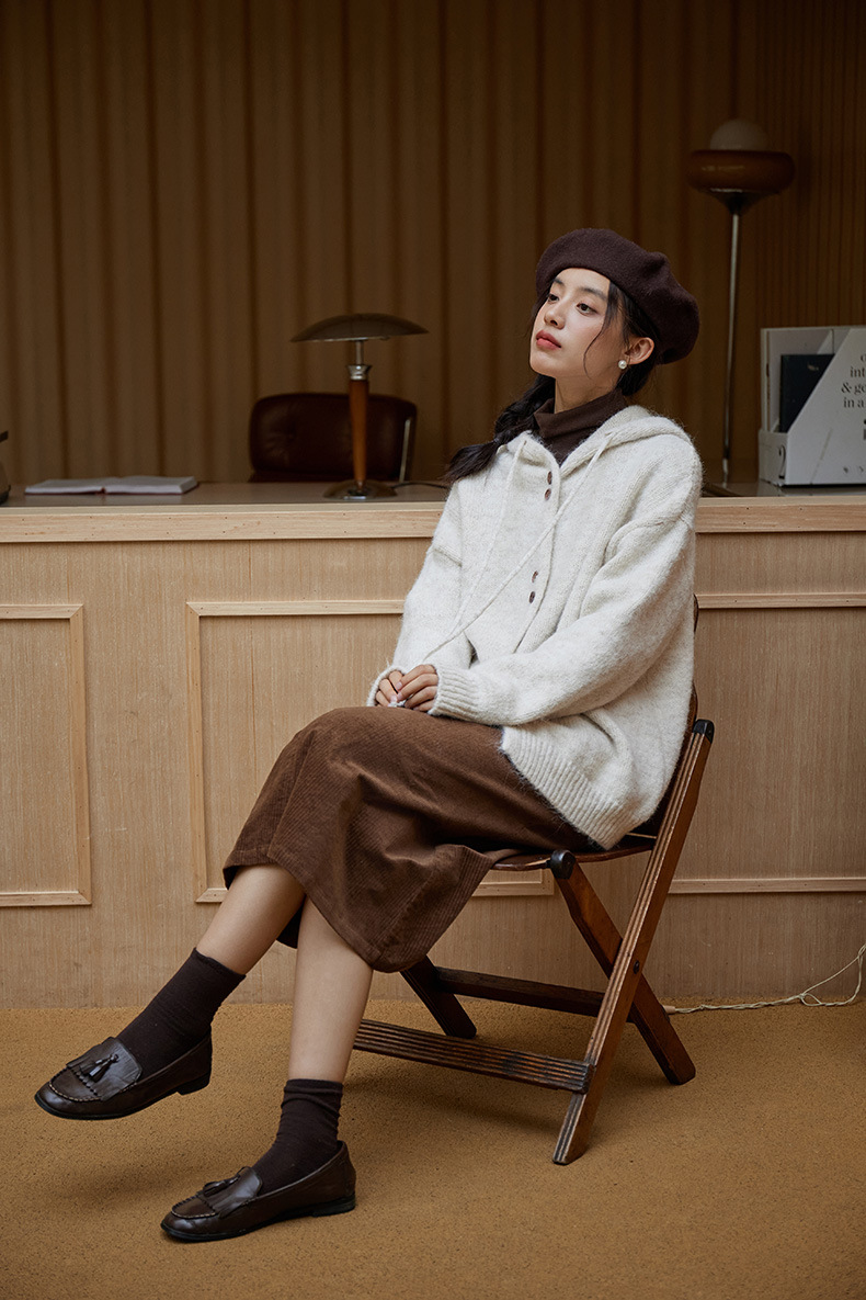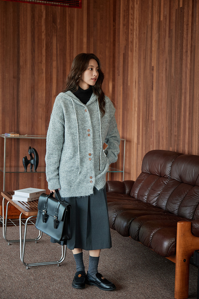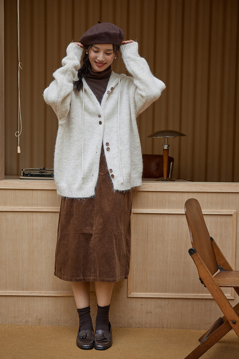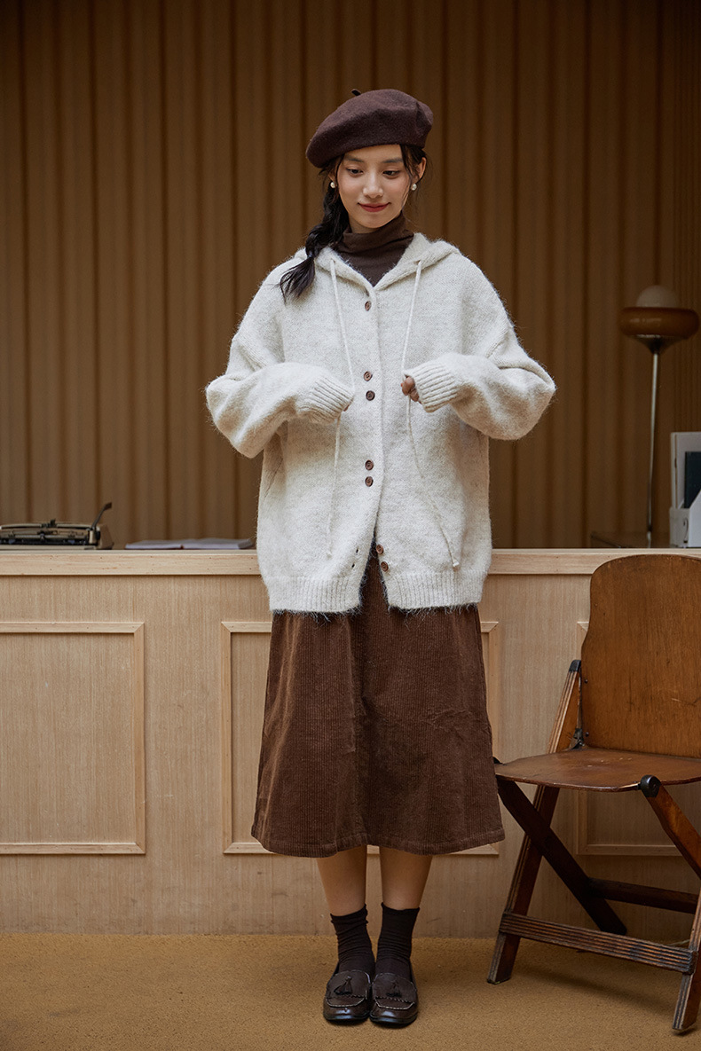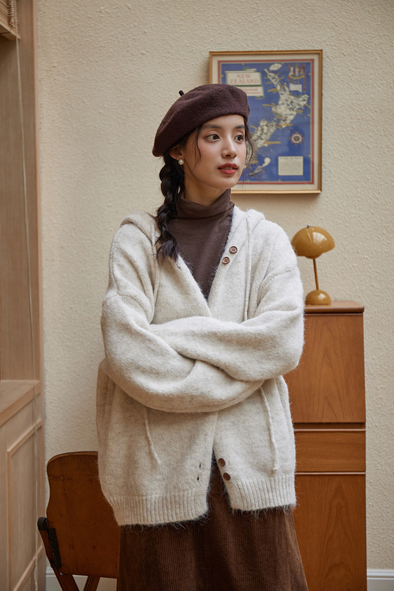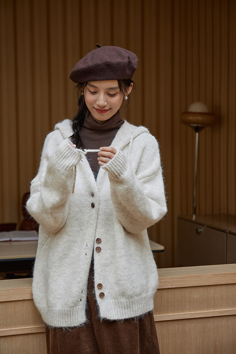 2024 가을과 겨울 새로운 한국 스타일 게으른 스타일 후드 드로우 스트링 카디건 스웨터 여성 일본 스타일 루즈 소프트 왁스 니트 재킷스토어 가기