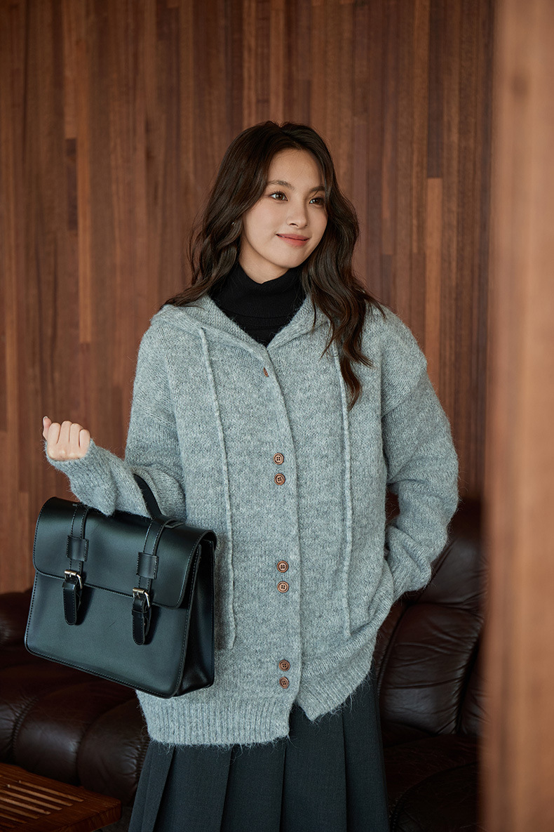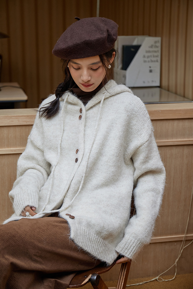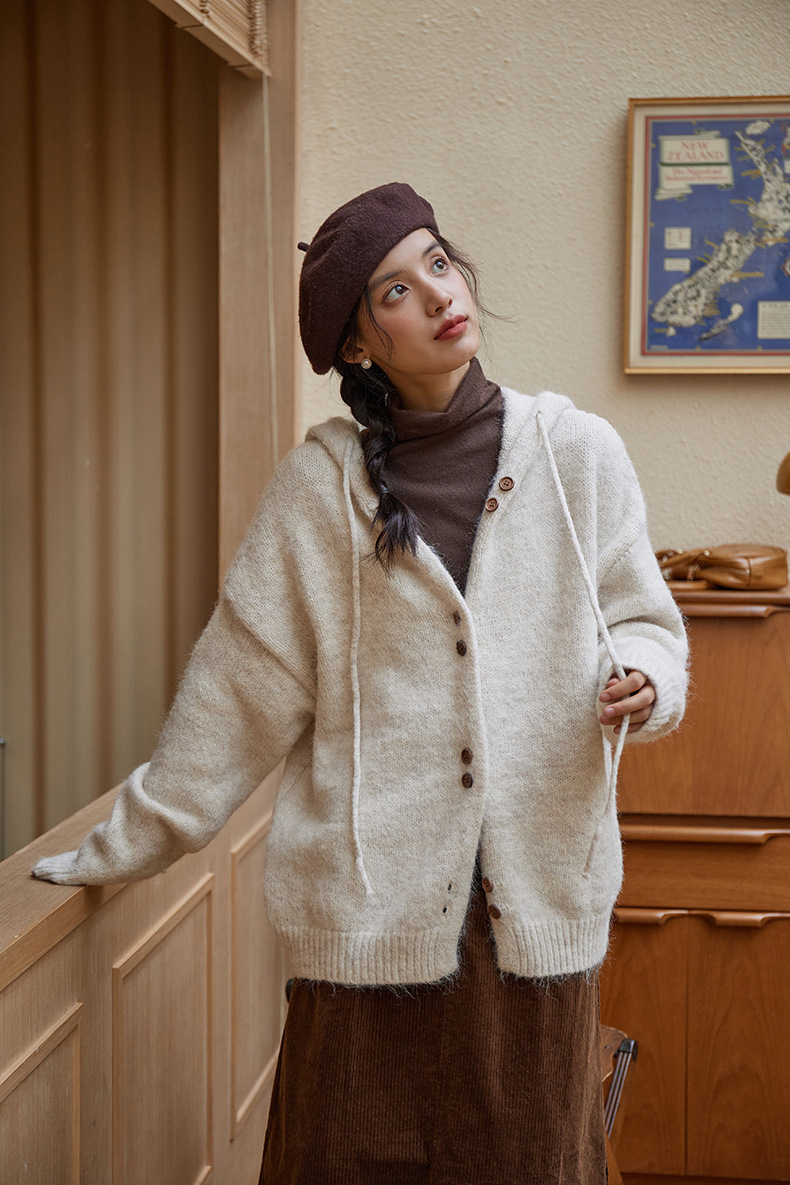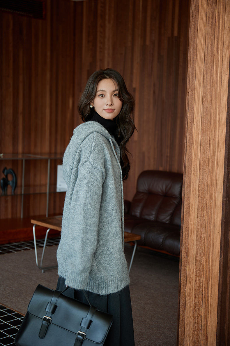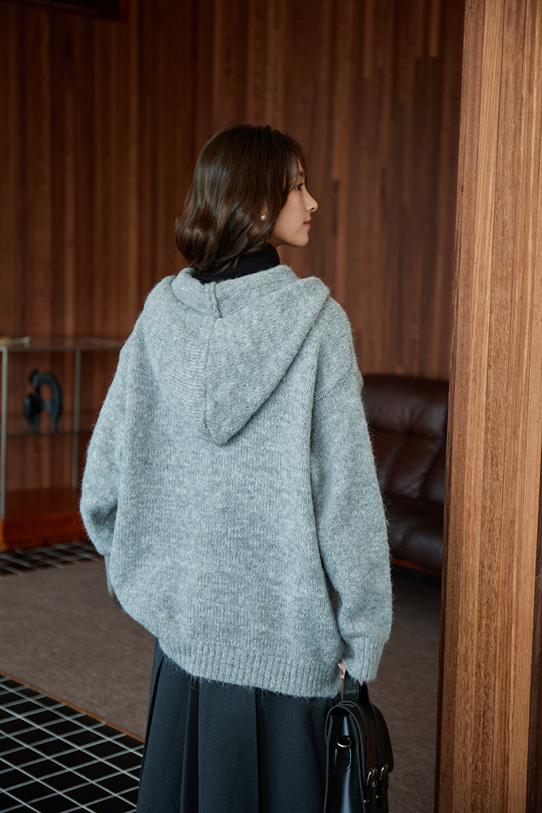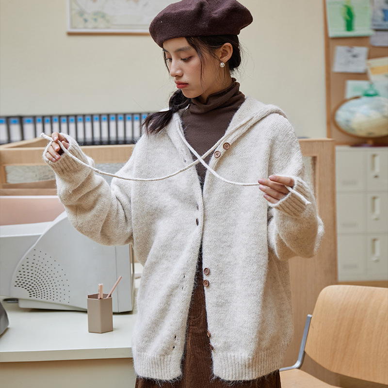 2024 가을과 겨울 새로운 한국 스타일 게으른 스타일 후드 드로우 스트링 카디건 스웨터 여성 일본 스타일 루즈 소프트 왁스 니트 재킷