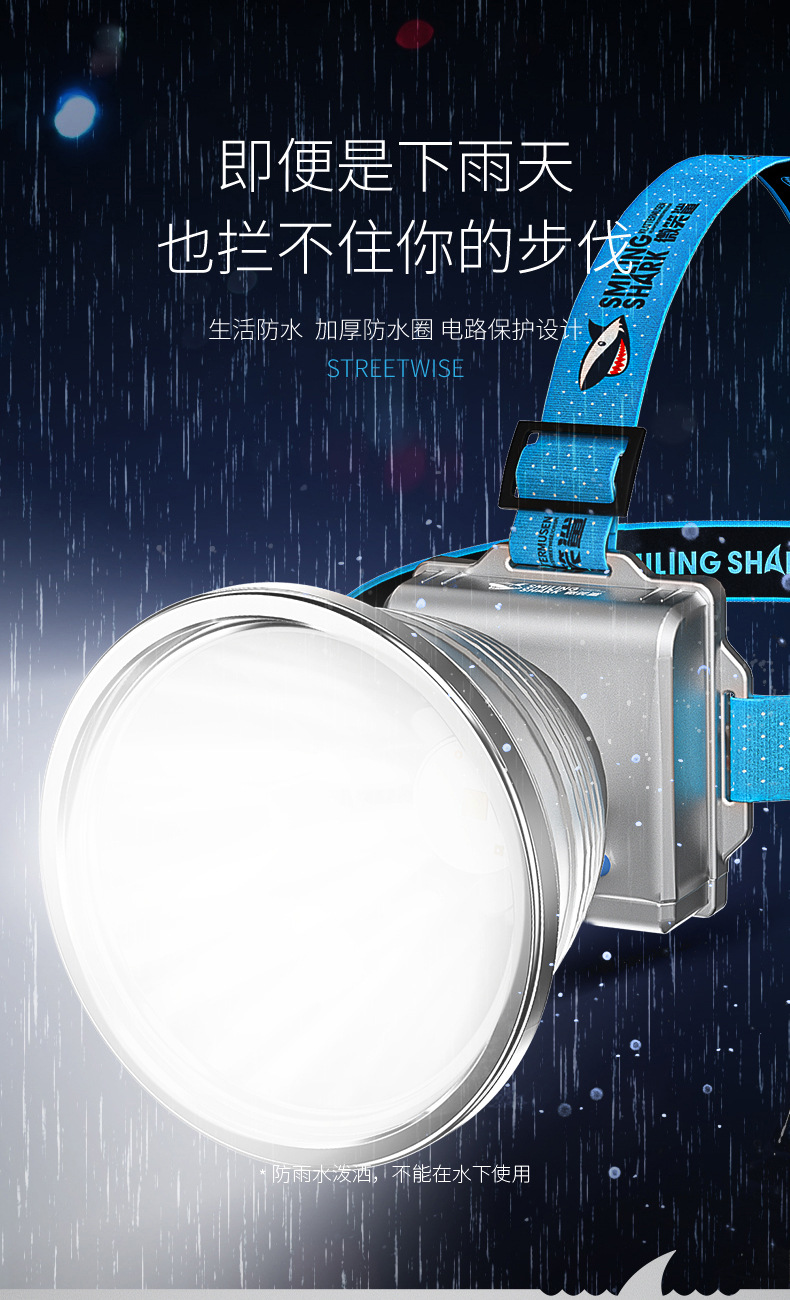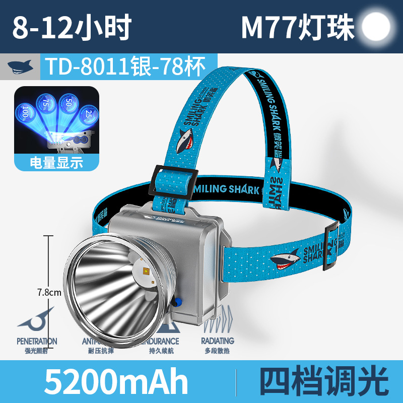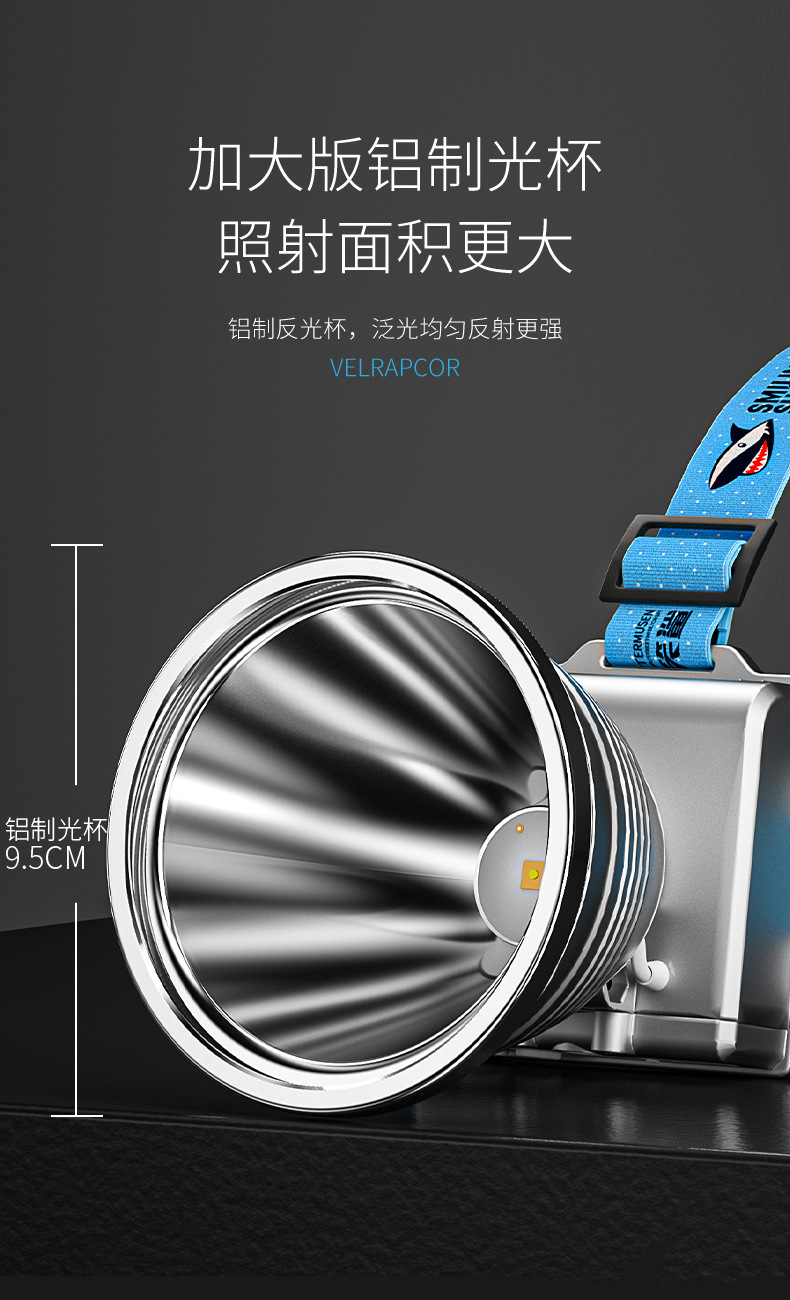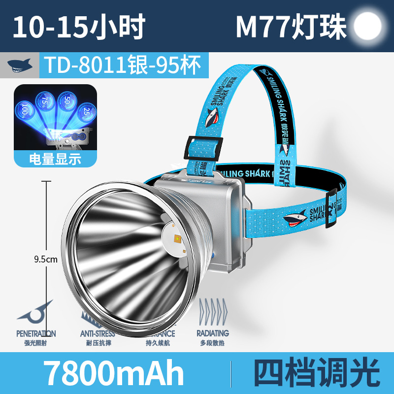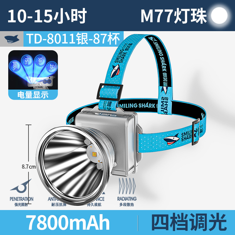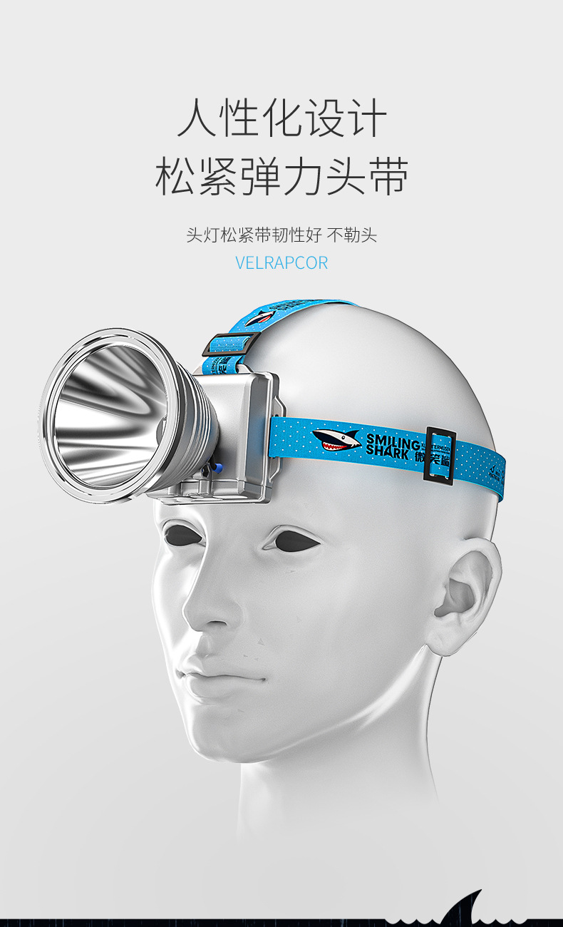 웃는 상어 강한 빛 조명 휴대용 헤드 램프 야외 높은 밝기 알루미늄 라이트 컵 충전 긴 내구성 헤드 램프