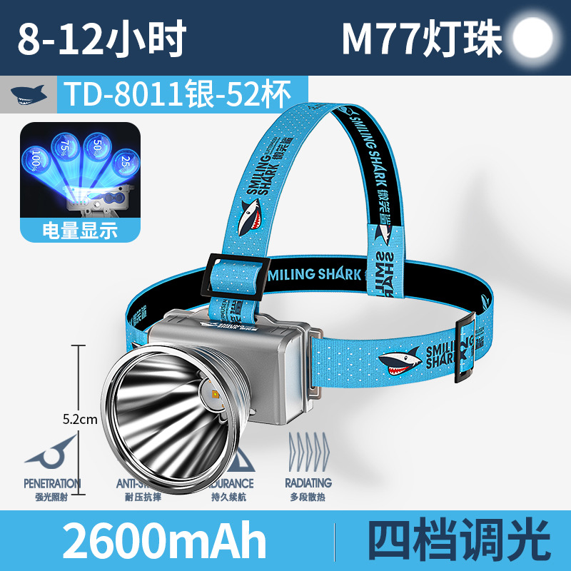 웃는 상어 강한 빛 조명 휴대용 헤드 램프 야외 높은 밝기 알루미늄 라이트 컵 충전 긴 내구성 헤드 램프스토어 가기