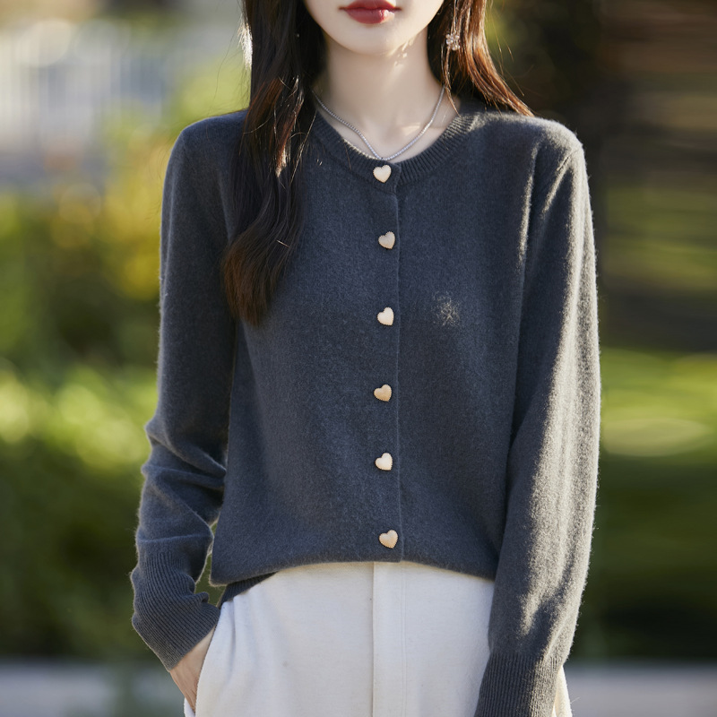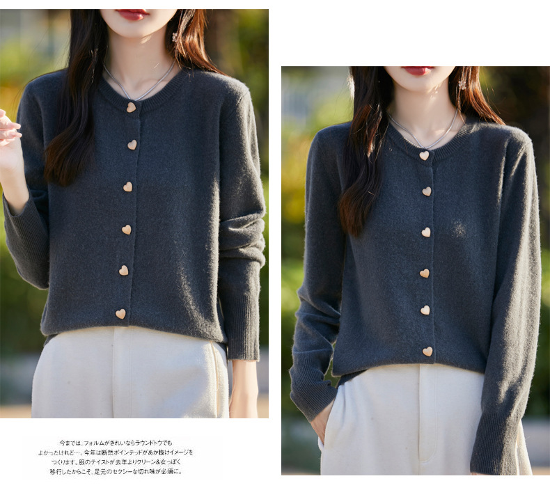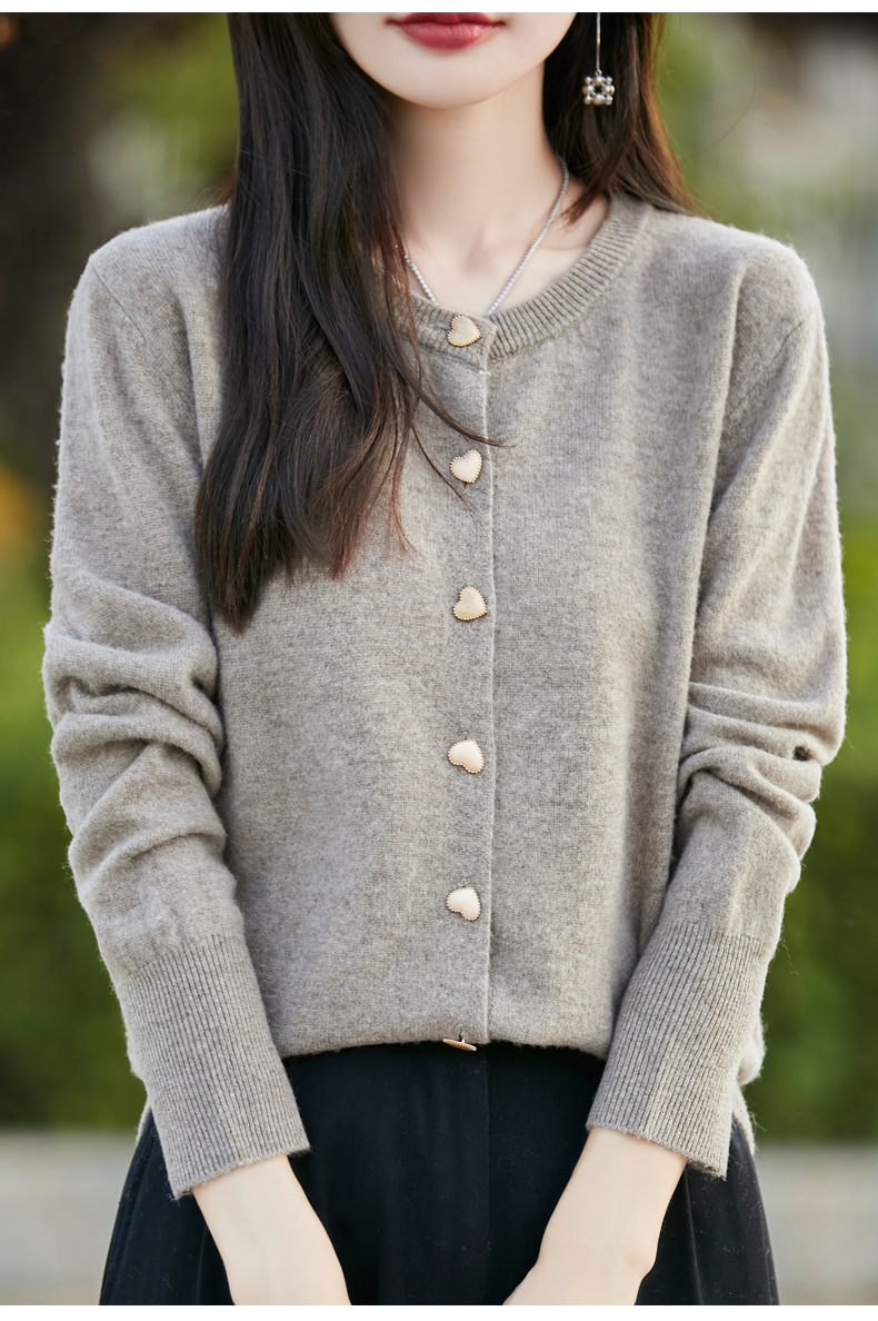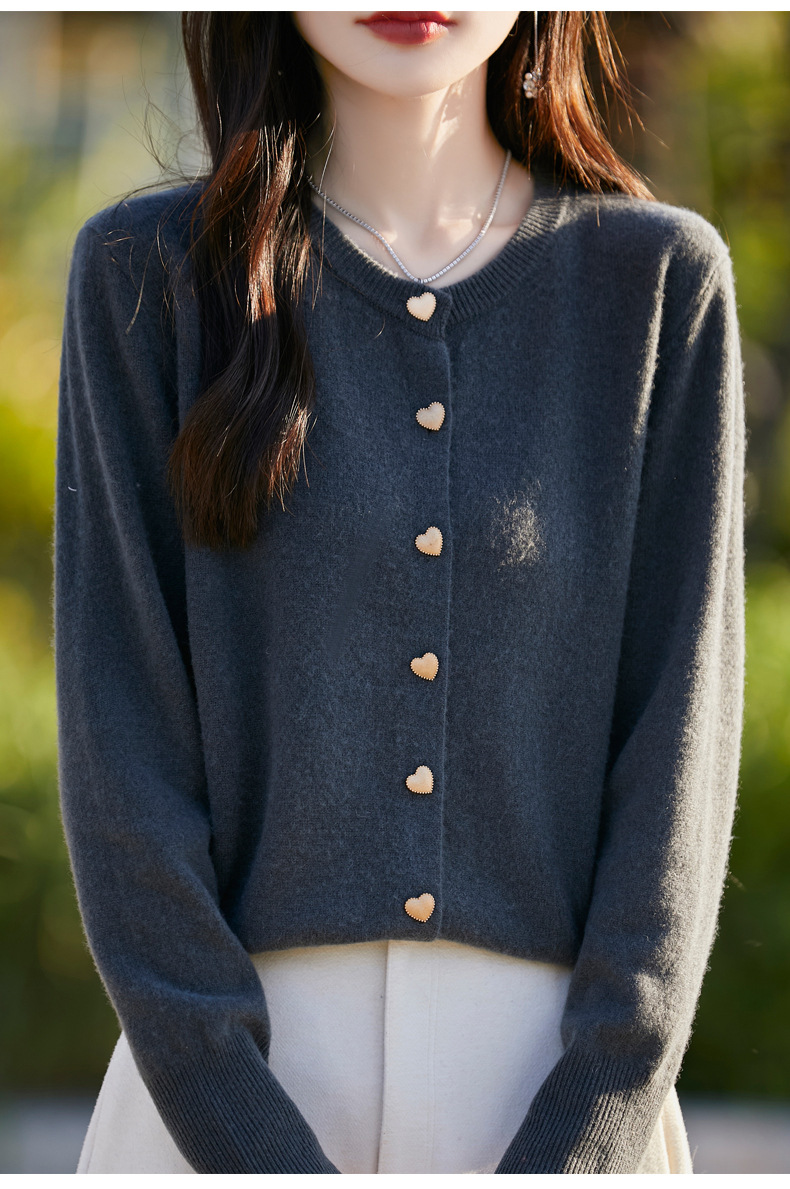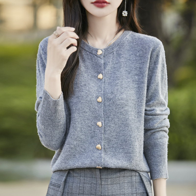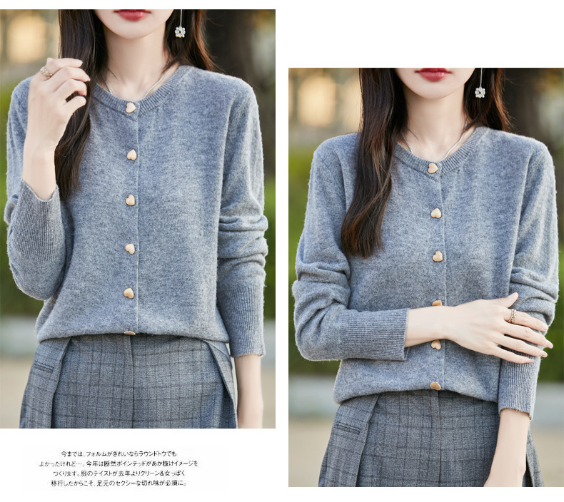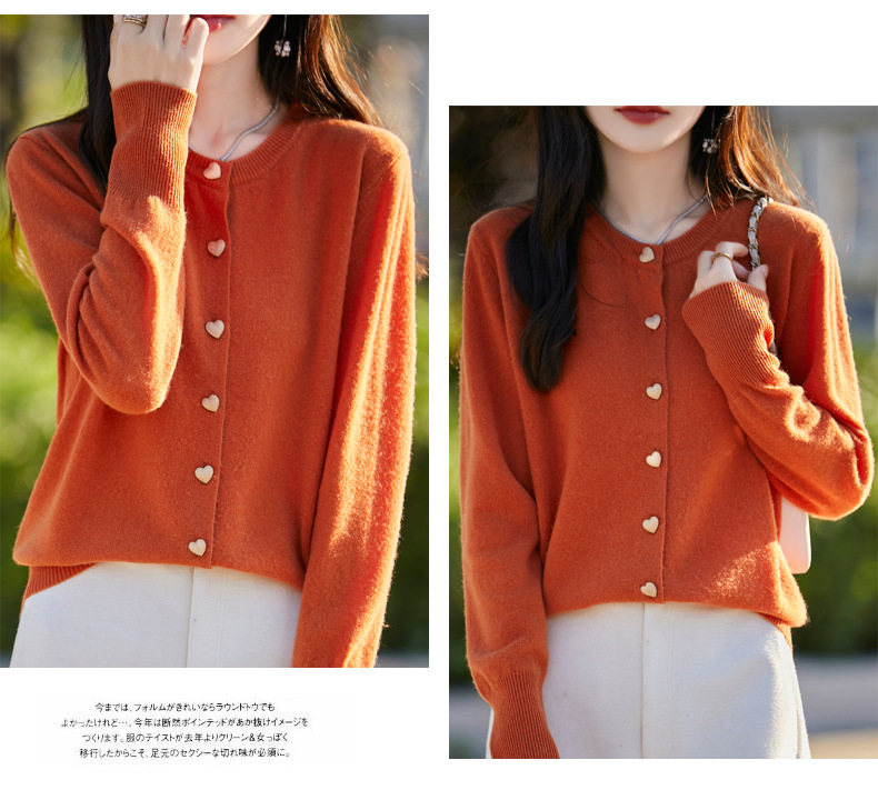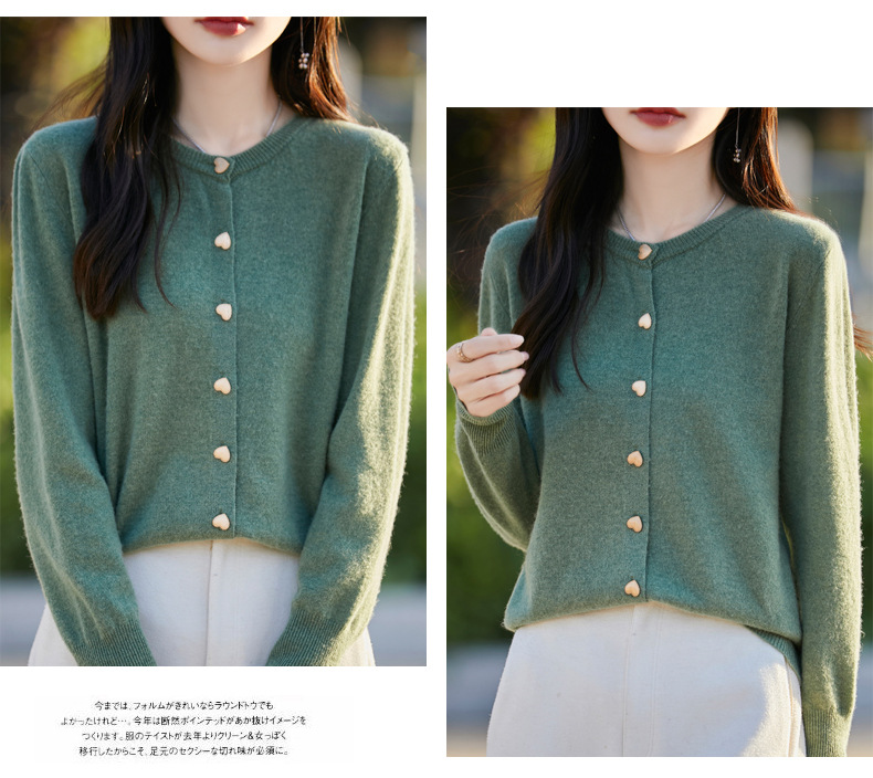하트 모양의 둥근 목 카디건 긴 소매 니트 여성용 짧은 코트 느슨한 외부 스웨터 가을과 겨울 새로운 탑베이스 셔츠 배치