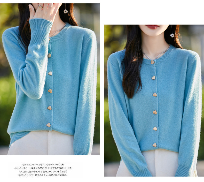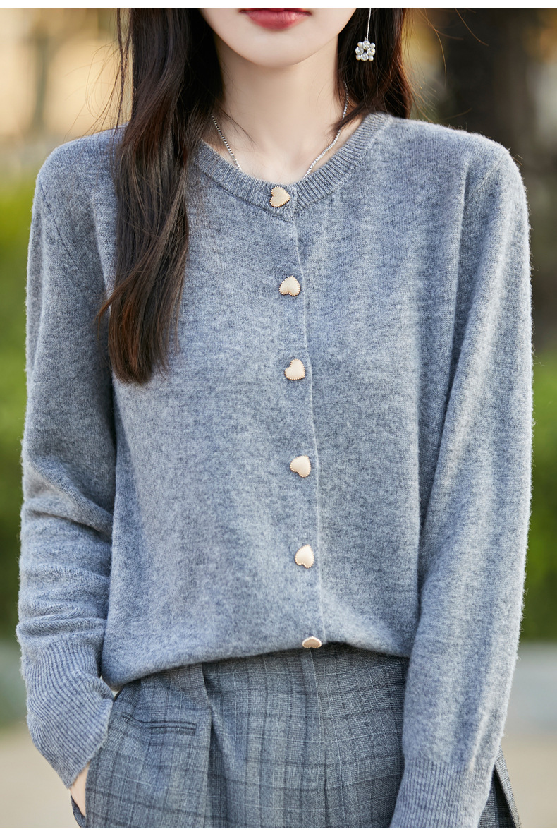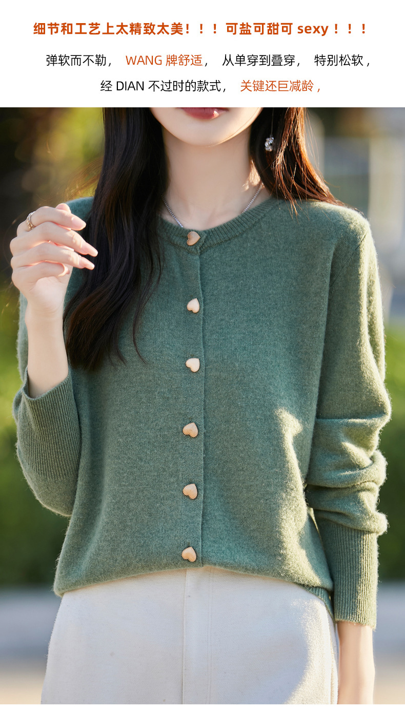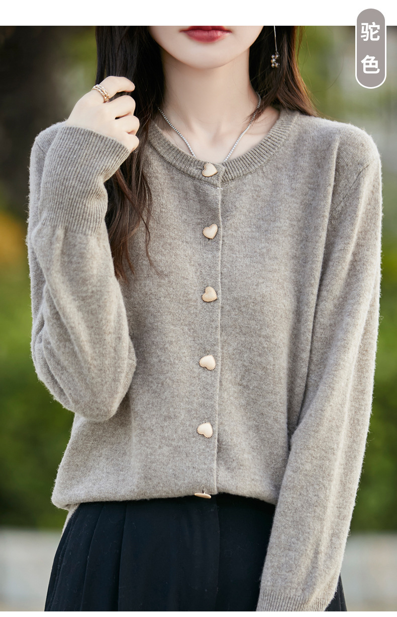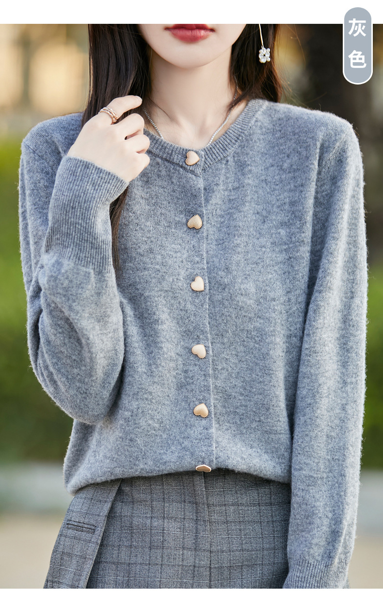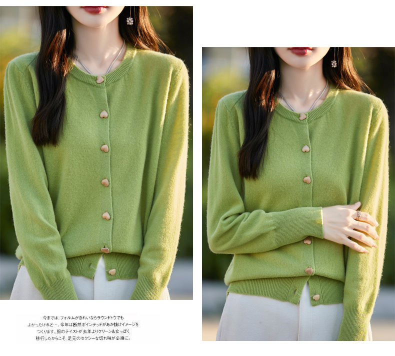 하트 모양의 둥근 목 카디건 긴 소매 니트 여성용 짧은 코트 느슨한 외부 스웨터 가을과 겨울 새로운 탑베이스 셔츠 배치