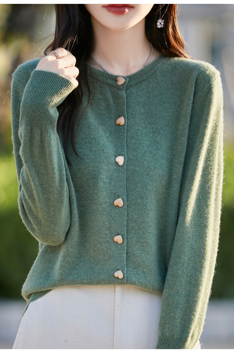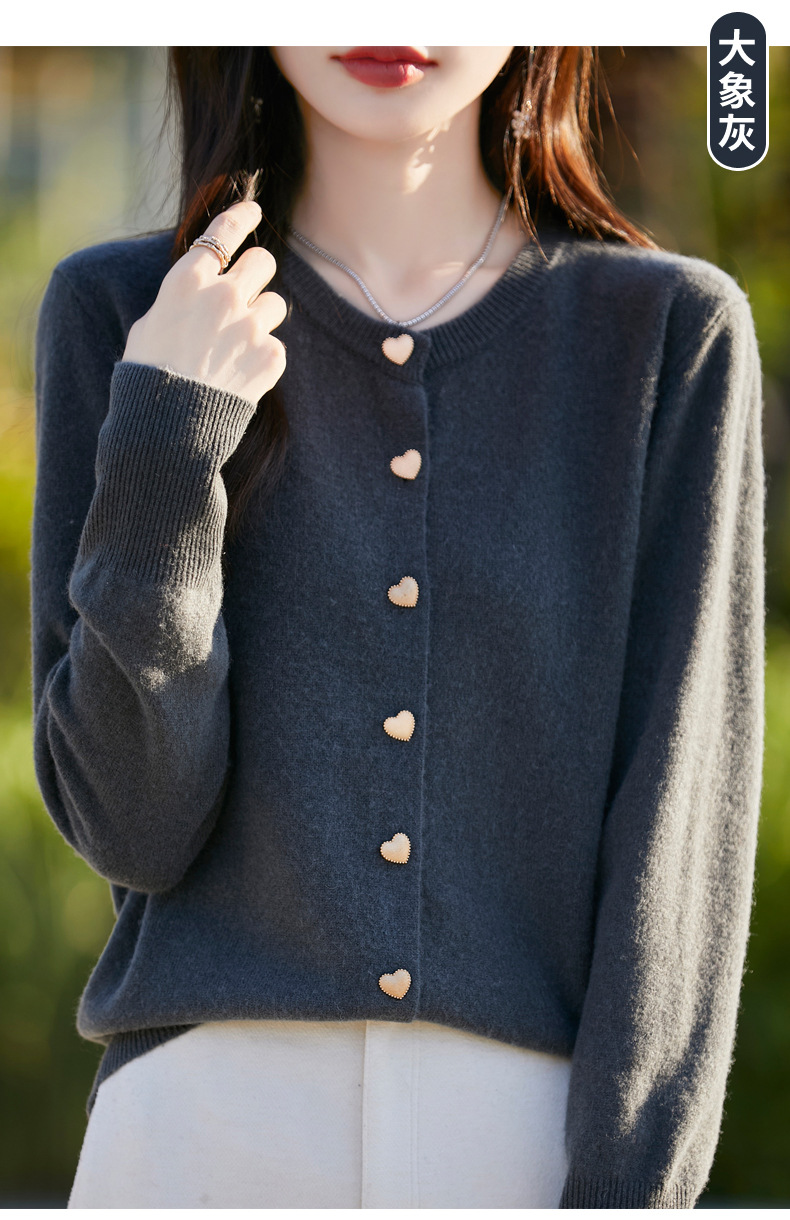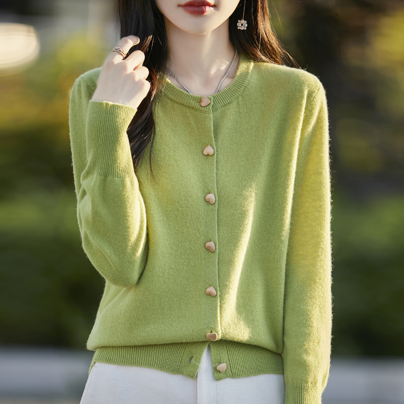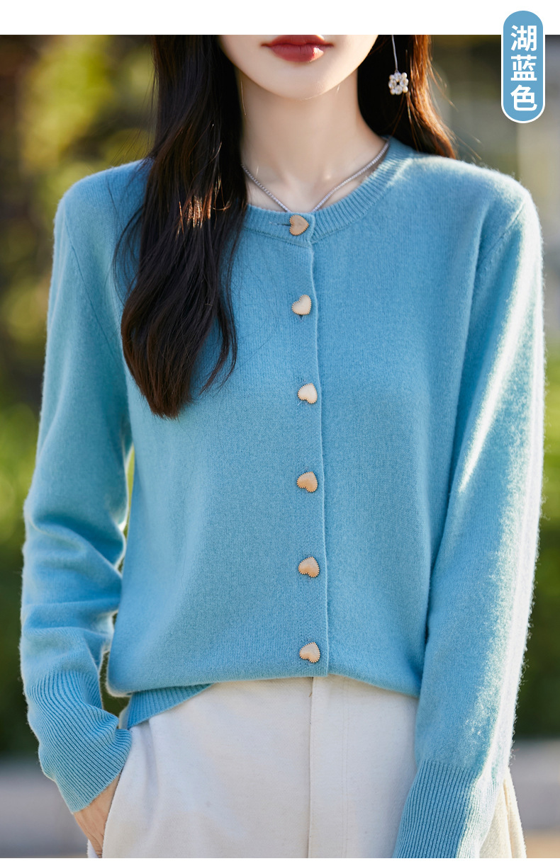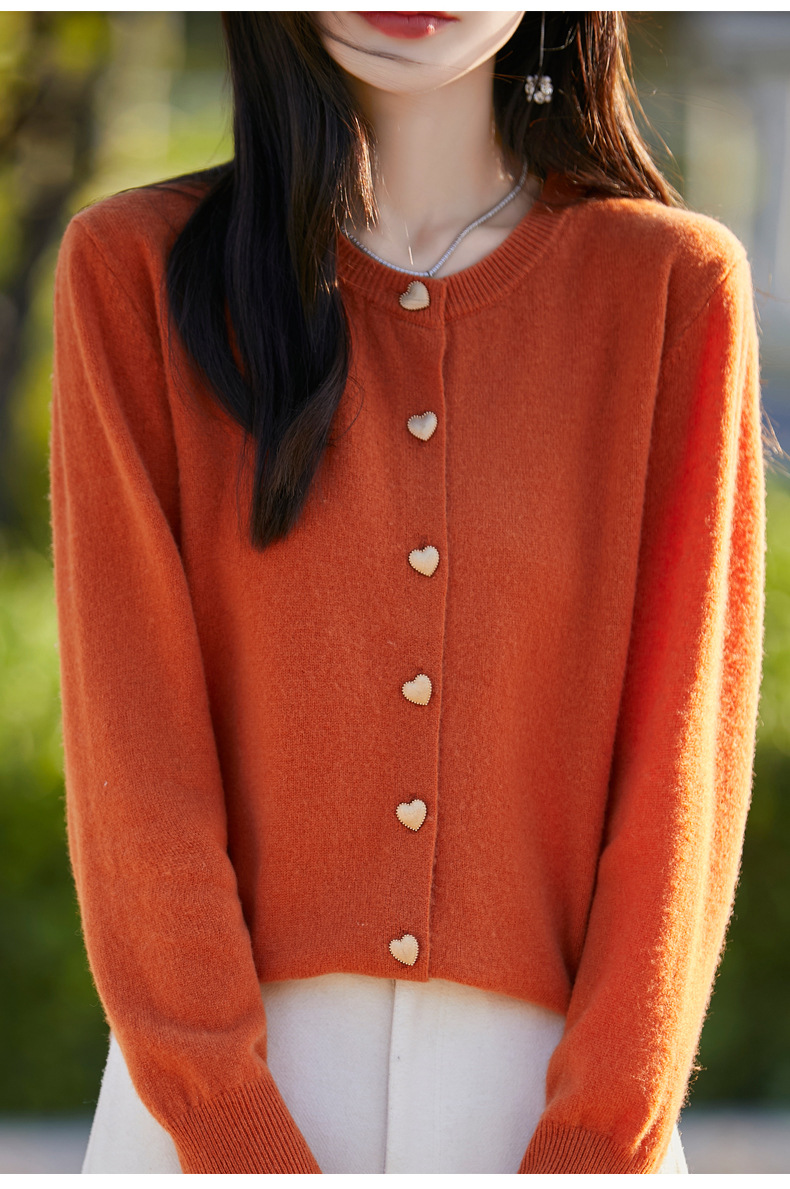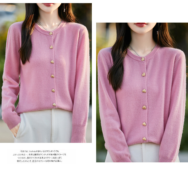하트 모양의 둥근 목 카디건 긴 소매 니트 여성용 짧은 코트 느슨한 외부 스웨터 가을과 겨울 새로운 탑베이스 셔츠 배치