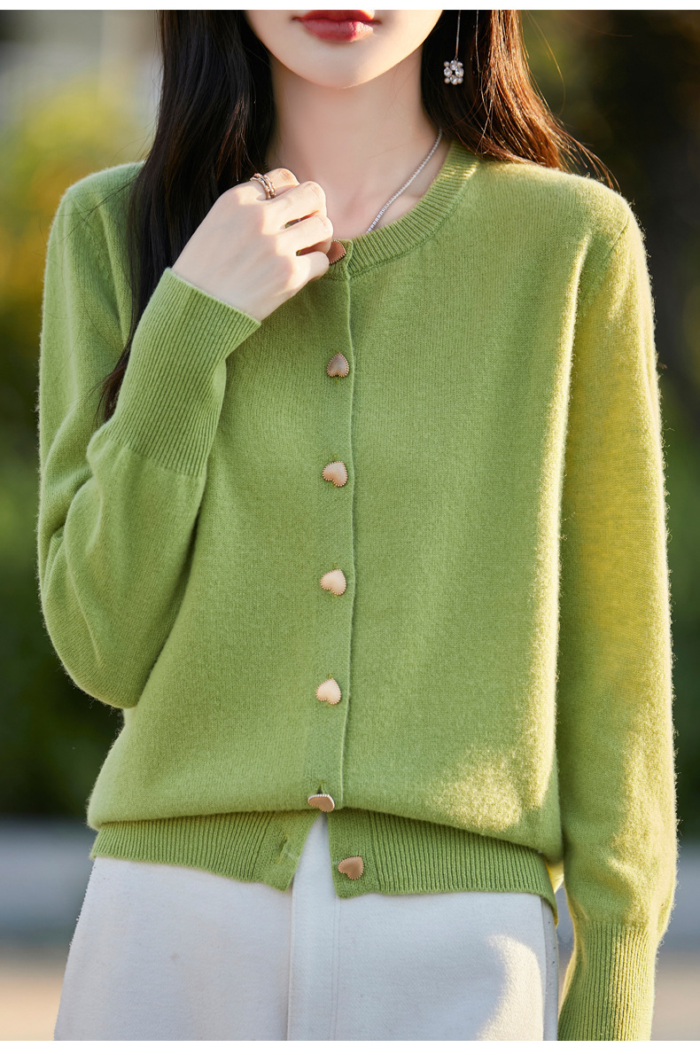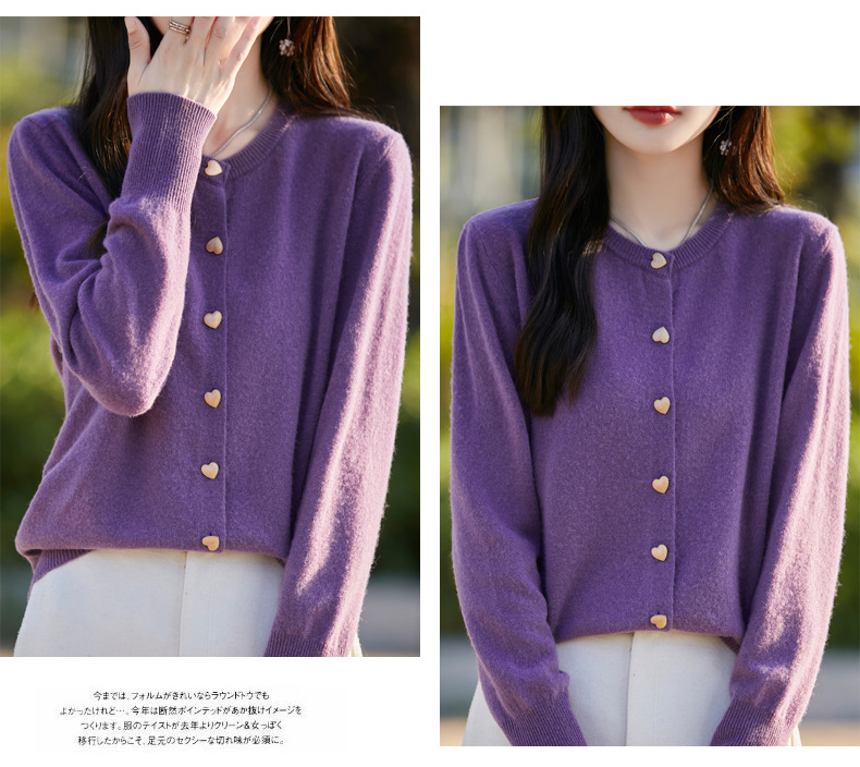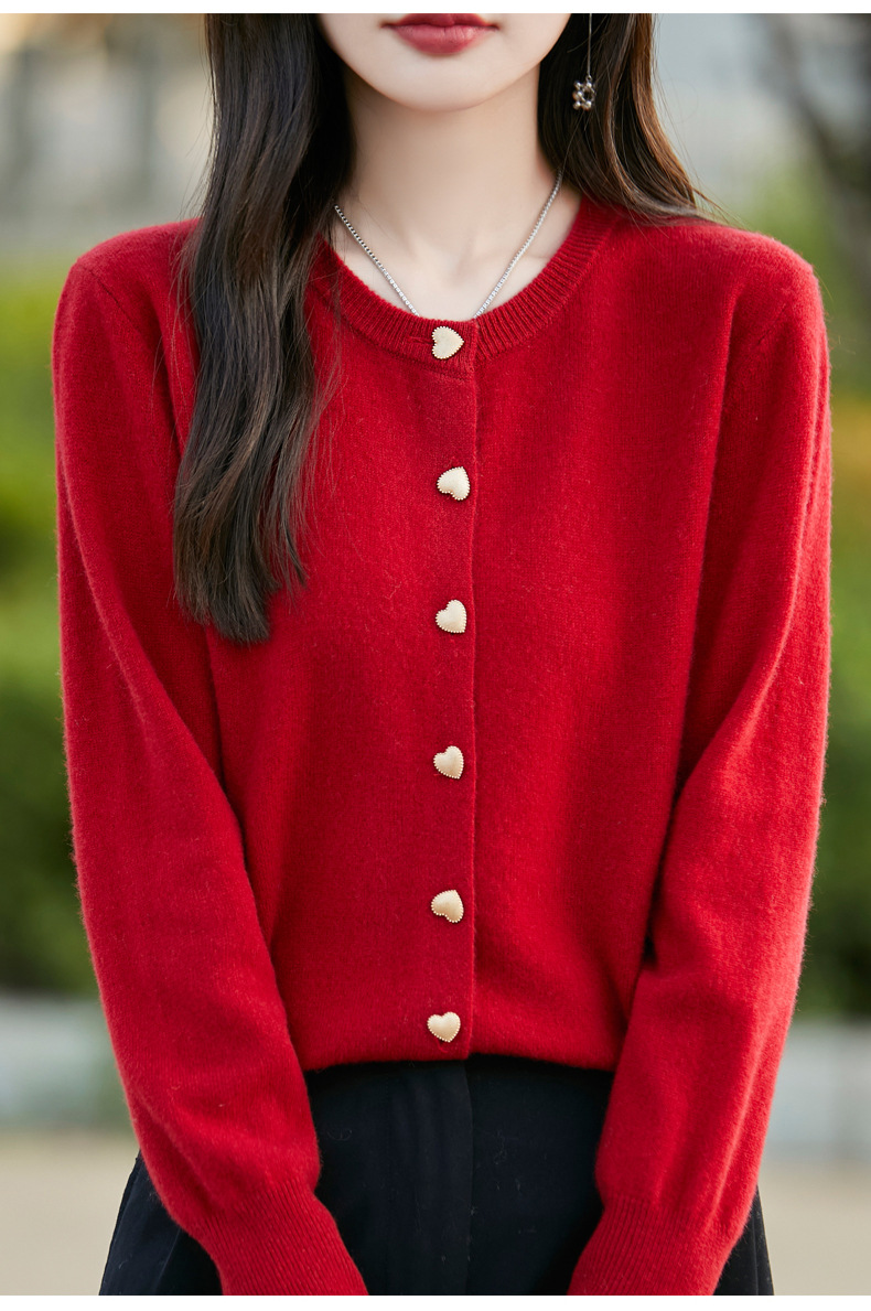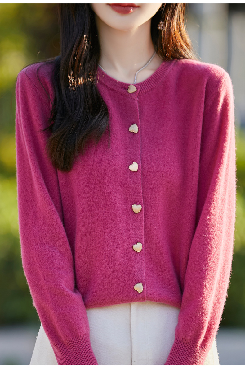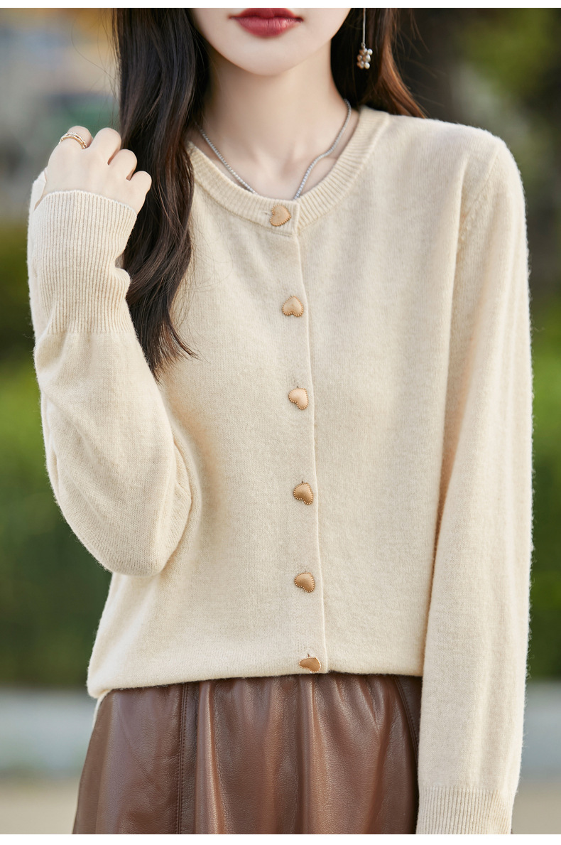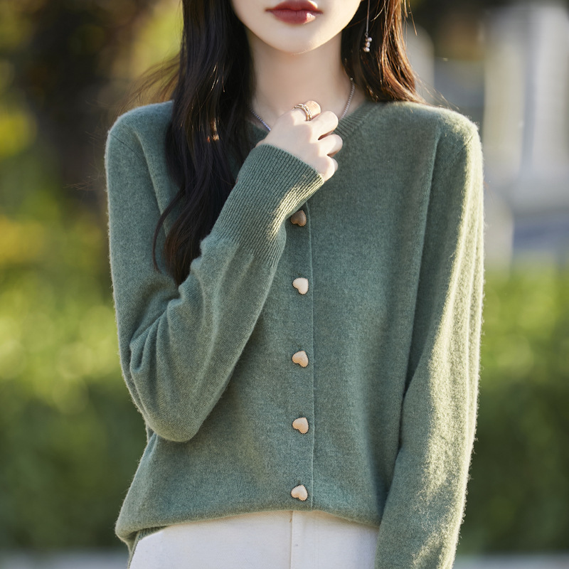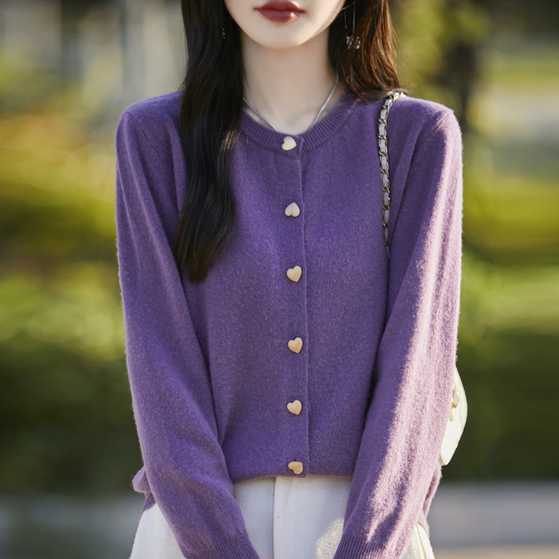 하트 모양의 둥근 목 카디건 긴 소매 니트 여성용 짧은 코트 느슨한 외부 스웨터 가을과 겨울 새로운 탑베이스 셔츠 배치
