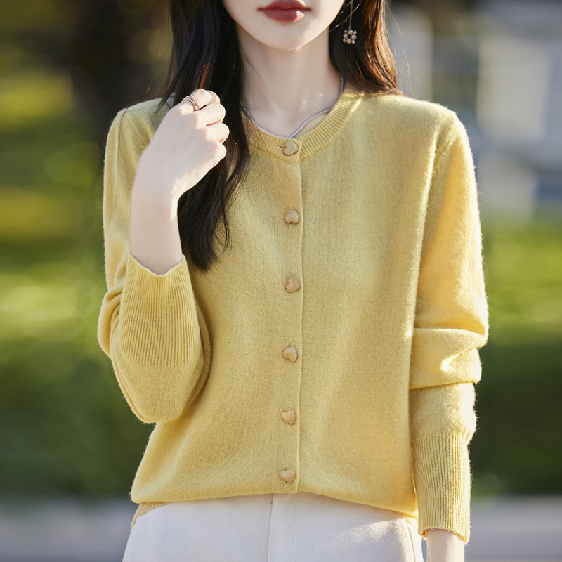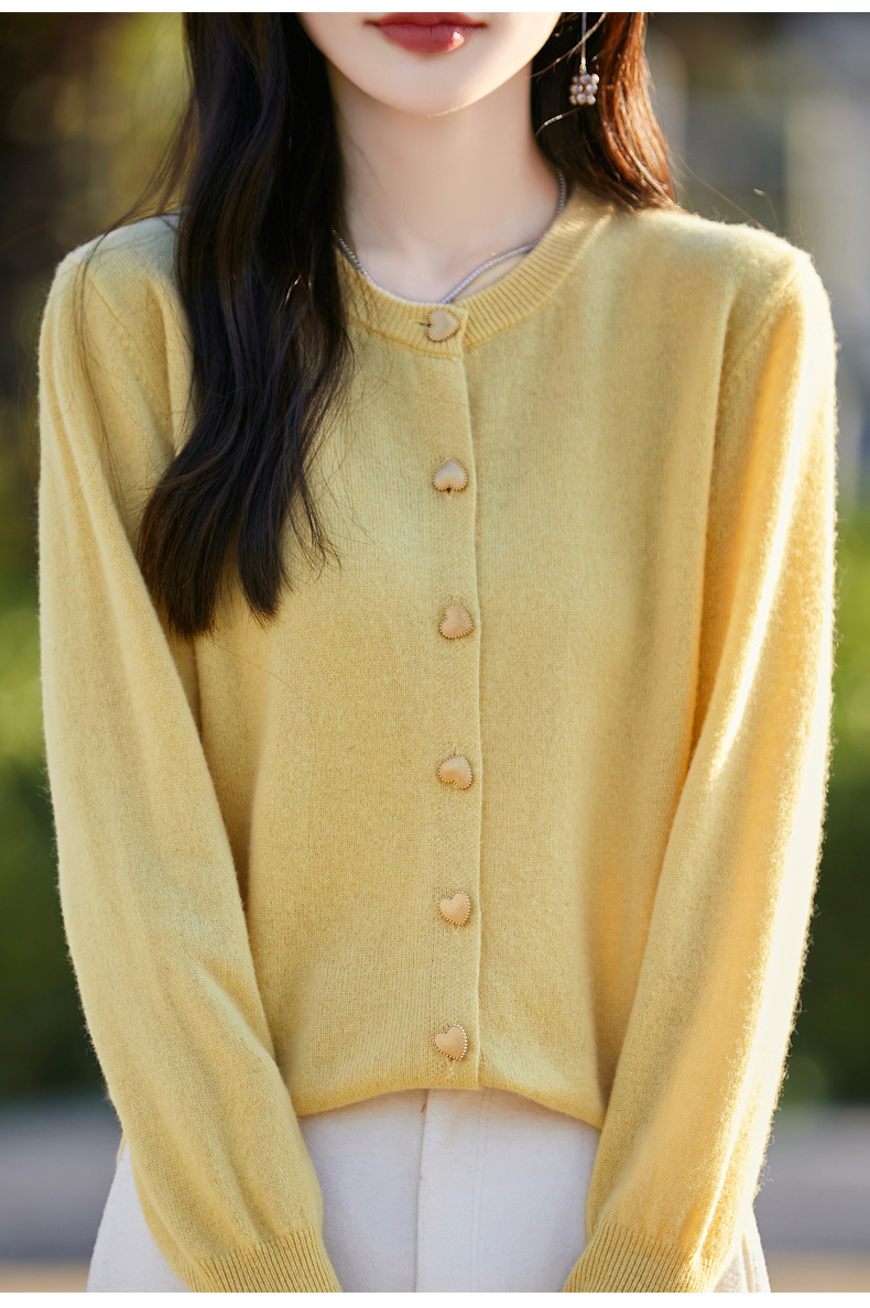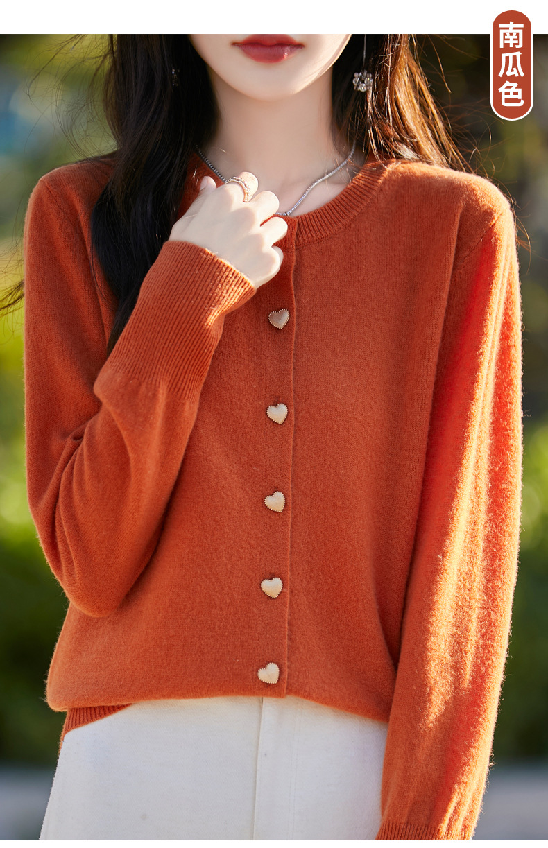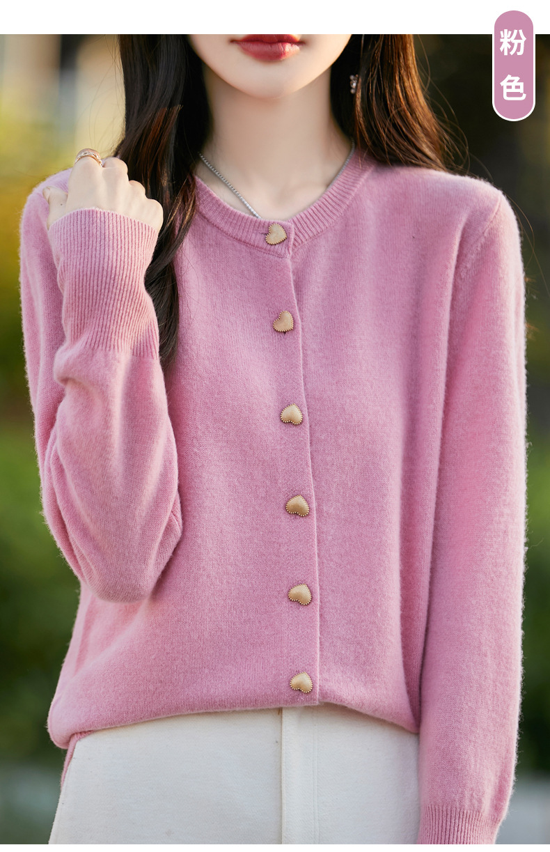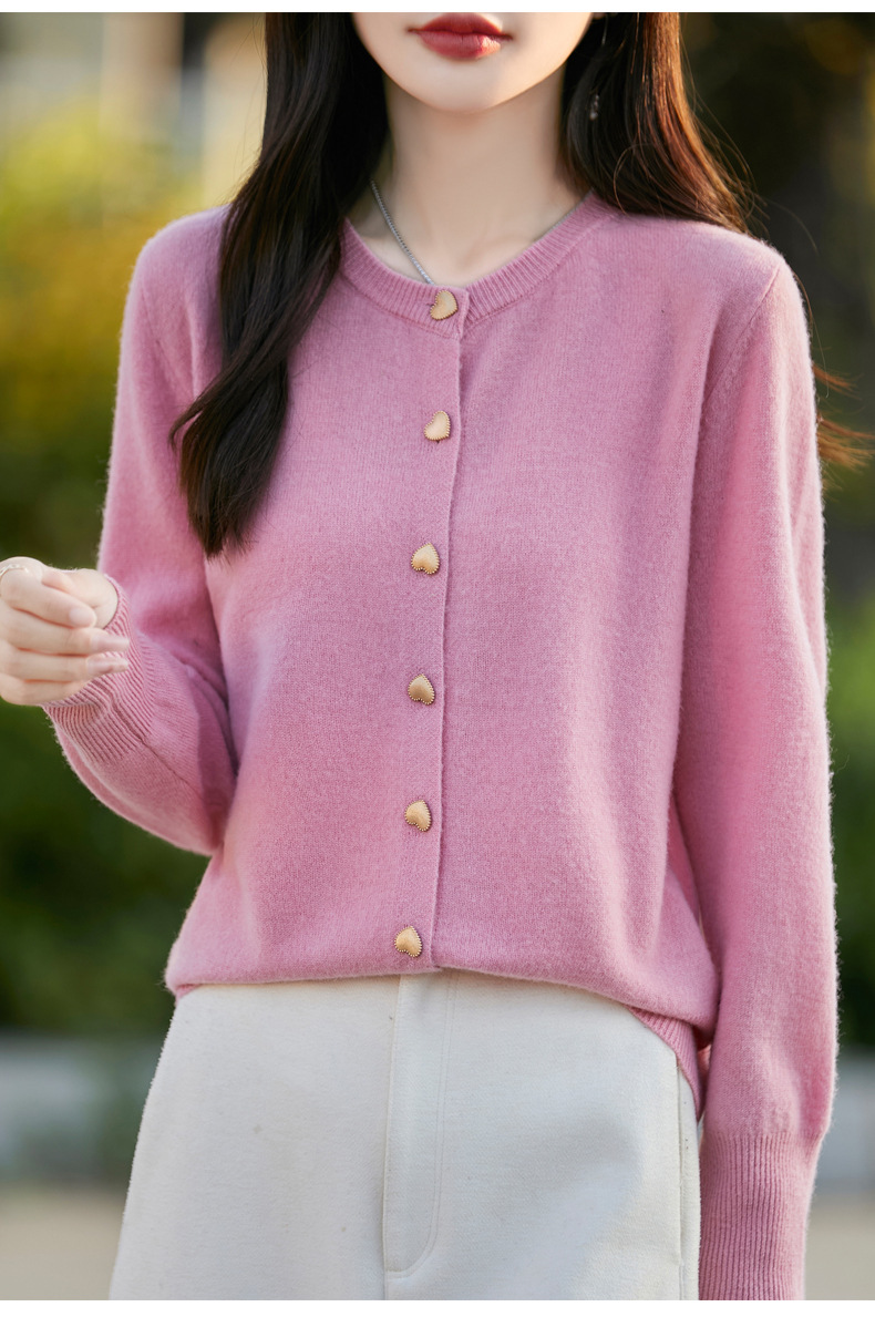 하트 모양의 둥근 목 카디건 긴 소매 니트 여성용 짧은 코트 느슨한 외부 스웨터 가을과 겨울 새로운 탑베이스 셔츠 배치