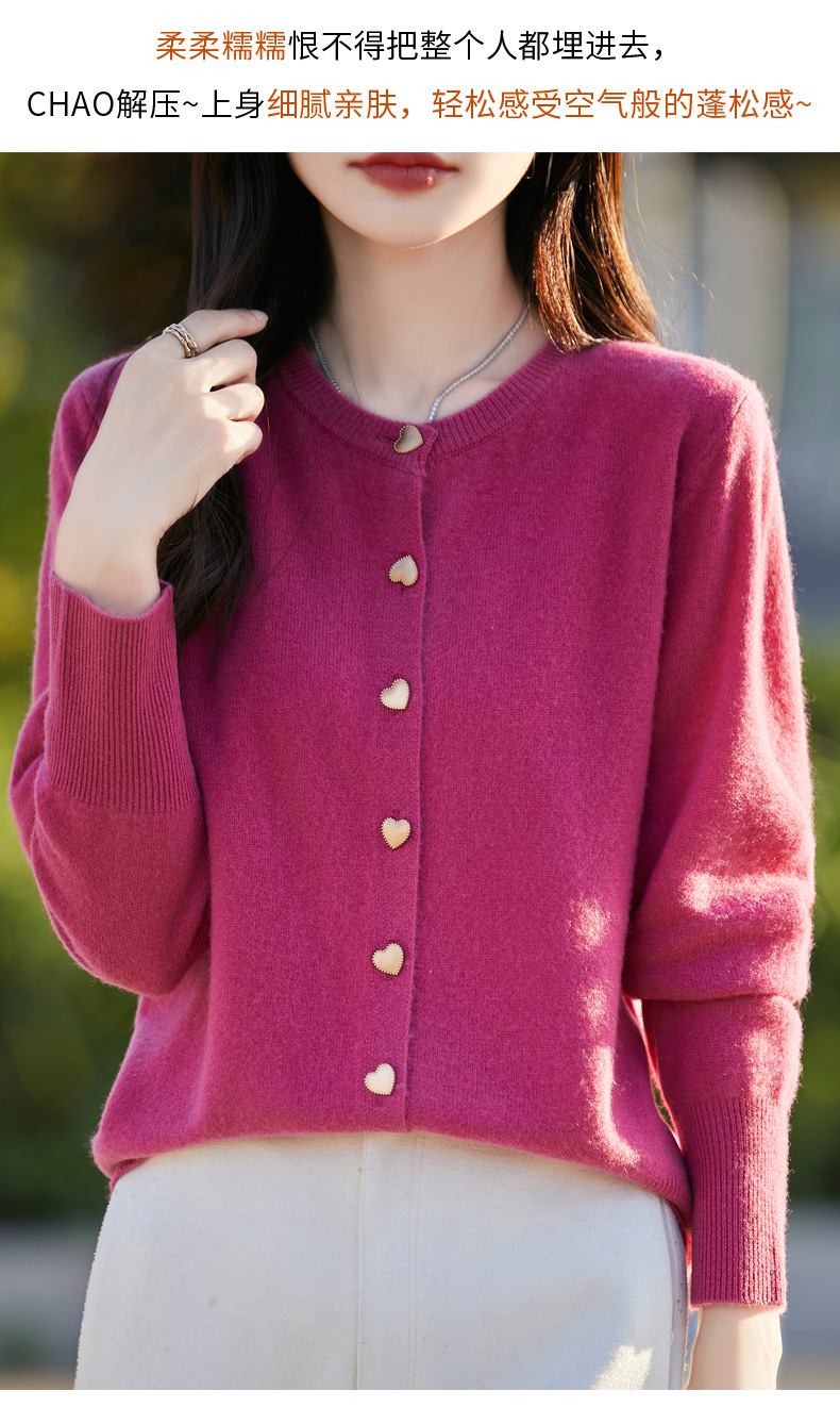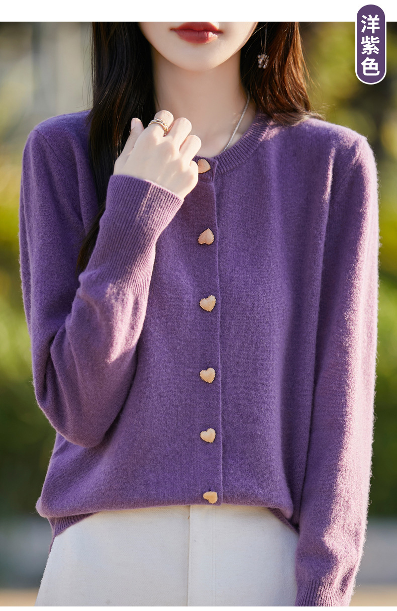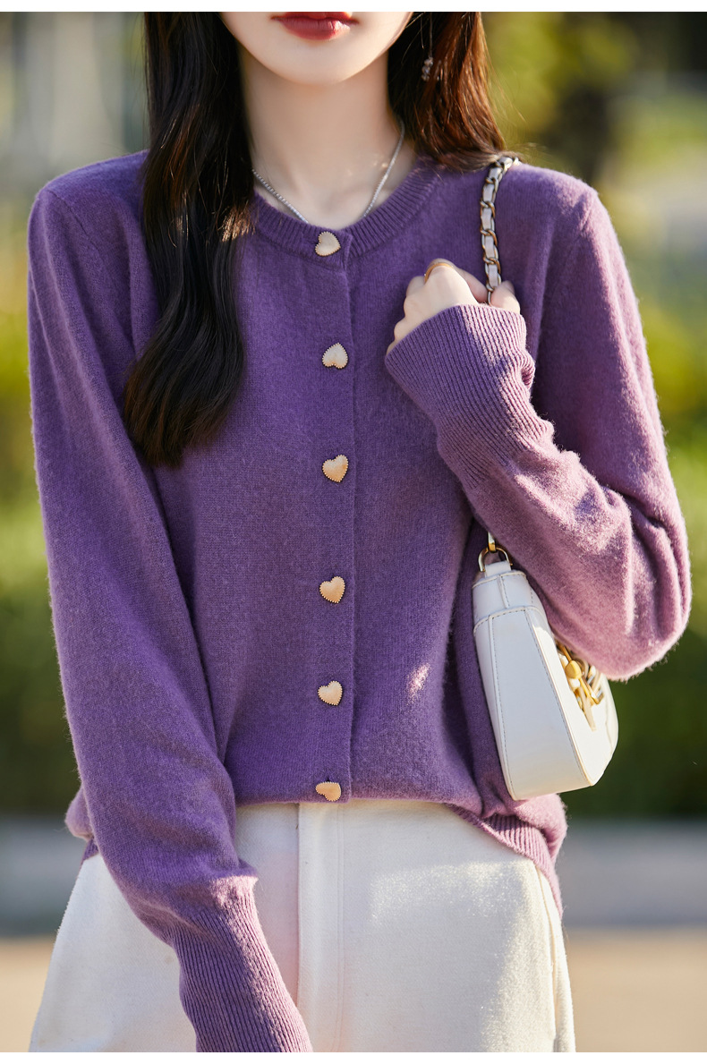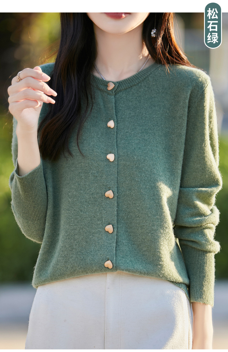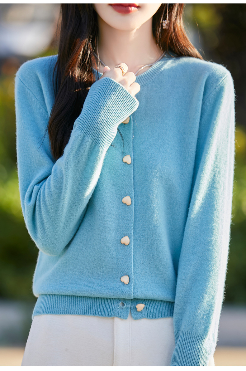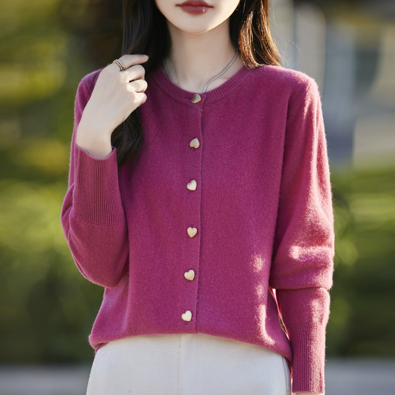 하트 모양의 둥근 목 카디건 긴 소매 니트 여성용 짧은 코트 느슨한 외부 스웨터 가을과 겨울 새로운 탑베이스 셔츠 배치