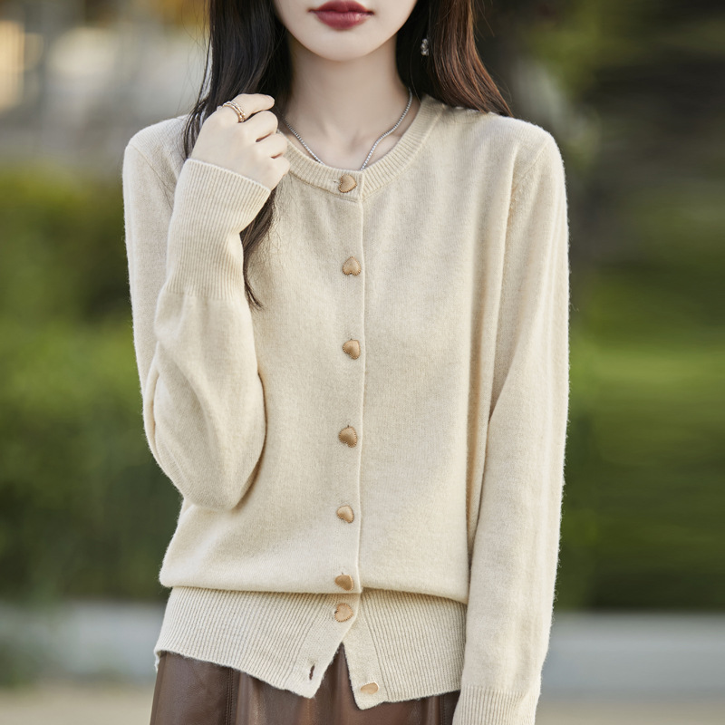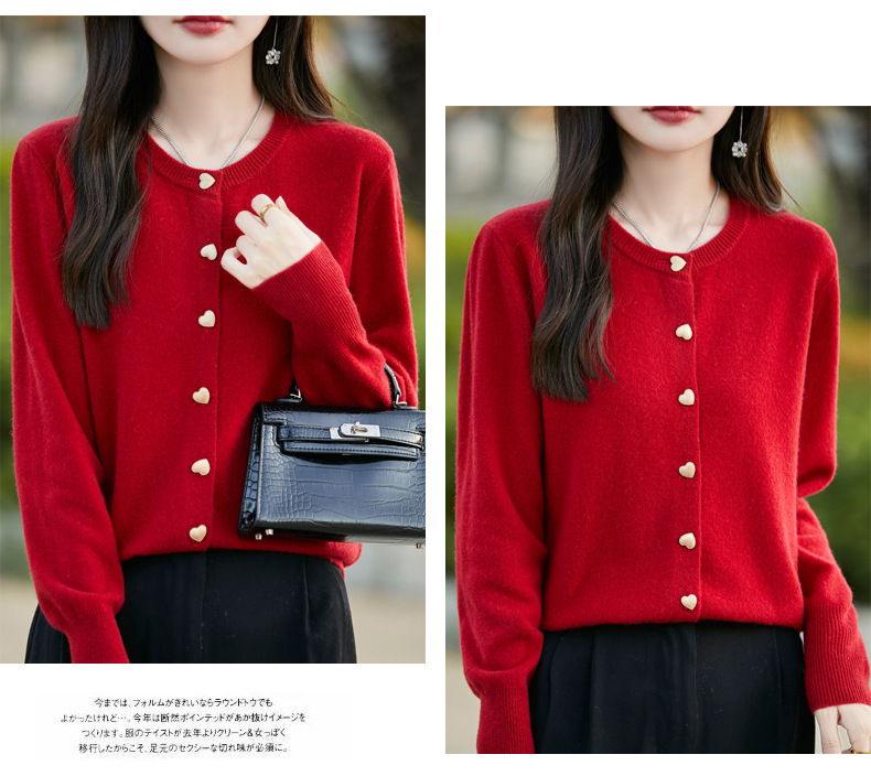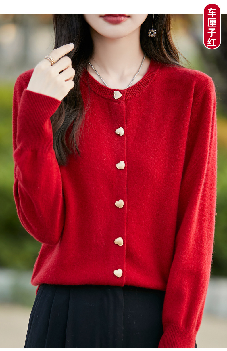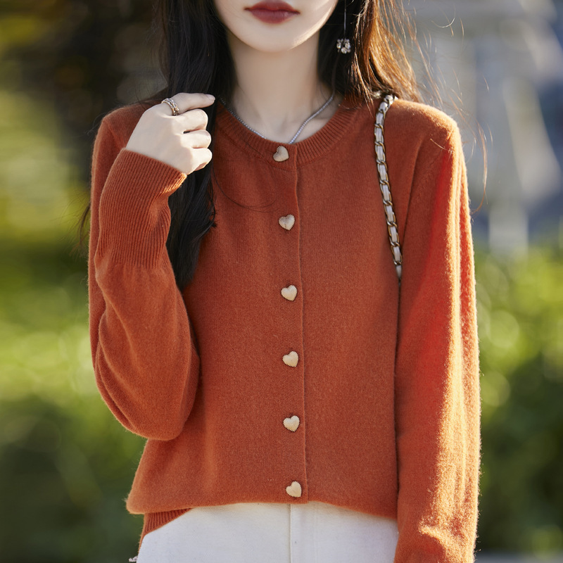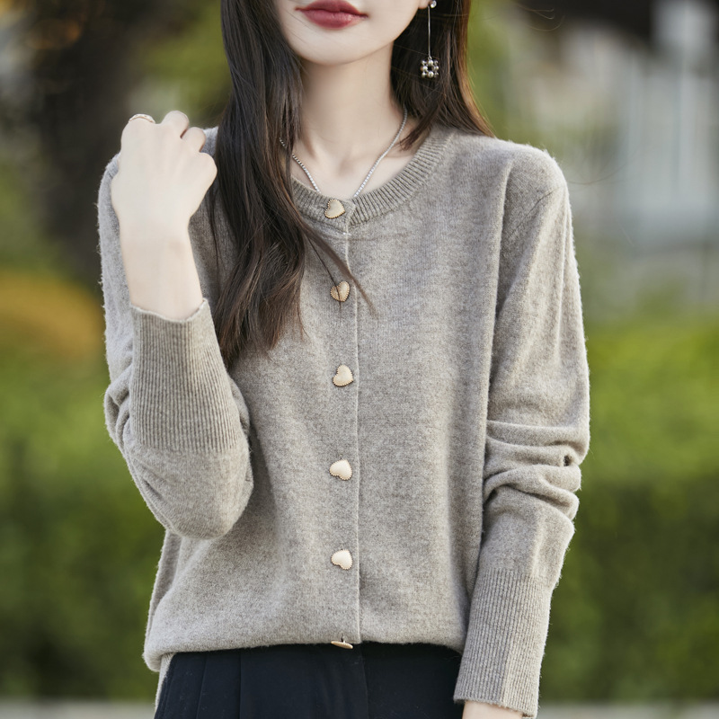 하트 모양의 둥근 목 카디건 긴 소매 니트 여성용 짧은 코트 느슨한 외부 스웨터 가을과 겨울 새로운 탑베이스 셔츠 배치스토어 가기
