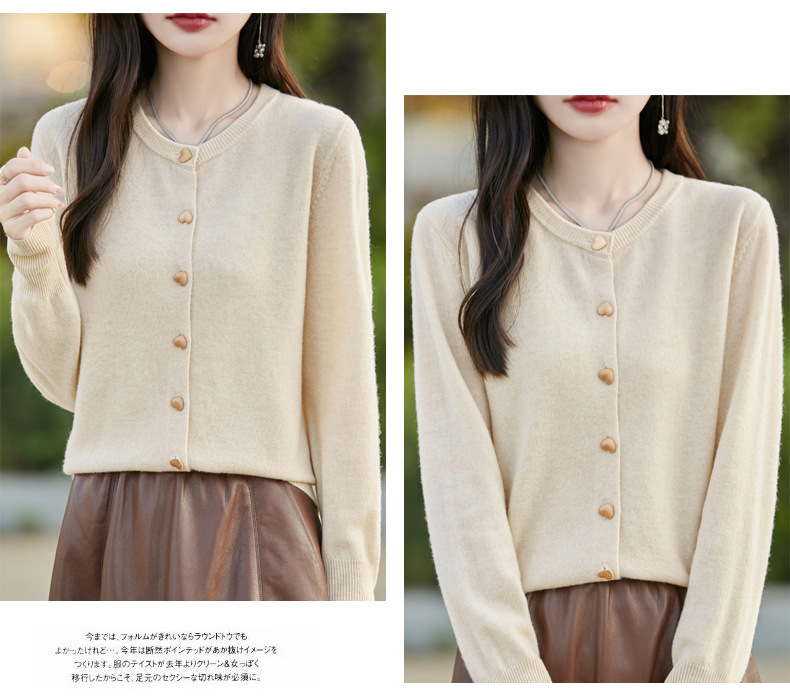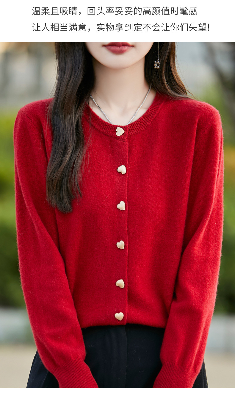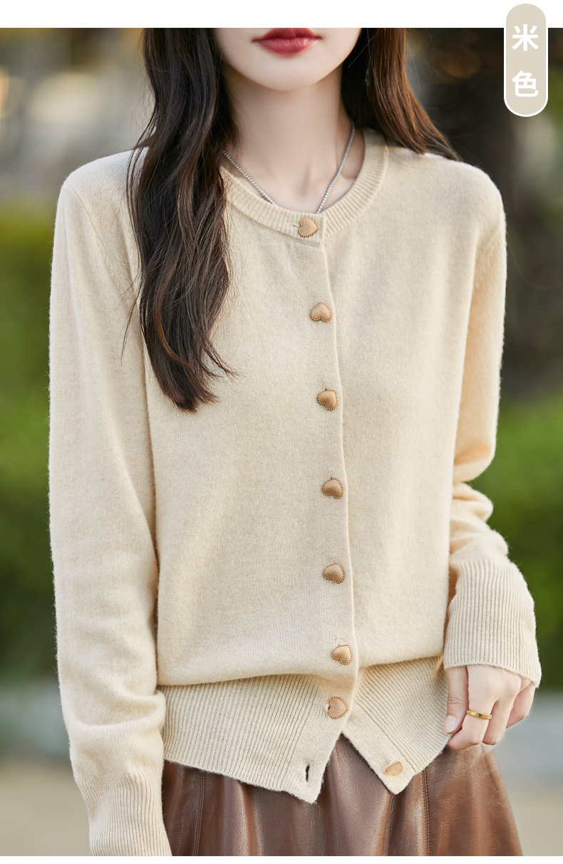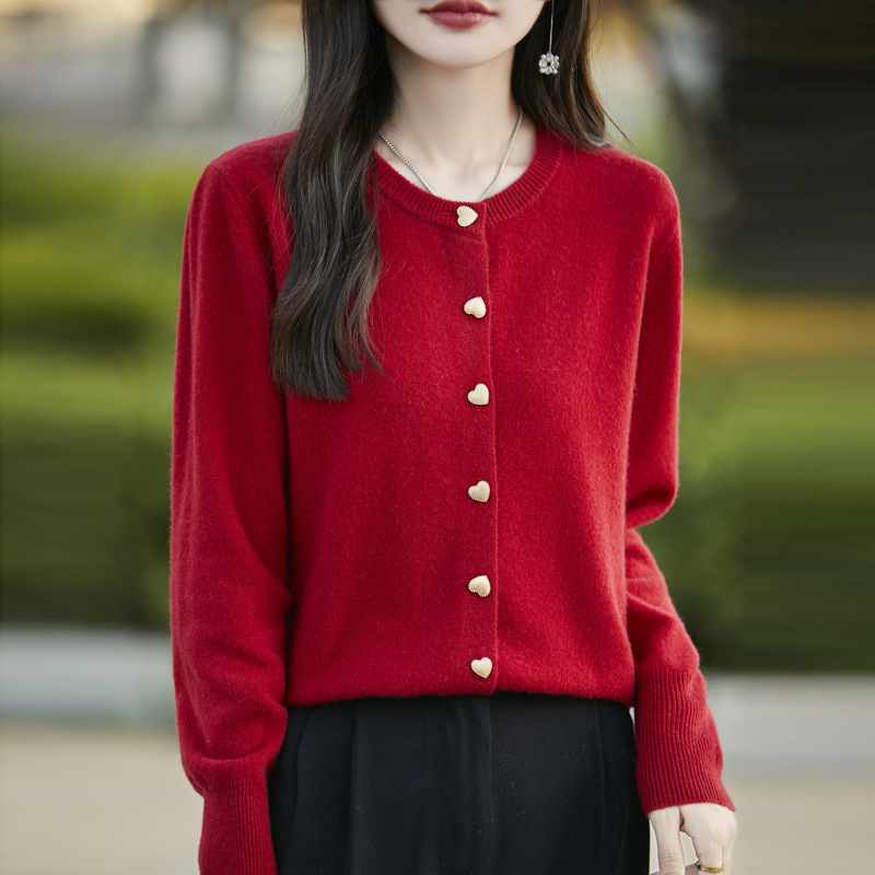 하트 모양의 둥근 목 카디건 긴 소매 니트 여성용 짧은 코트 느슨한 외부 스웨터 가을과 겨울 새로운 탑베이스 셔츠 배치스토어 가기