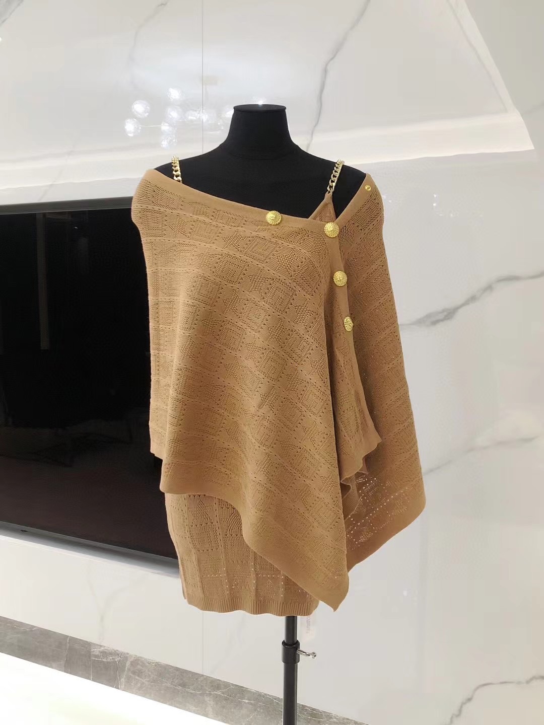 바먼 스타일 니트 투피스 세트 여성 2024 가을 및 겨울 새로운 틈새 디자인 불규칙한 목도리 슬링 조끼 원피스스토어 가기