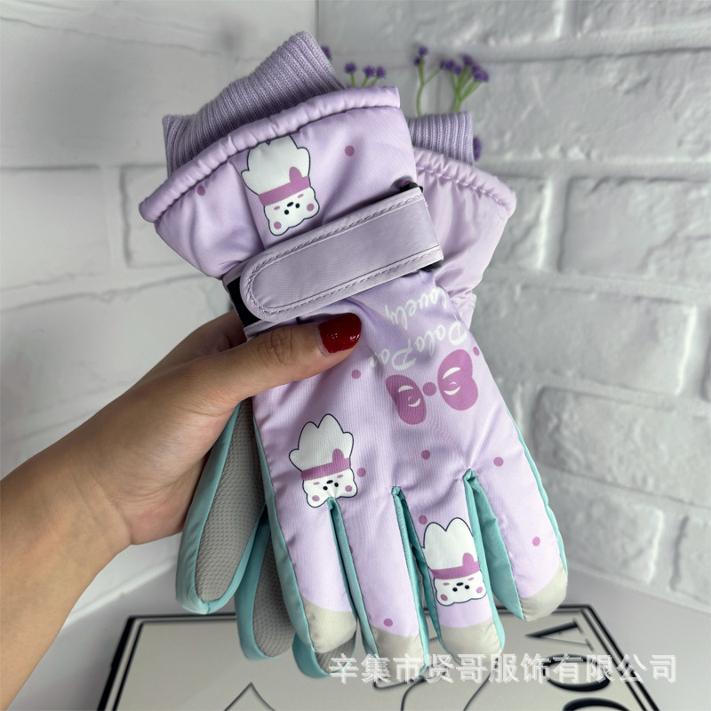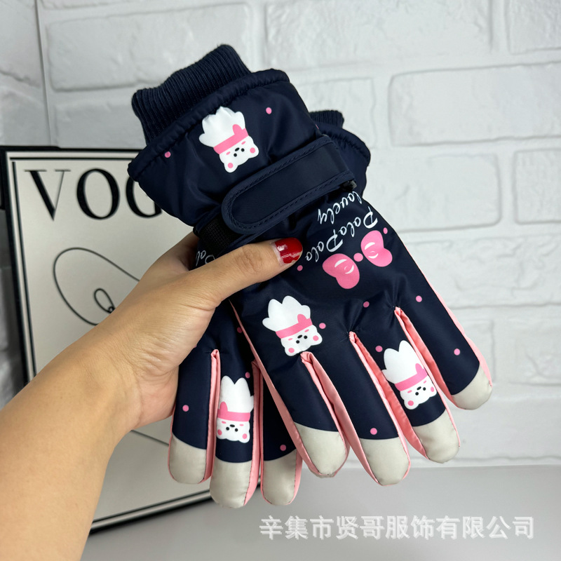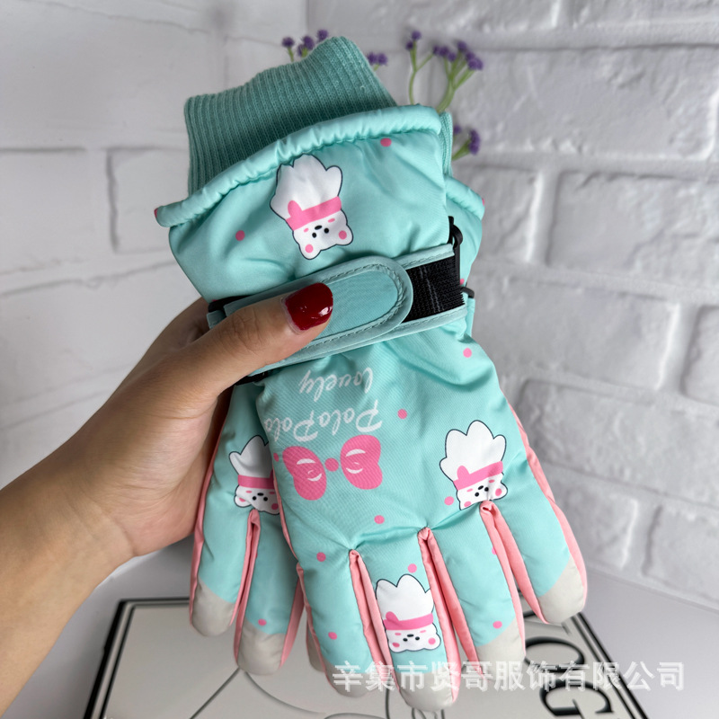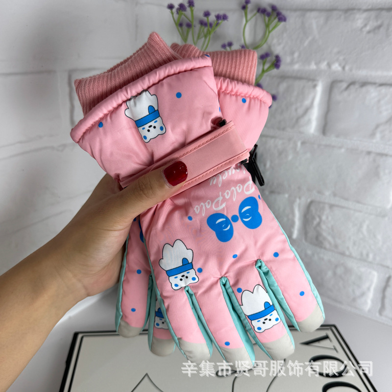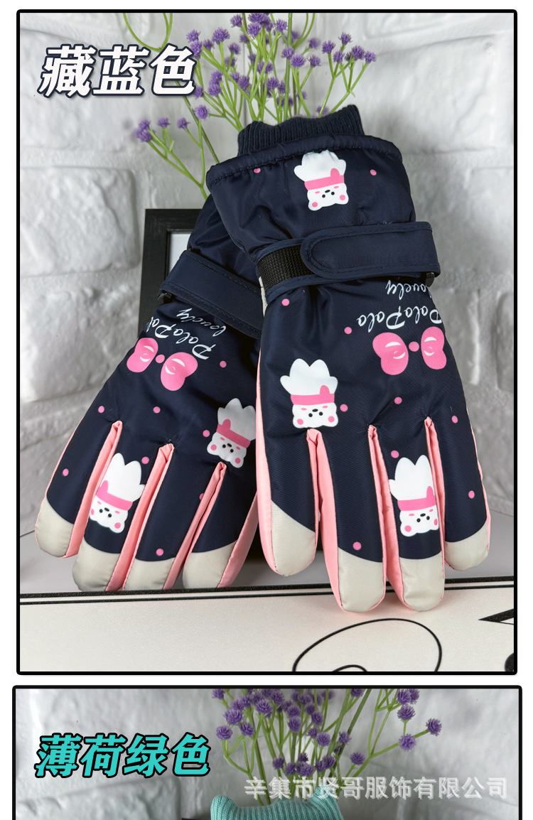 7-14 세 어린이 스키 장갑 남자와 여자의 겨울 귀여운 기모 두꺼운 따뜻한 방수 5 손가락 학생 큰 아이들을 타고스토어 가기