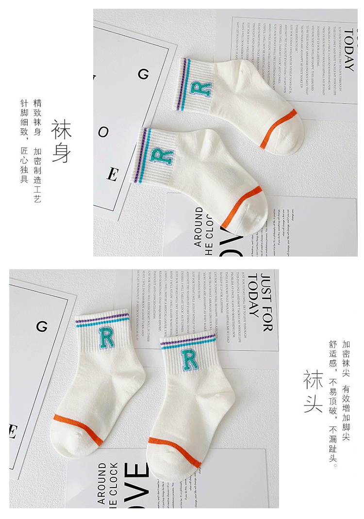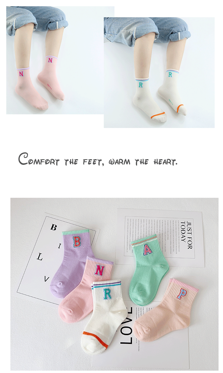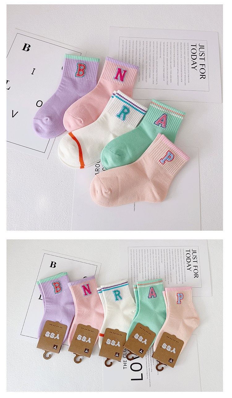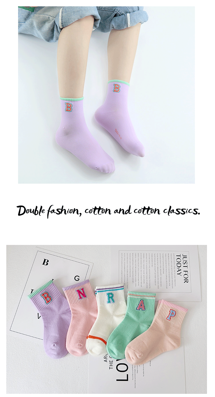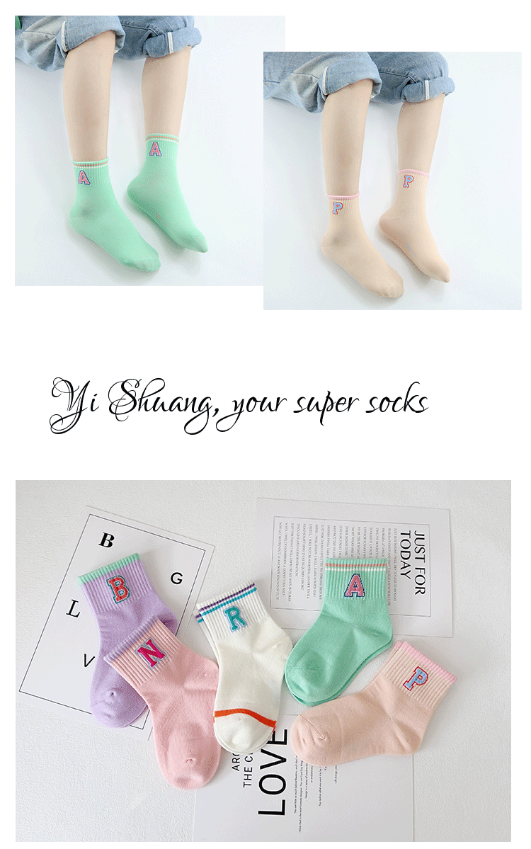이쌍 어린이 양말 가을과 겨울 새 한국식 편지 중간 튜브 양말 섞인 면화 소녀 스포츠 양말 학생 트렌디 양말